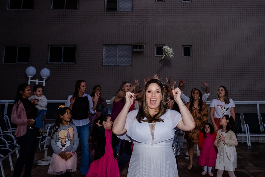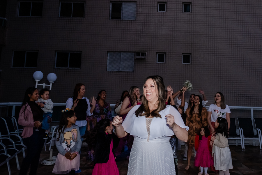 E não poderia faltar o momento do buquê, mesmo com a maioria das convidadas casadas, receber o buquê da noiva é sempre muito especial!