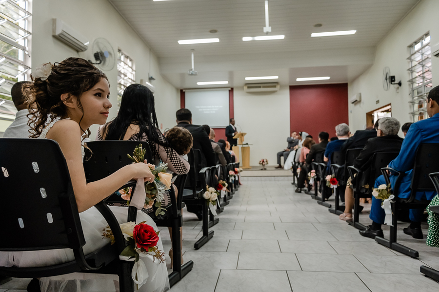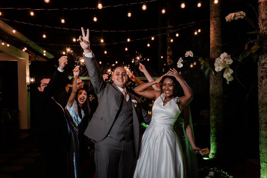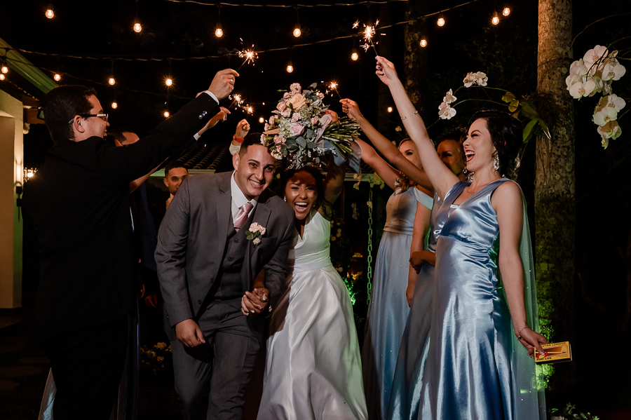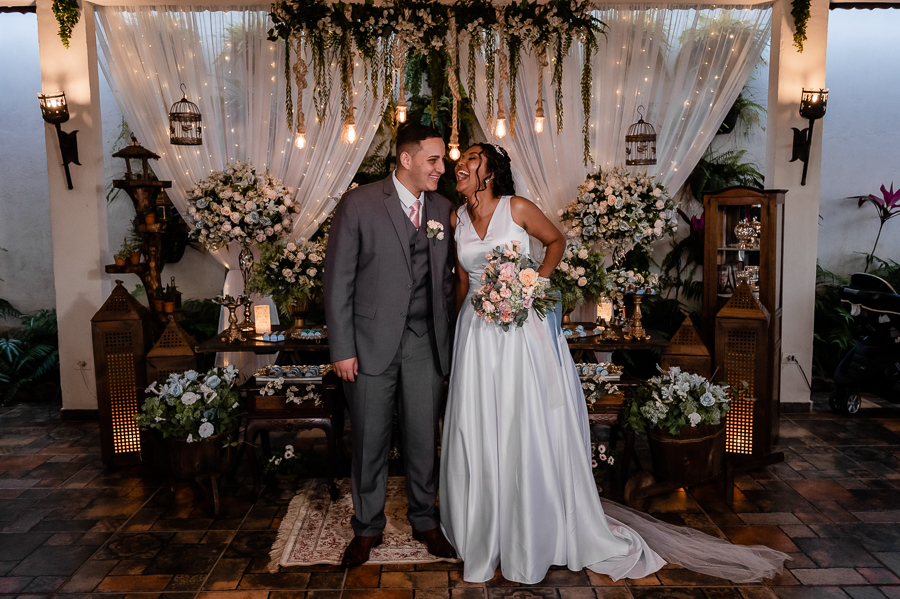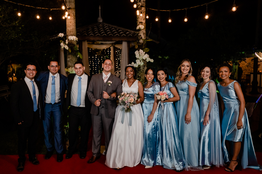 A festa aconteceu no Jardim das Orquídeas, na cidade de Praia Grande, local que amamos e somos sempre muito bem recebidos pela Evelyn, uma amiga muito querida! Os noivos fizeram sua entrada e foram recebidos por todos que os aguardavam ansiosos! Realizamos as fotografias com suas famílias e com os padrinhos e madrinhas. Depois um ensaio pós - cerimônia para marcar essa nova etapa de vida juntos.