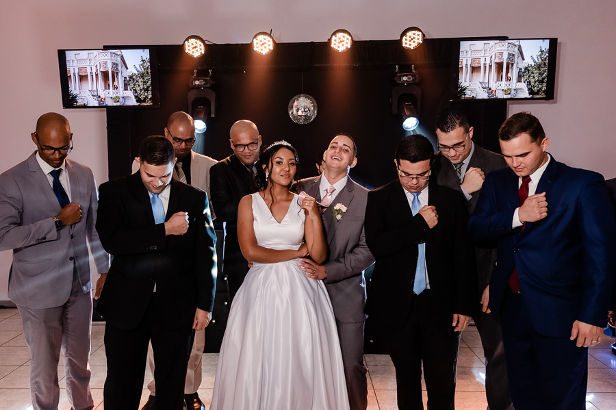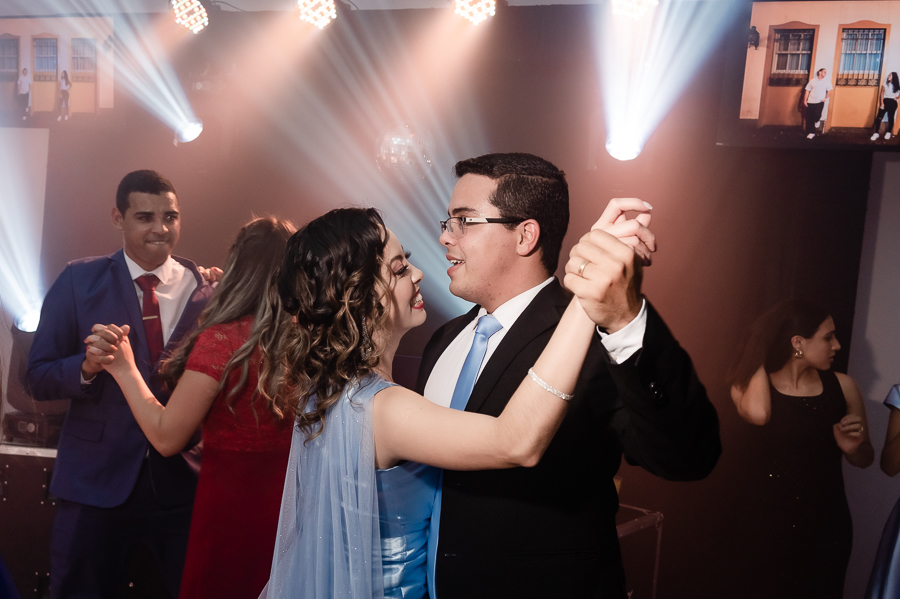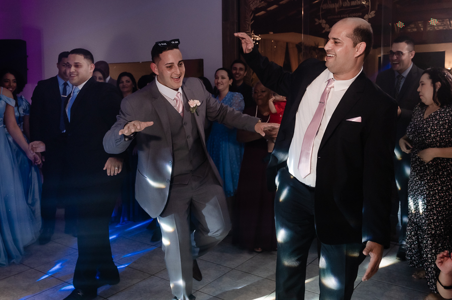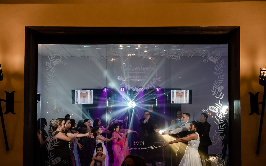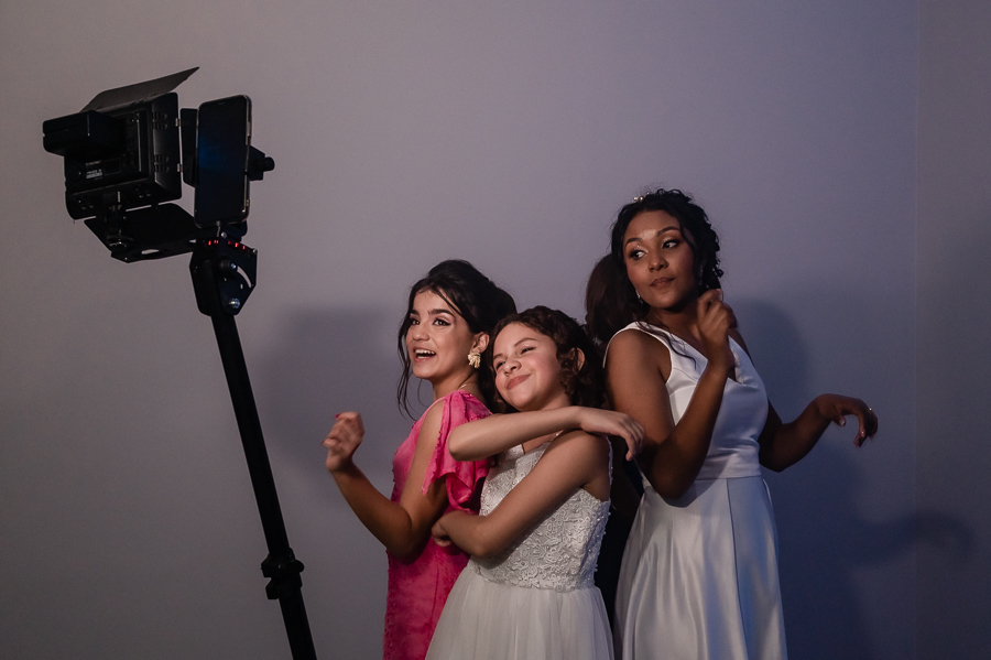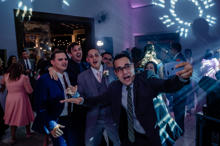 Teve uma linda retrospectiva e a dança dos noivos e depois...FESTA!! E que festa! Ninguém ficou parado!! Foi um show de dança! Convidados, pais, os noivos as crianças arrasaram na escolha da playlist e nas coreografias! Além disso todos puderam registrar seus momentos com fotos no Totem e e com a plataforma 360° que foi um sucesso!