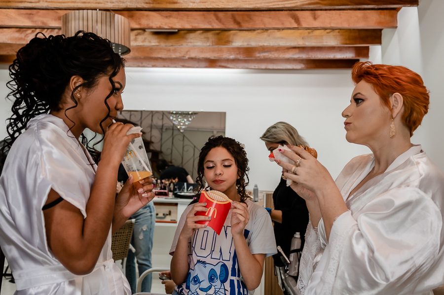 O making of da Gabs teve surpresa e muita emoção. Acompanhada da madrinha Tássani, de sua irmã mais nova Bia e de sua sogra Sabrina, elas receberam lanche do McDonald's surpresa e se emocionaram muito durante os preparativos. Lembrando toda história de vida do casal até esse dia tão esperado. A alegria e o amor estavam no ar! Depois teve a chegada da mãe da Gabs (dona Érica) e de sua avó e foi um momento bem lindo.