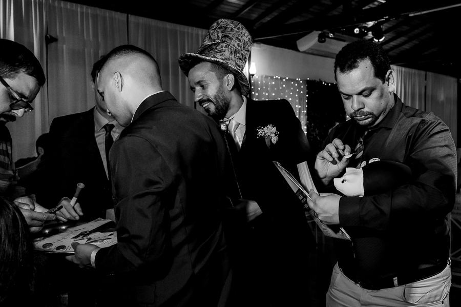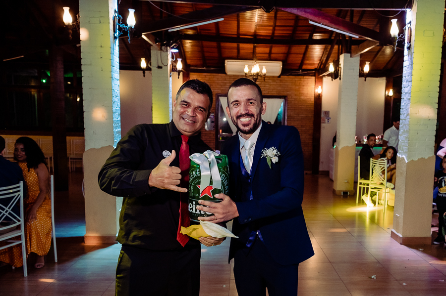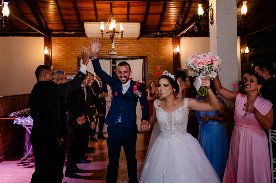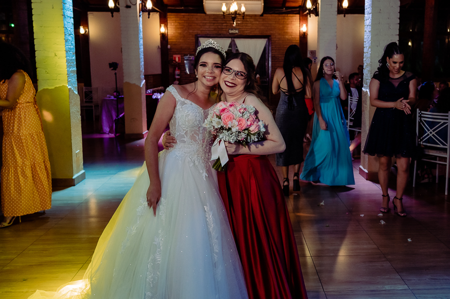 Depois seguimos para a festa, realizada no Buffet Maravale em Praia Grande - SP, onde toda a família e amigos estavam aguardando para a grande entrada do casal! Seguiram para as fotos com os pais e os padrinhos, receberam também o carinho dos amigos.