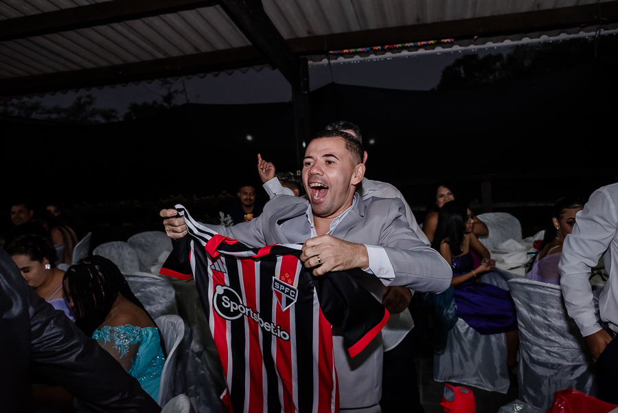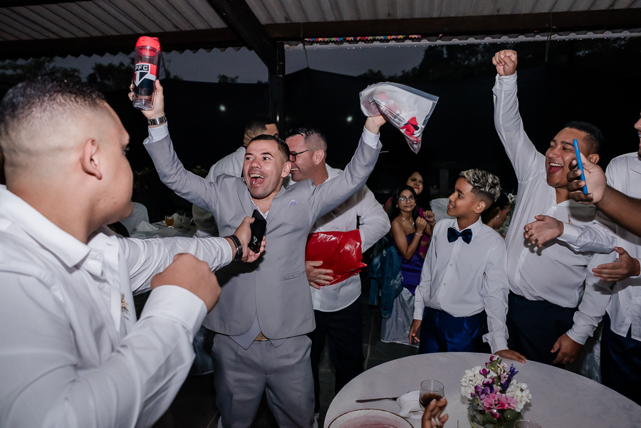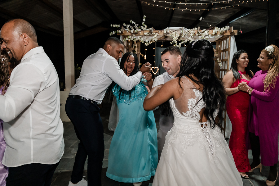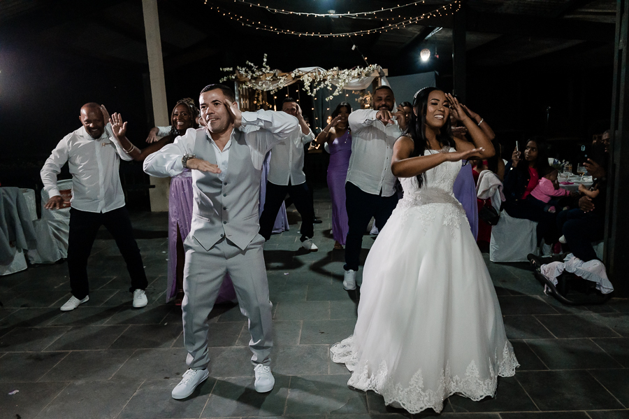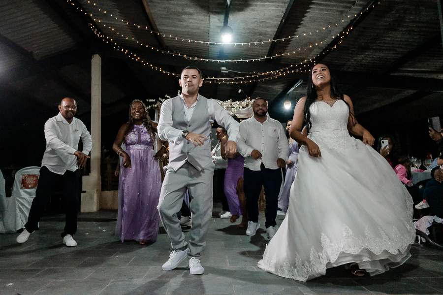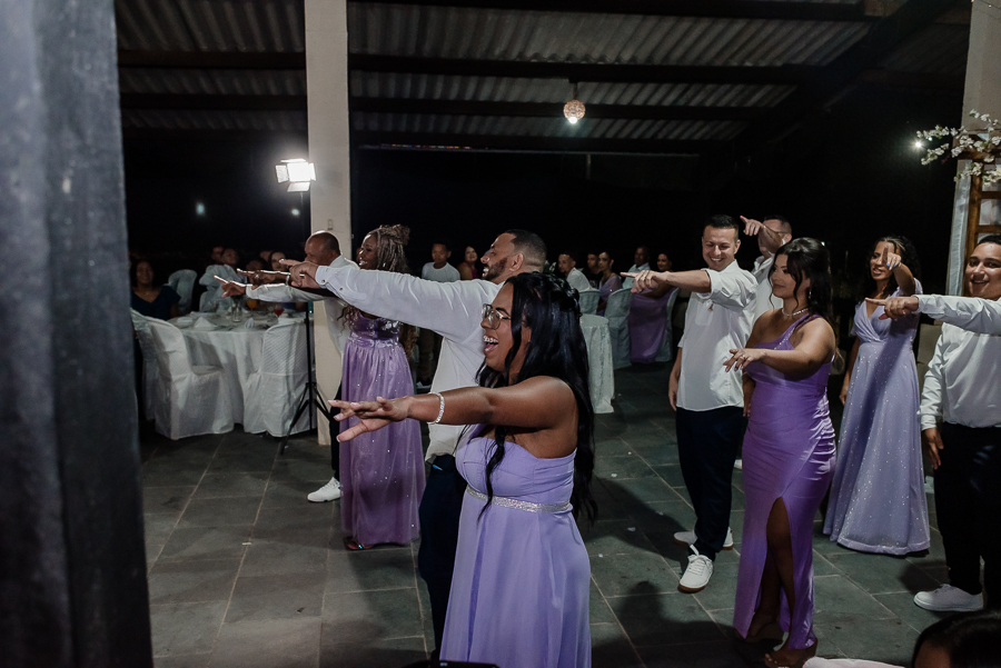 Ainda teve dança dos noivos e dos padrinhos, uma festa animada com muita animação e amor!