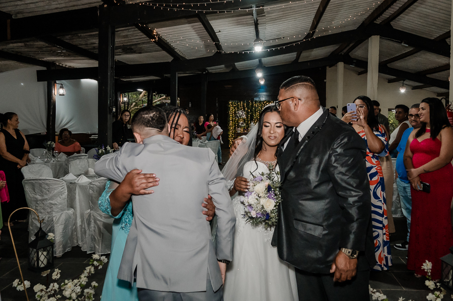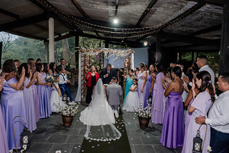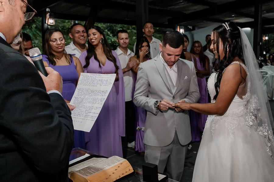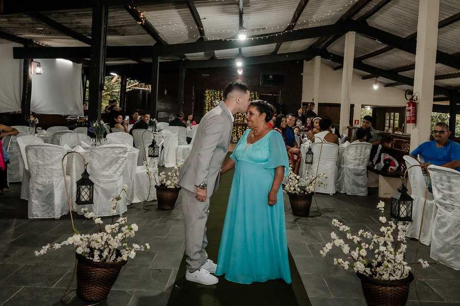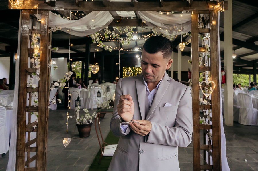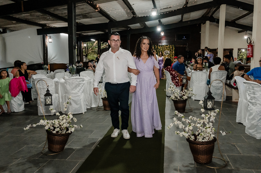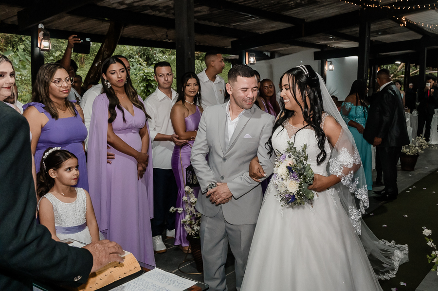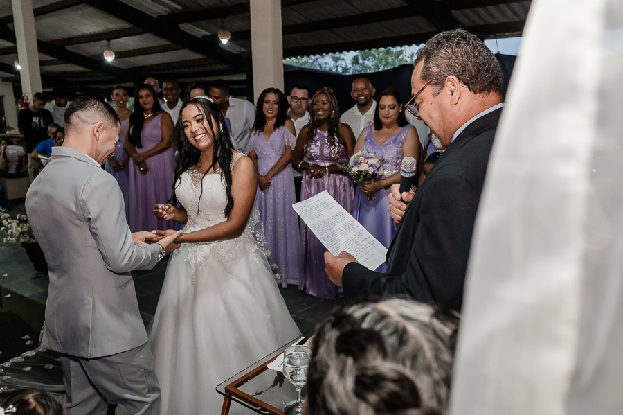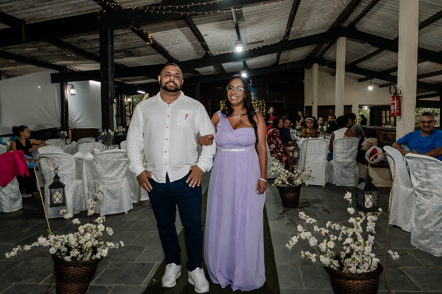 Depois seguimos para a cerimônia, realizada na Assebam, também em Mongaguá - SP. Estava tudo lindo, de acordo com o que os noivos planejaram.