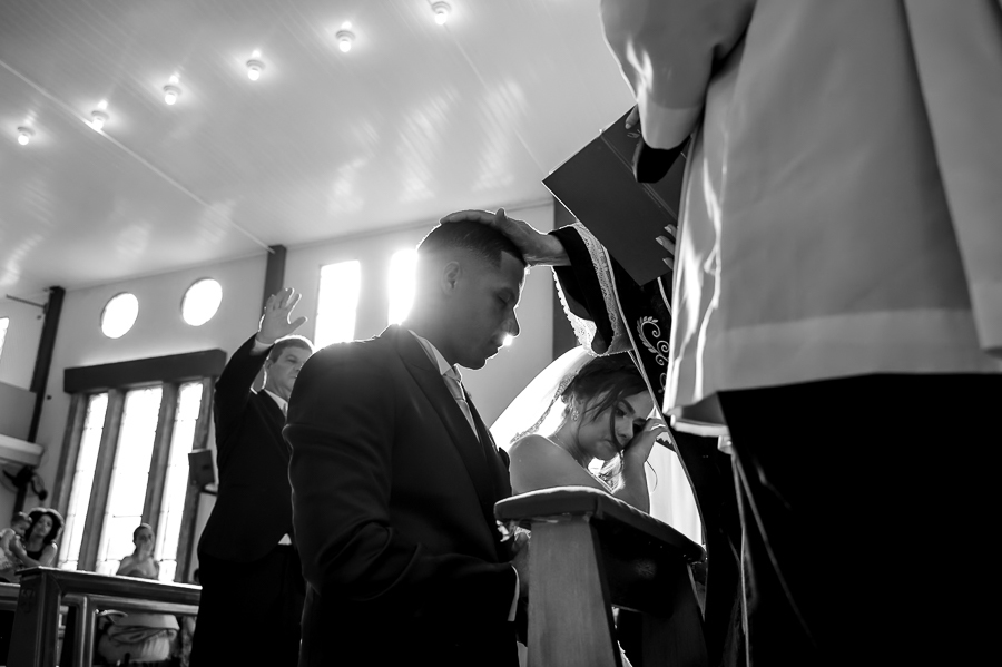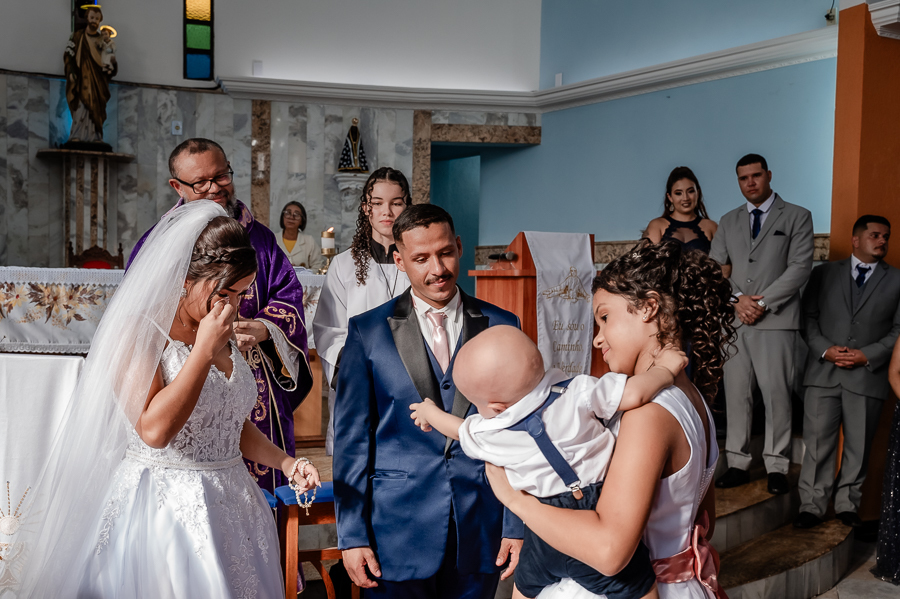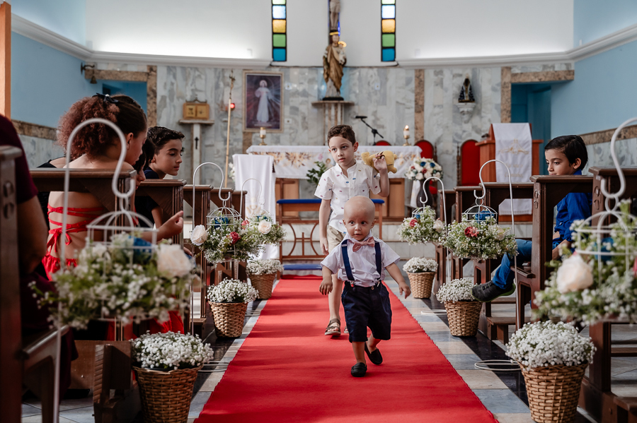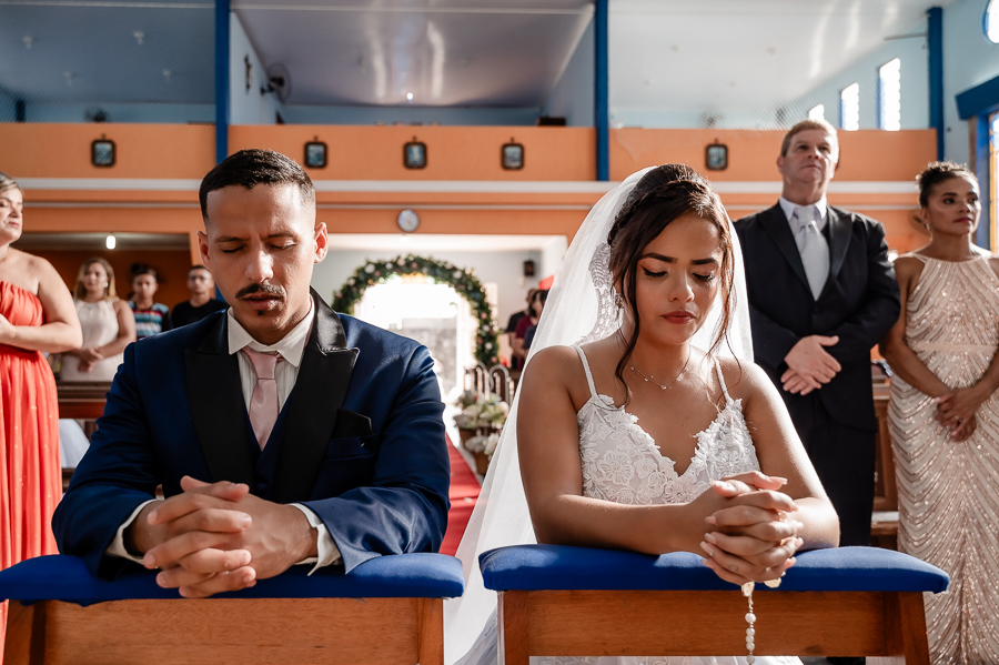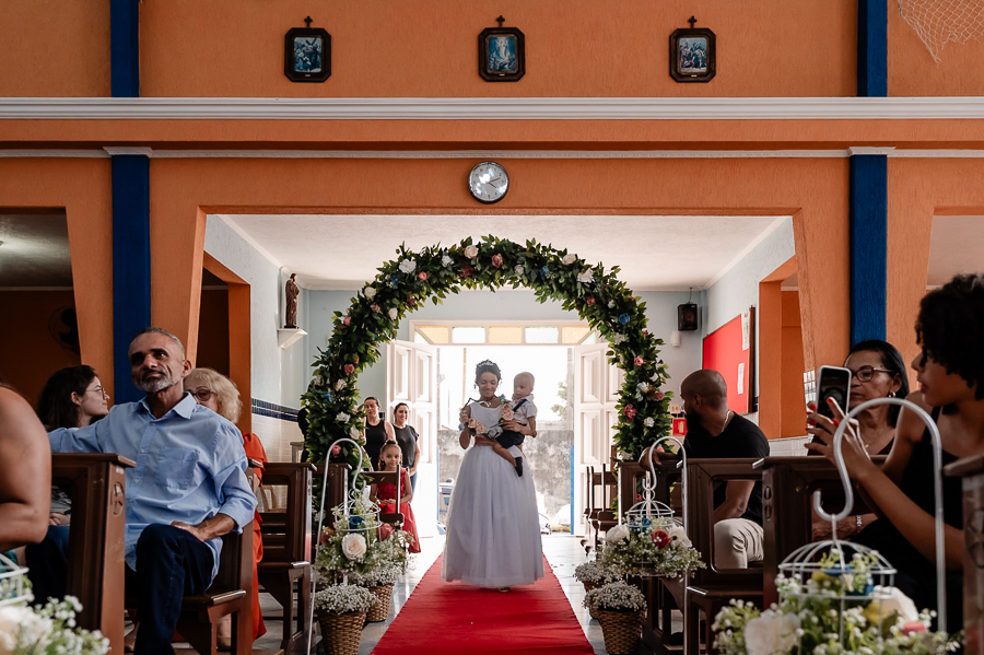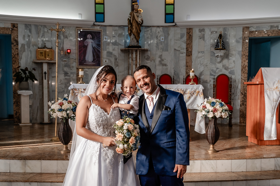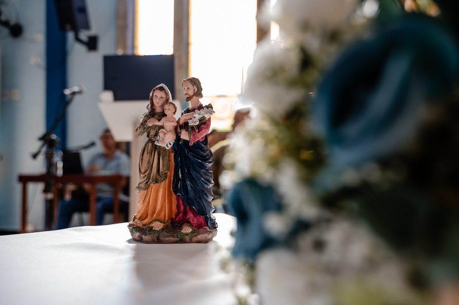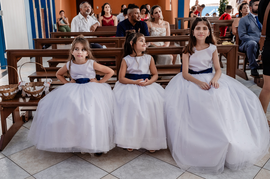 A cerimônia foi realizado na capela São José, na cidade de Mongaguá/SP, em um dia de muito sol e céu azul para abençoar uma tarde única.