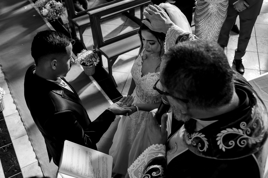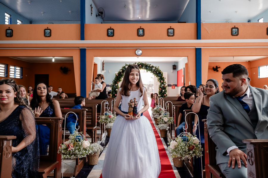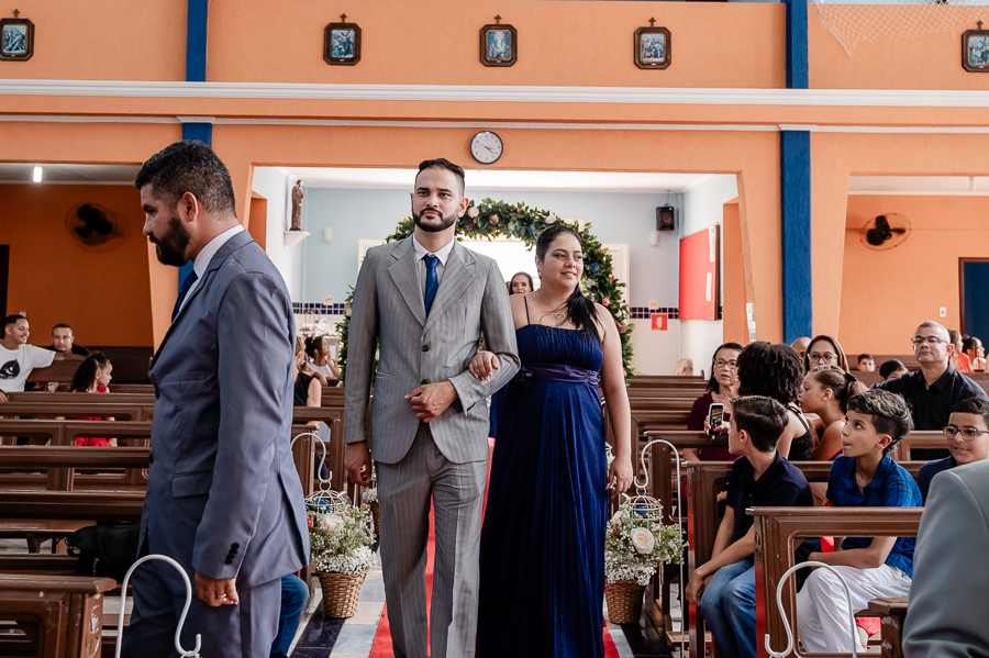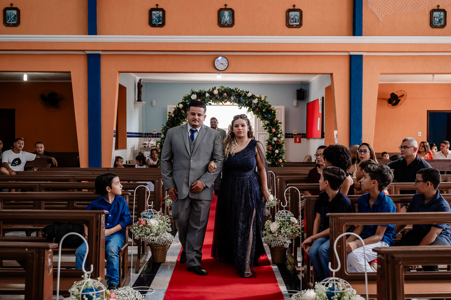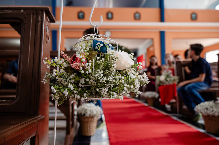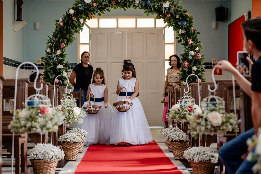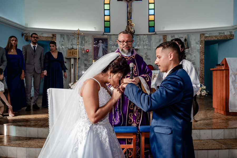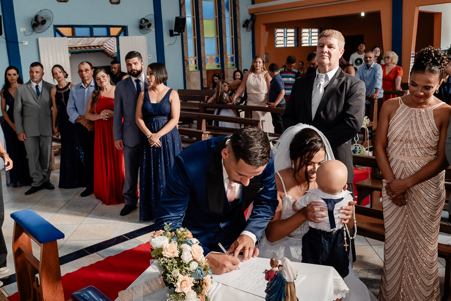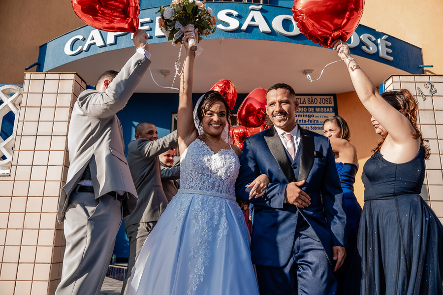 A cerimônia foi realizado na capela São José, na cidade de Mongaguá/SP, em um dia de muito sol e céu azul para abençoar uma tarde única.