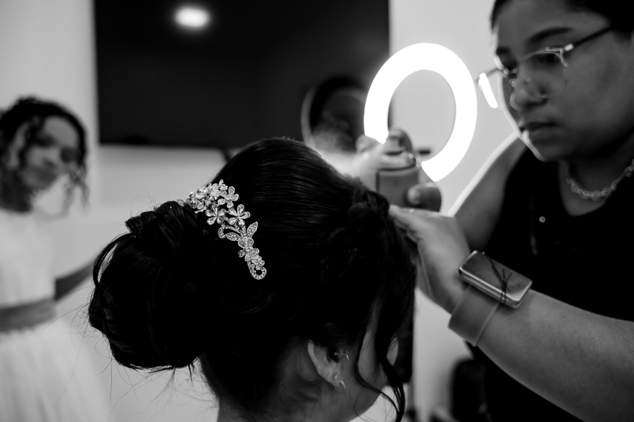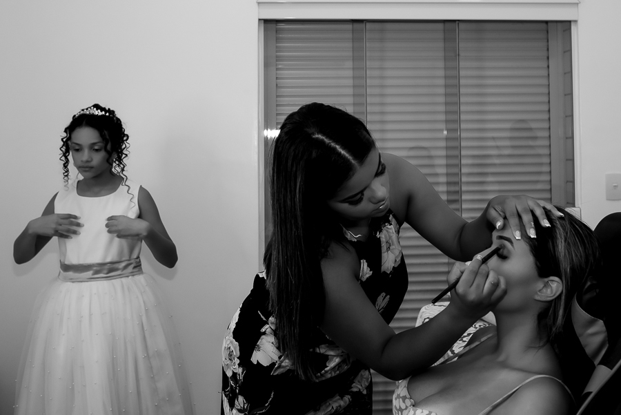 Iniciamos o dia com o making of da Maria Gabriela, junto com suas irmãs, sua mãe, suas sobrinhas e seus filhos.