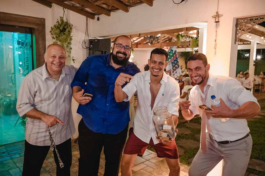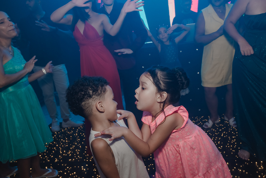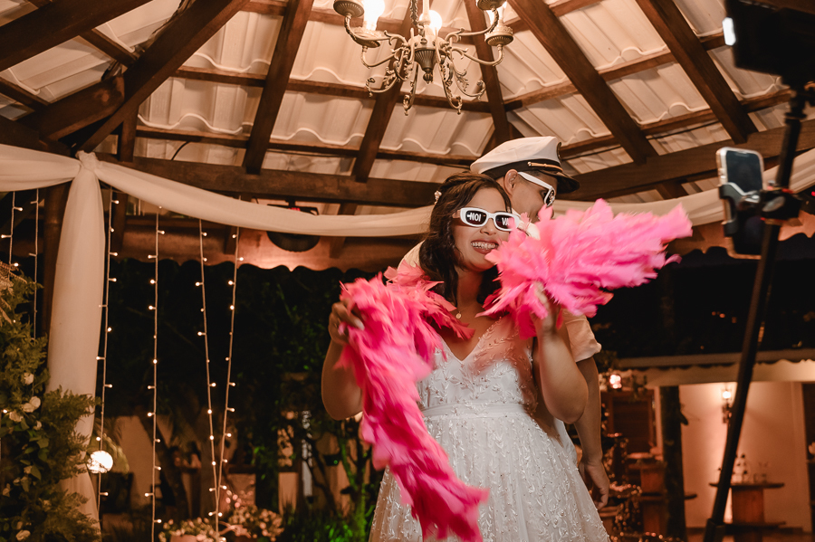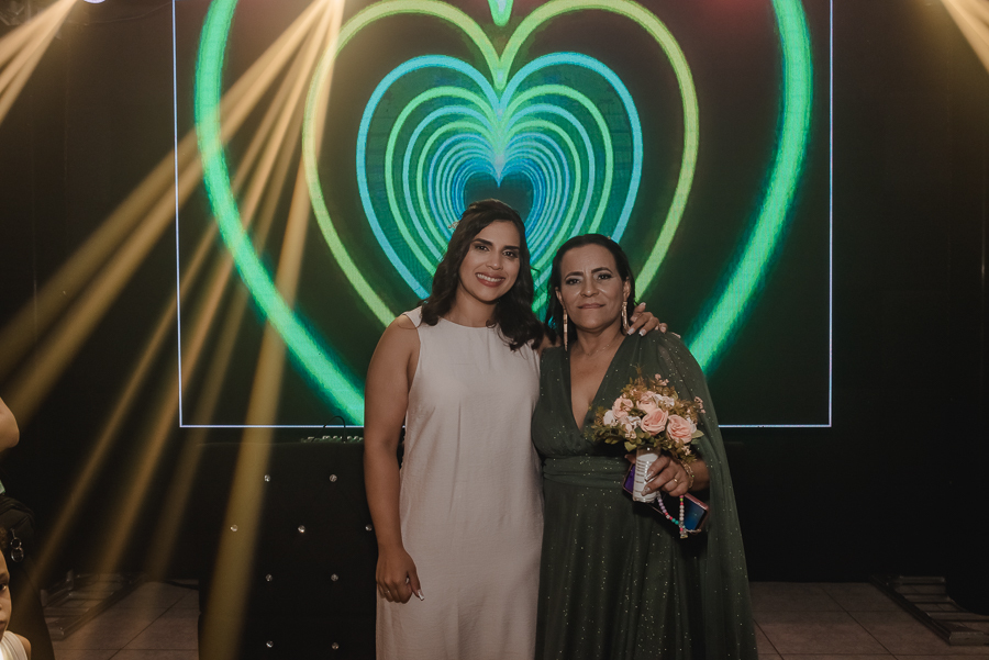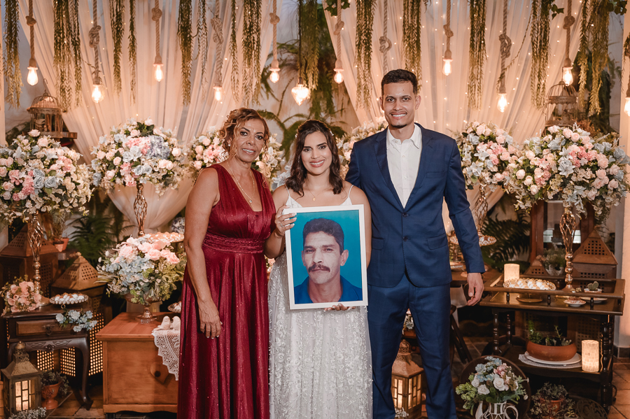 Tiveram uma festa muito animada, dançaram, curtiram cada segundo, receberam a todos com muito carinho. Ainda assistiram com seus convidados uma linda retrospectiva que trouxe a todos presentes momentos de grandes emoções com as imagens do pai da Mayara, falecido há um ano e quatro meses, mas que esteve presente em espírito, certamente feliz em ver sua filha se casando com seu grande amor.