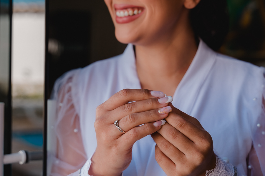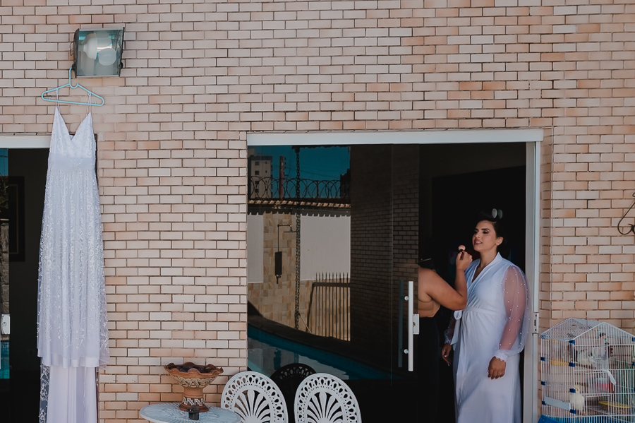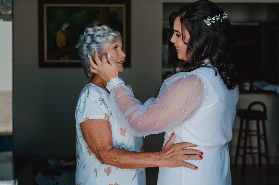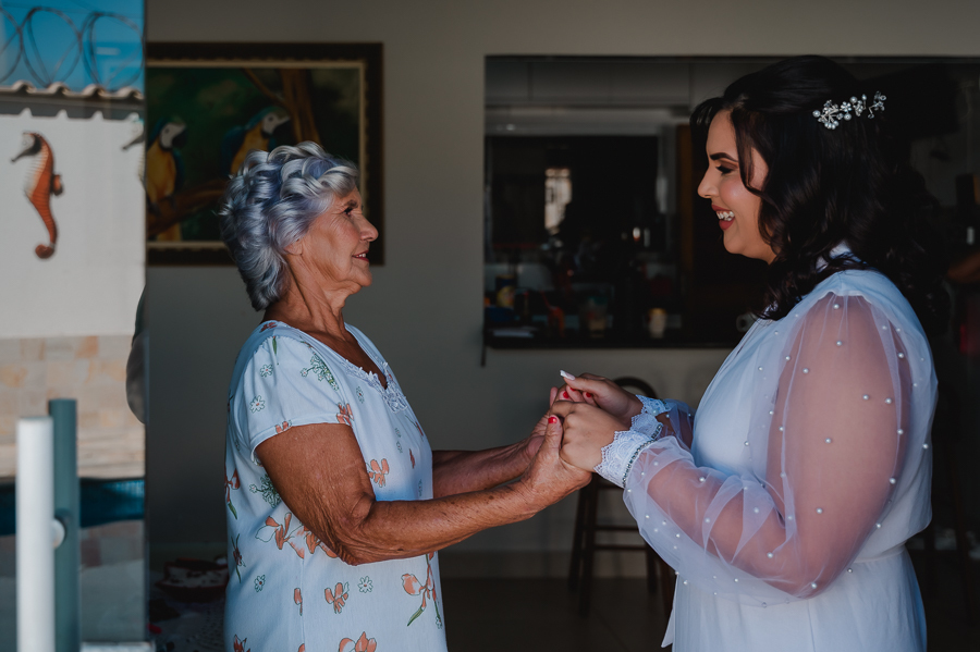Começamos com o making of da noiva na casa de sua família, junto com sua mãe, sua avó e sua tia. A Mayara estava muito tranquila e muito feliz. Se preparar em casa, no ambiente que nos é familiar e com tantas histórias vividas, torna esse momento ainda mais importante. As últimas horas antes do início de uma nova vida...
