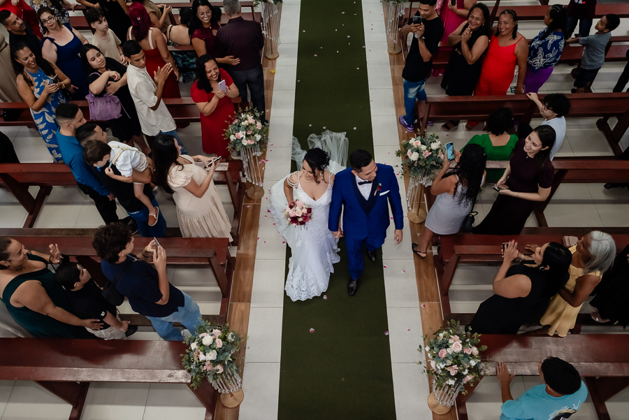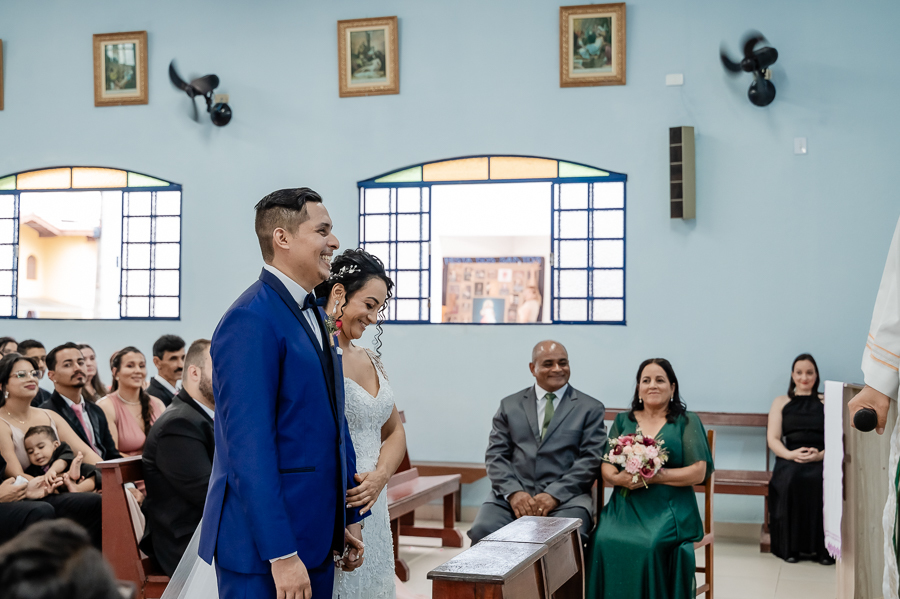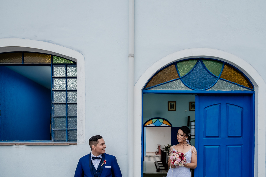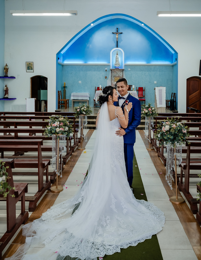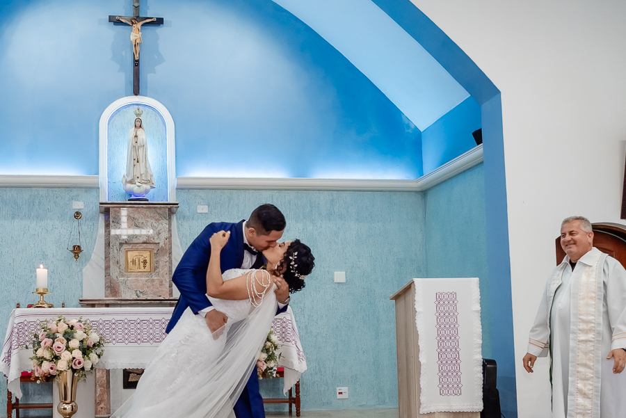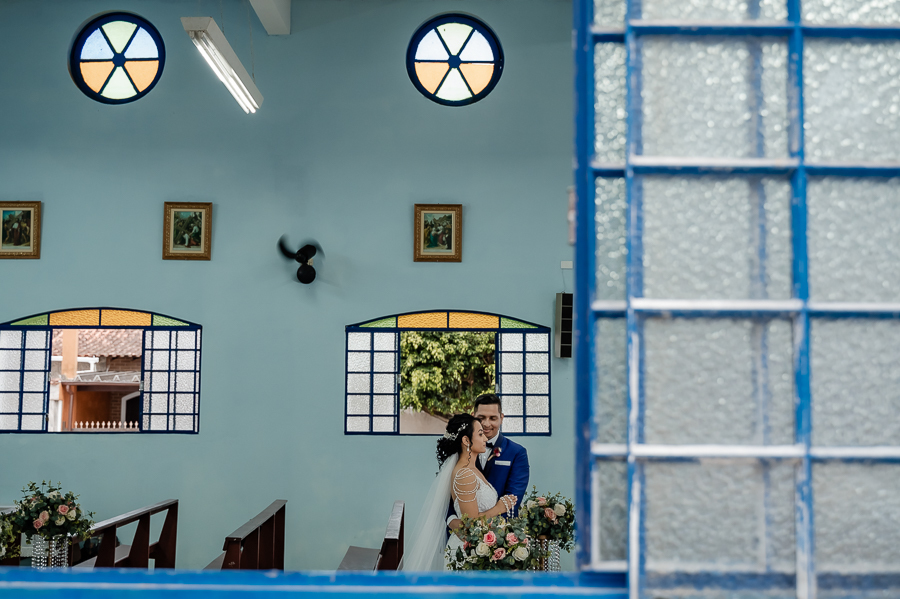 Ao final da cerimônia, enquanto os convidados se dirigiam para o local da festa, realizamos um ensaio do casal, ainda na igreja.