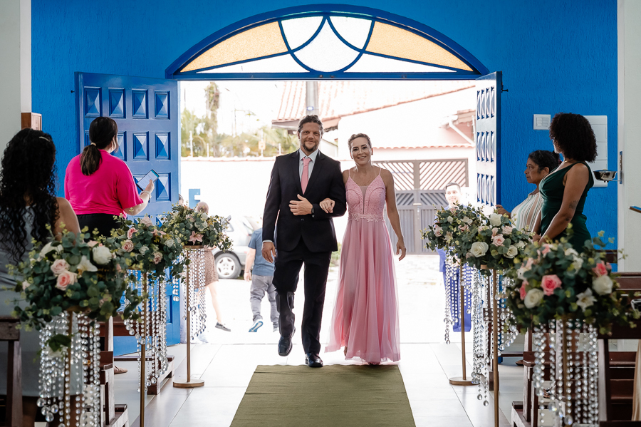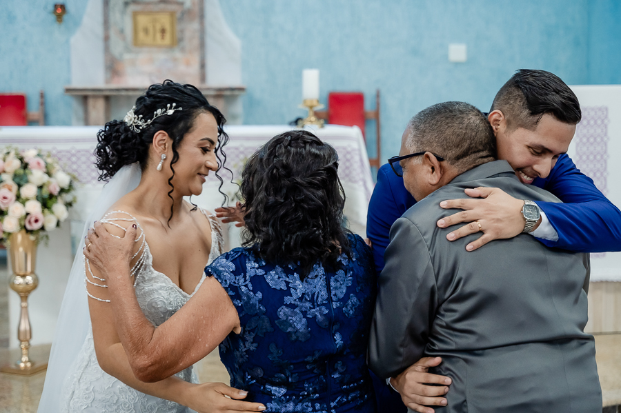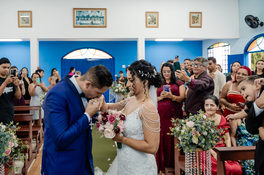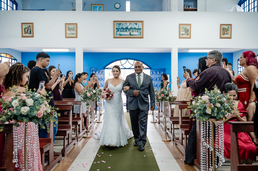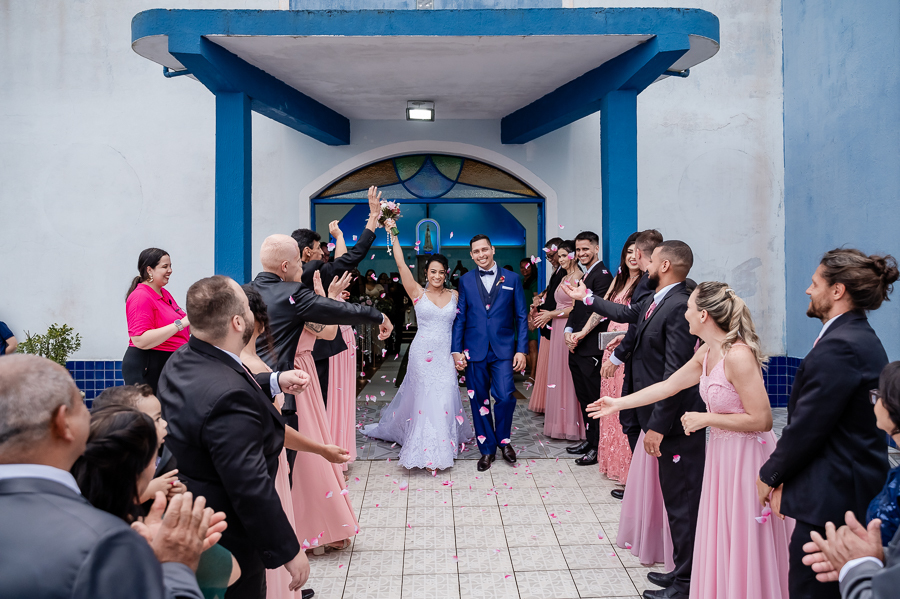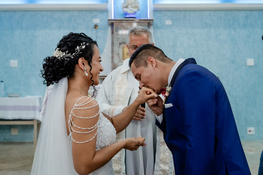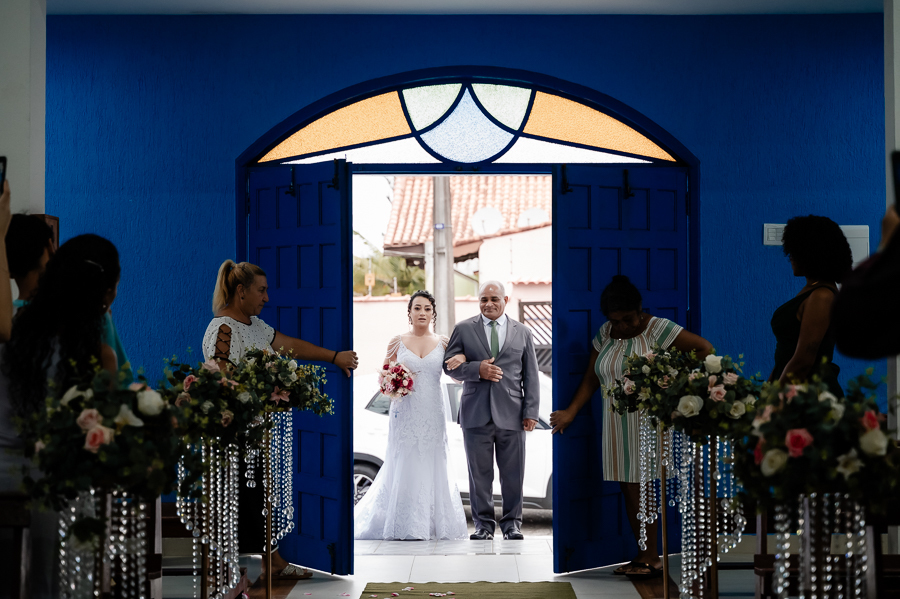 Ao final da cerimônia, enquanto os convidados se dirigiam para o local da festa, realizamos um ensaio do casal, ainda na igreja.