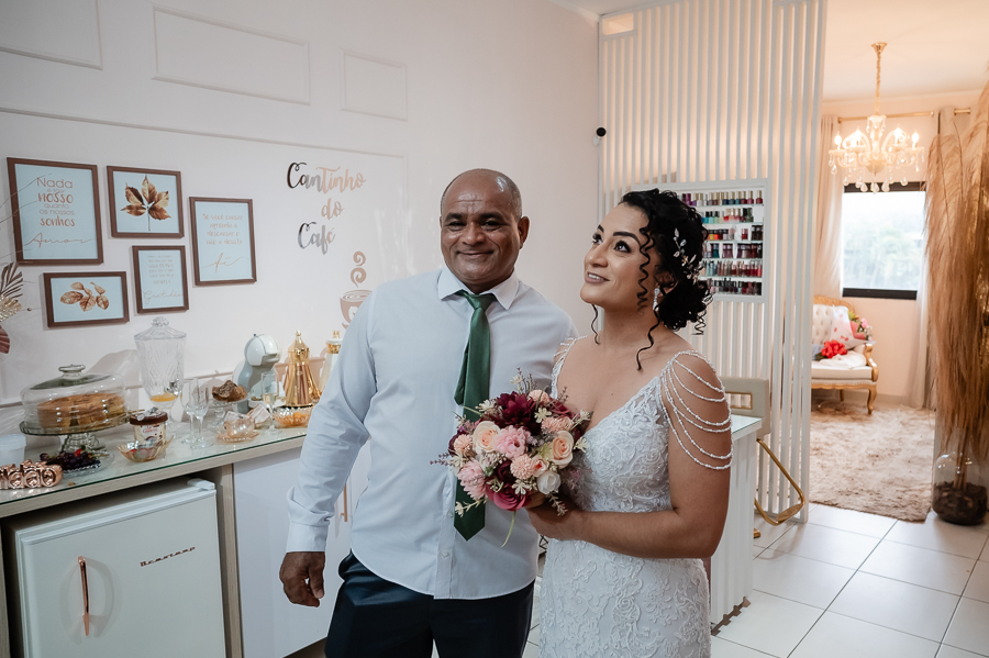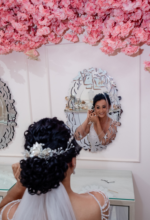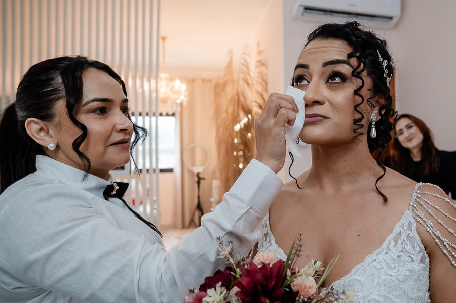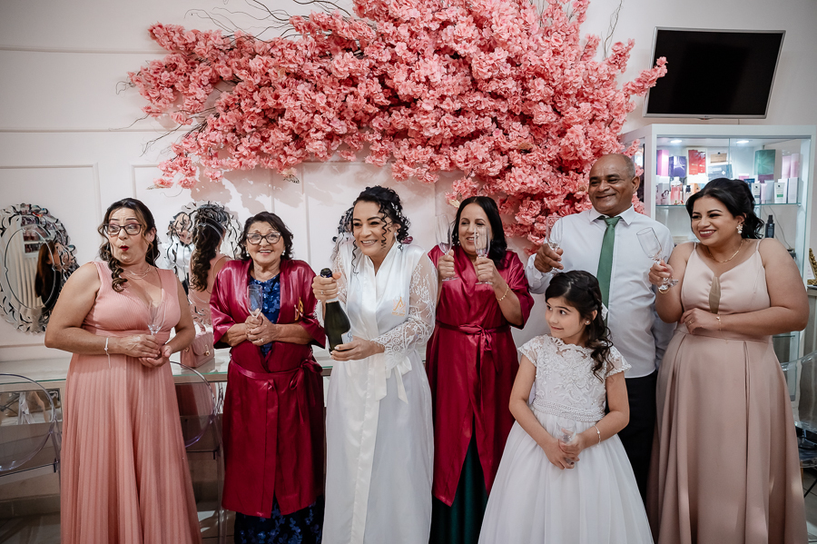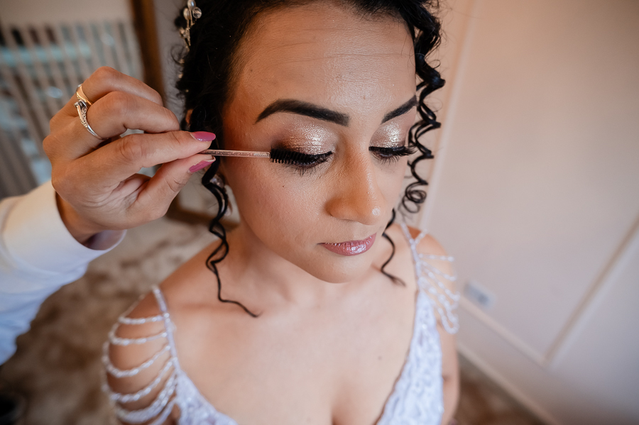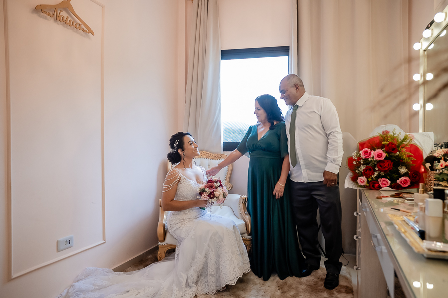 Iniciamos o dia no making of da Larissa no estúdio Angel Makeupp, em Mongaguá - SP. A Larissa estava acompanhada de sua mãe, sua sogra, uma madrinha e a sobrinha do casal, que estava linda de daminha. Teve muita emoção de todas ao verem a Larissa linda com seu vestido de noiva. E depois, seu pai entrou no estúdio e foi mais um momento de muita emoção.