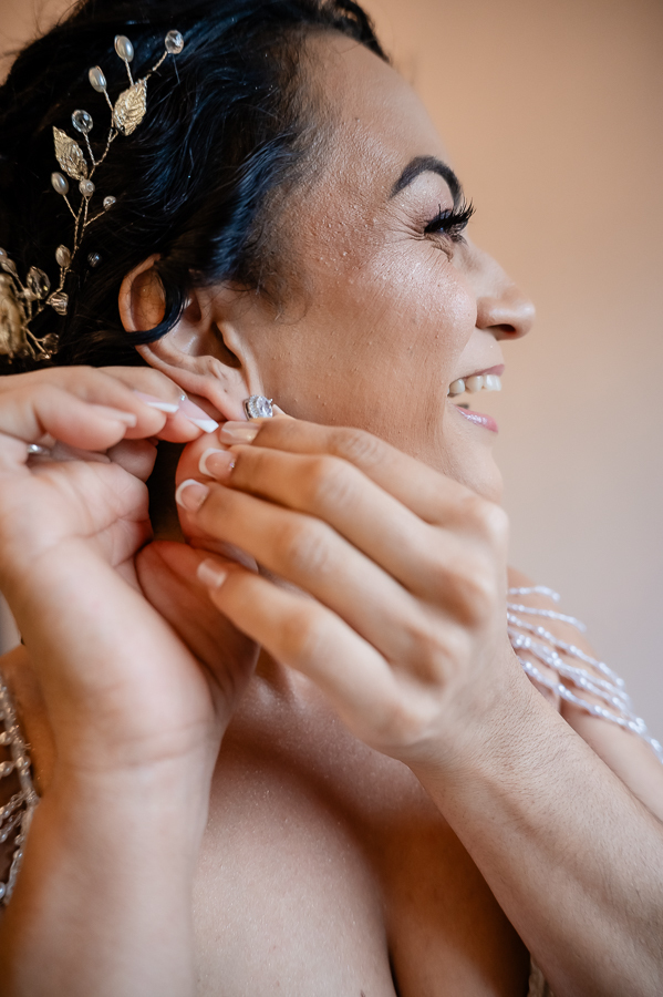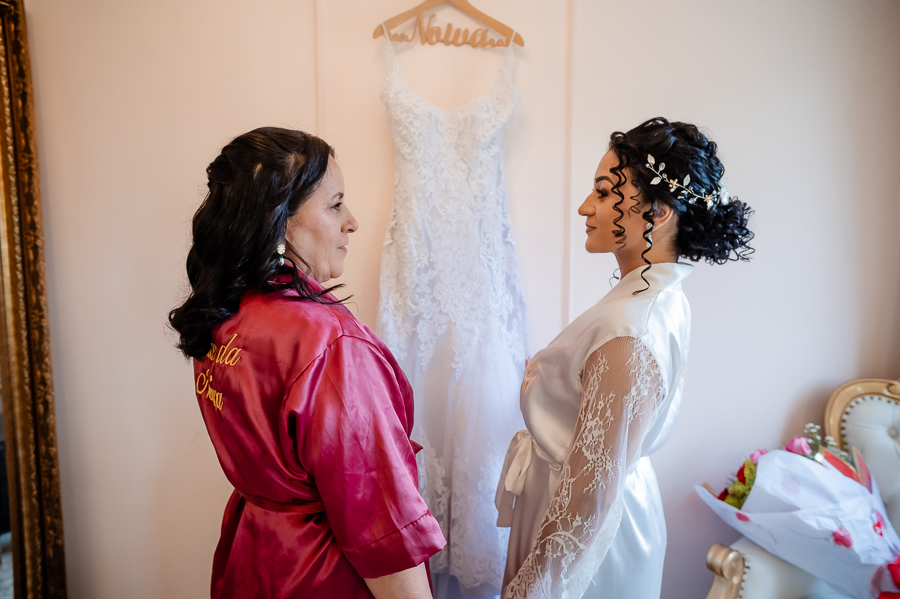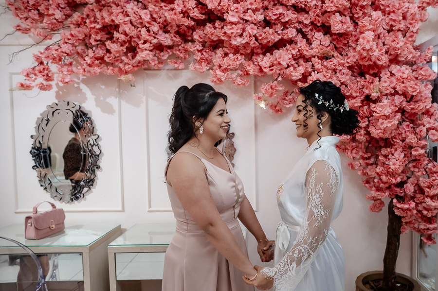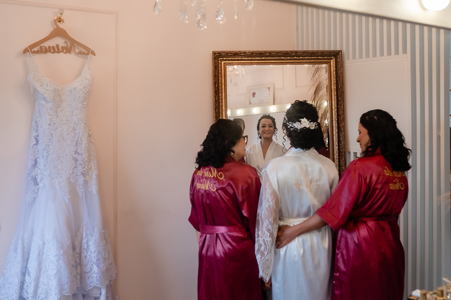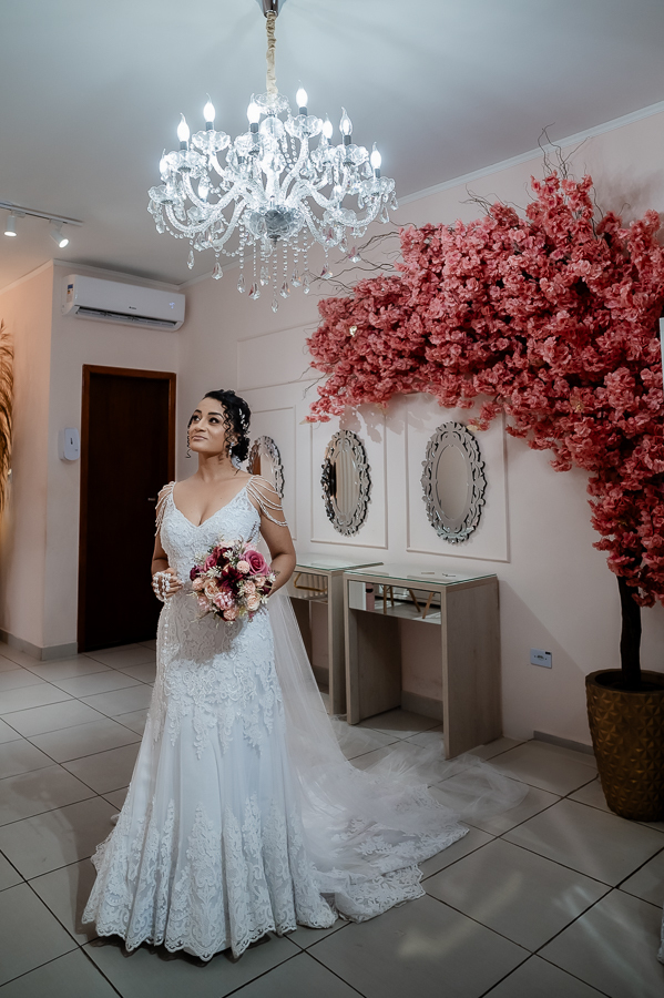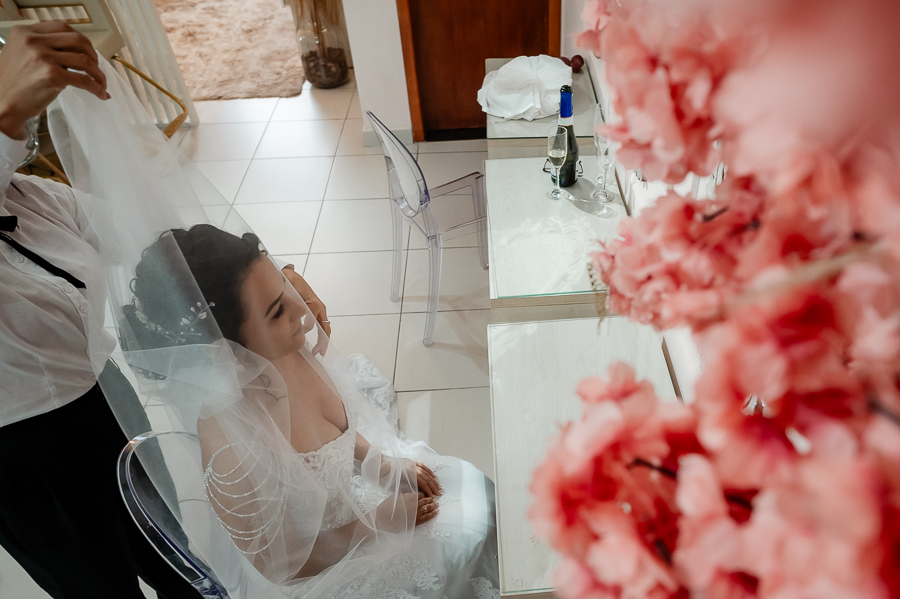 Iniciamos o dia no making of da Larissa no estúdio Angel Makeupp, em Mongaguá - SP. A Larissa estava acompanhada de sua mãe, sua sogra, uma madrinha e a sobrinha do casal, que estava linda de daminha. Teve muita emoção de todas ao verem a Larissa linda com seu vestido de noiva. E depois, seu pai entrou no estúdio e foi mais um momento de muita emoção.