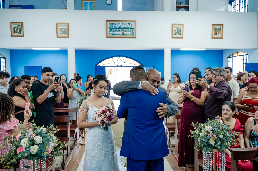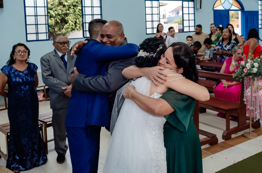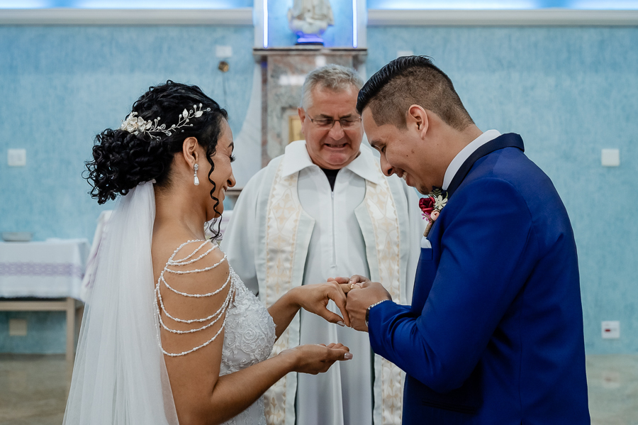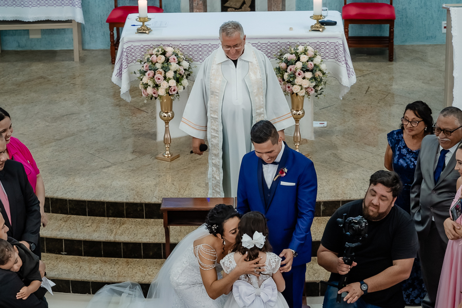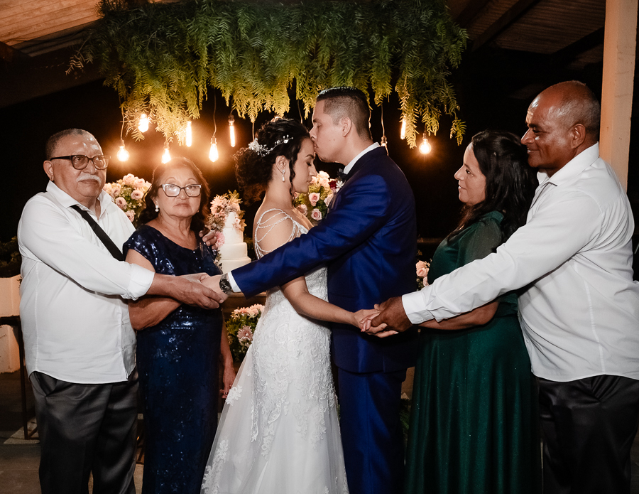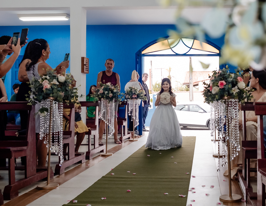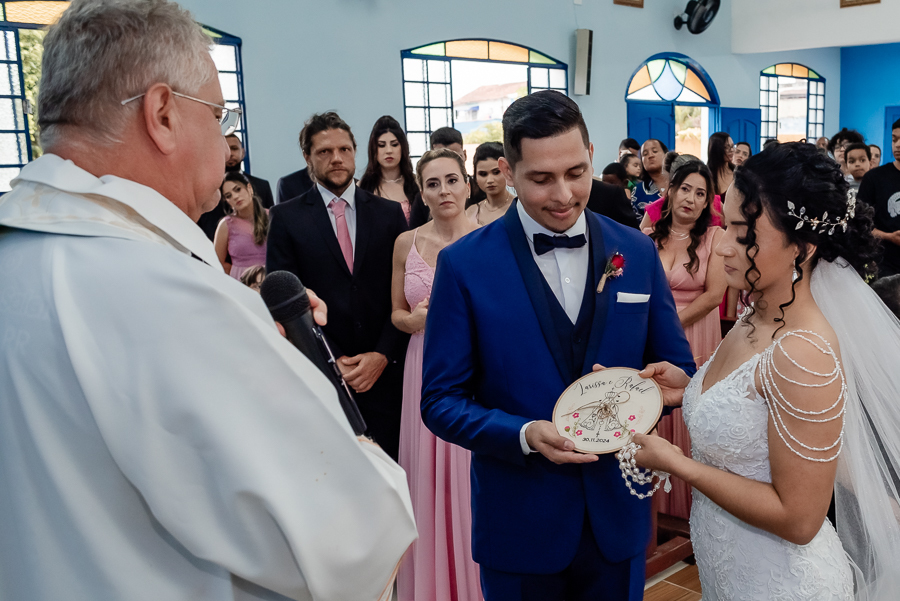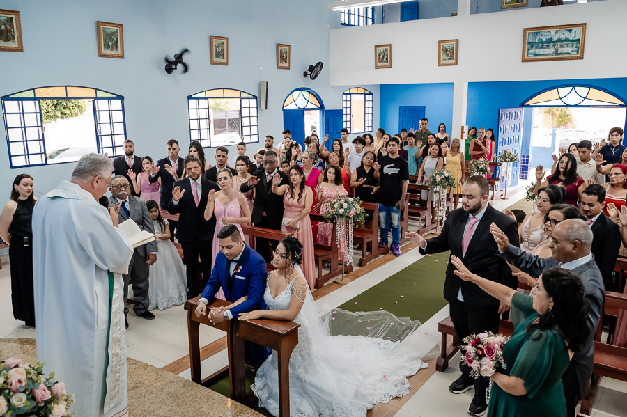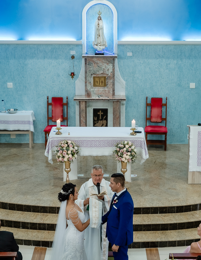 Foi uma linda cerimônia. A Larissa e o Rafael receberam o sacramento do matrimônio e vivenciaram momentos de muita emoção. Suas famílias e amigos abençoaram junto ao padre a união dos dois.