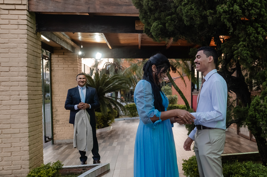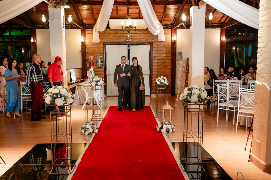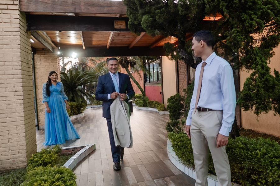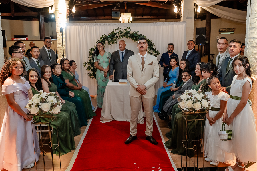 Seguimos então para a cerimônia, que foi realizada no Buffet Maravale, em Praia Grande - SP. Lá, o João e os convidados aguardavam ansiosos a chegada da noiva.