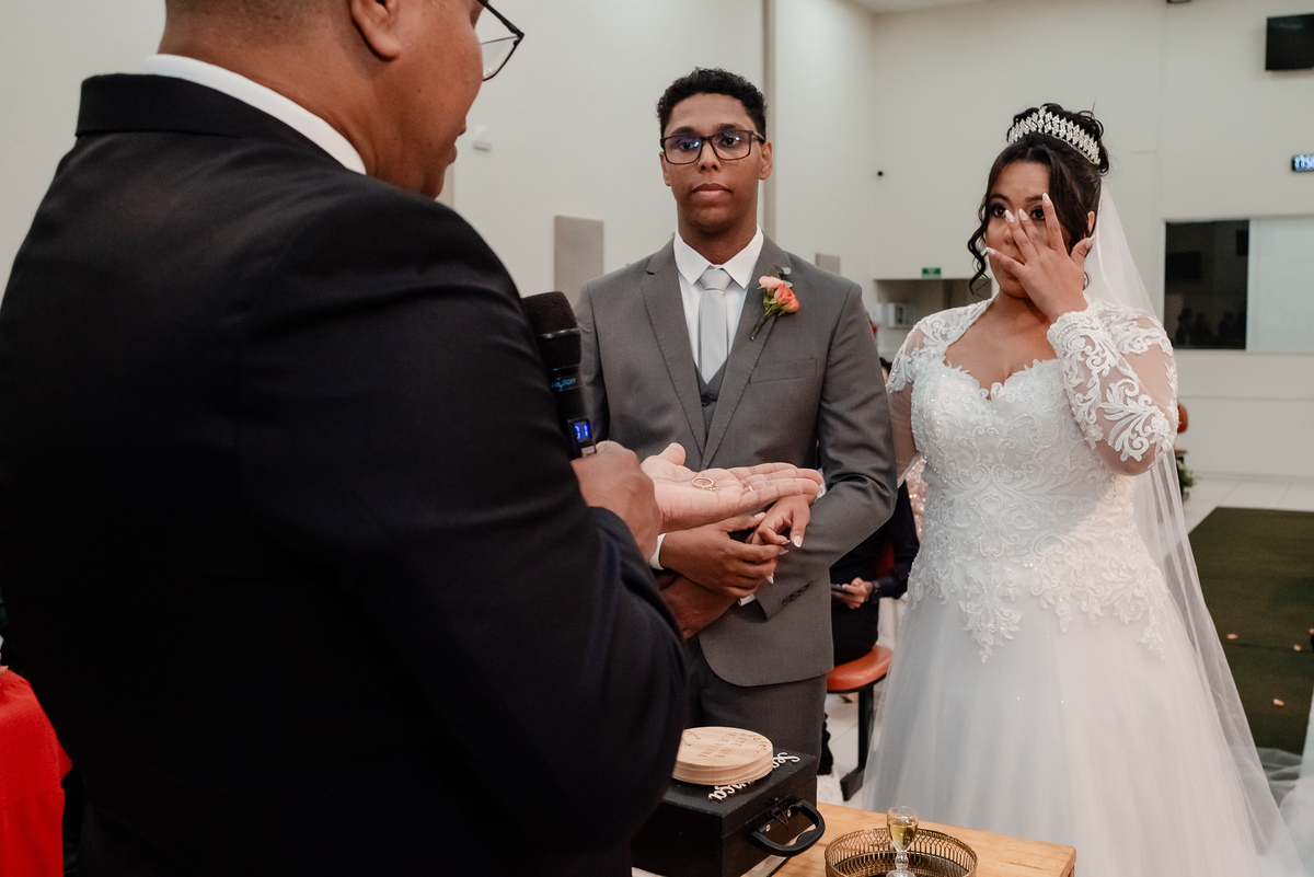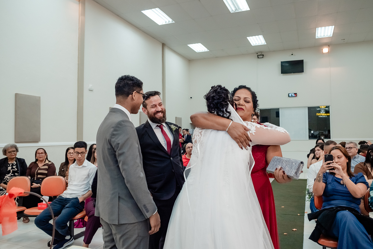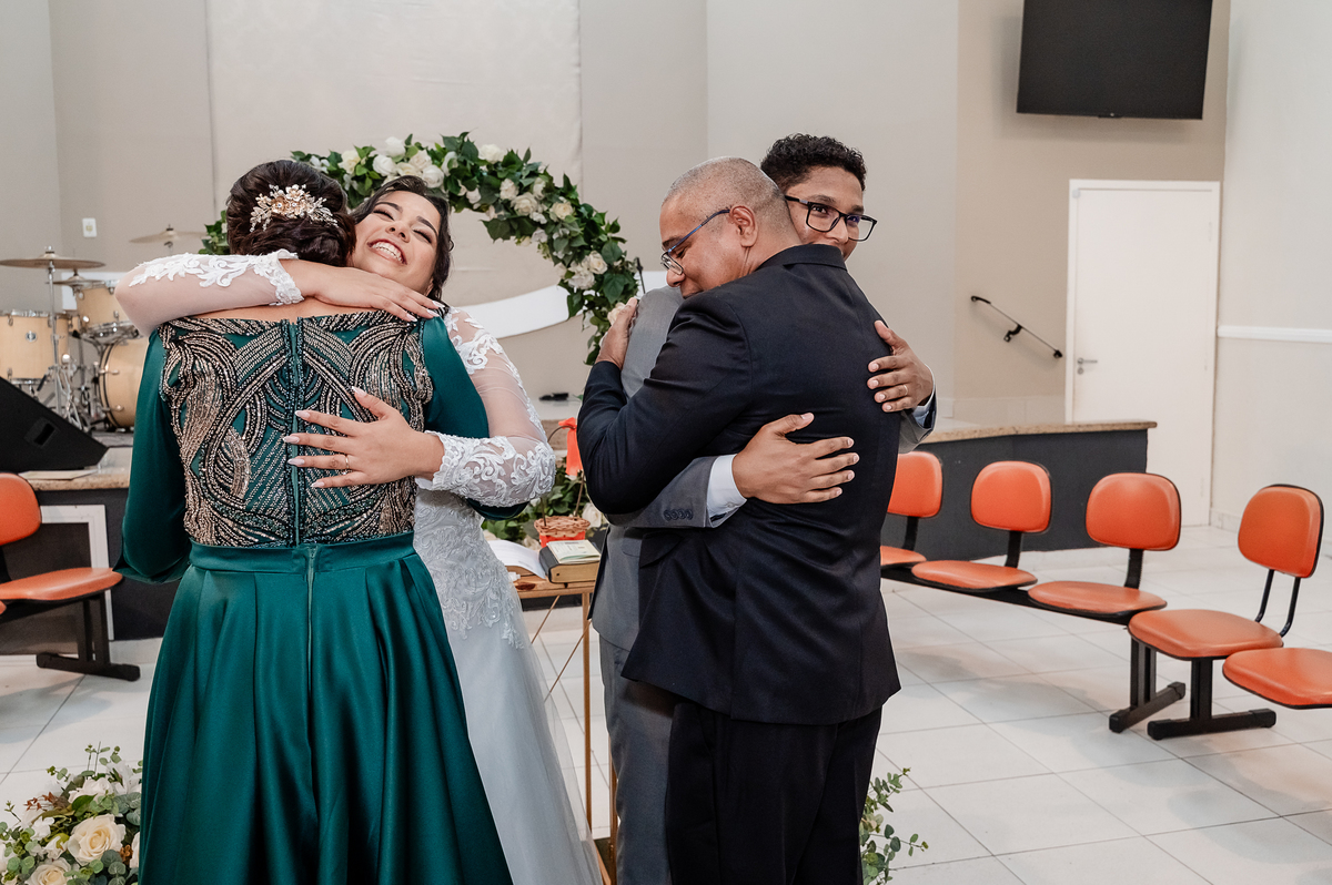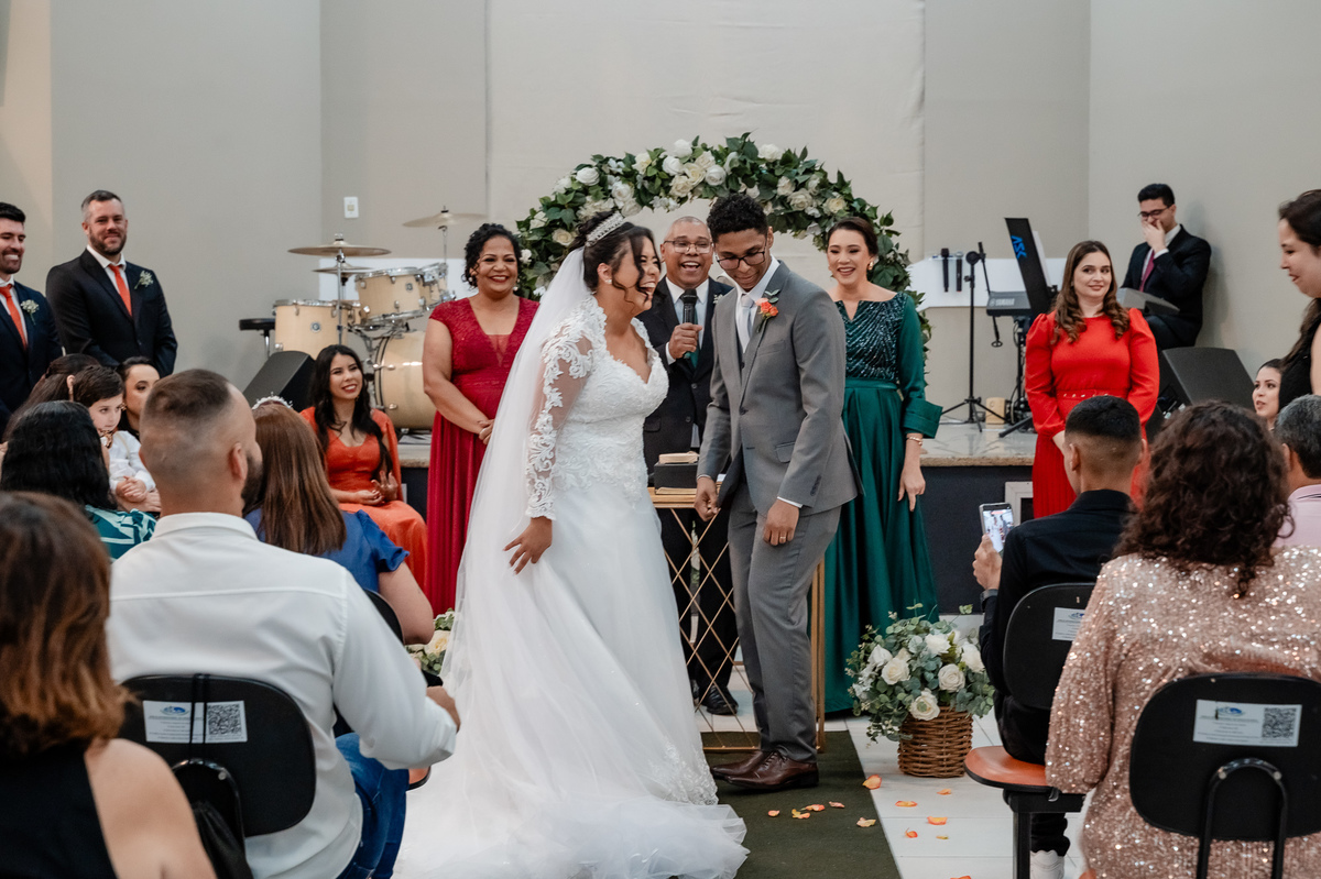 A linda celebração foi realizada pelo pai do Samuel, que emocionou a todos até o final. Abençoou e consagrou a vida do casal! Foi um momento de muito amor, de entrega, de alegria...na presença de suas famílias e amigos. Vitória e Samuel se uniram no amor e seguem agora juntos, para trilhar um novo caminho e com certeza mais uma linda história em suas vidas!