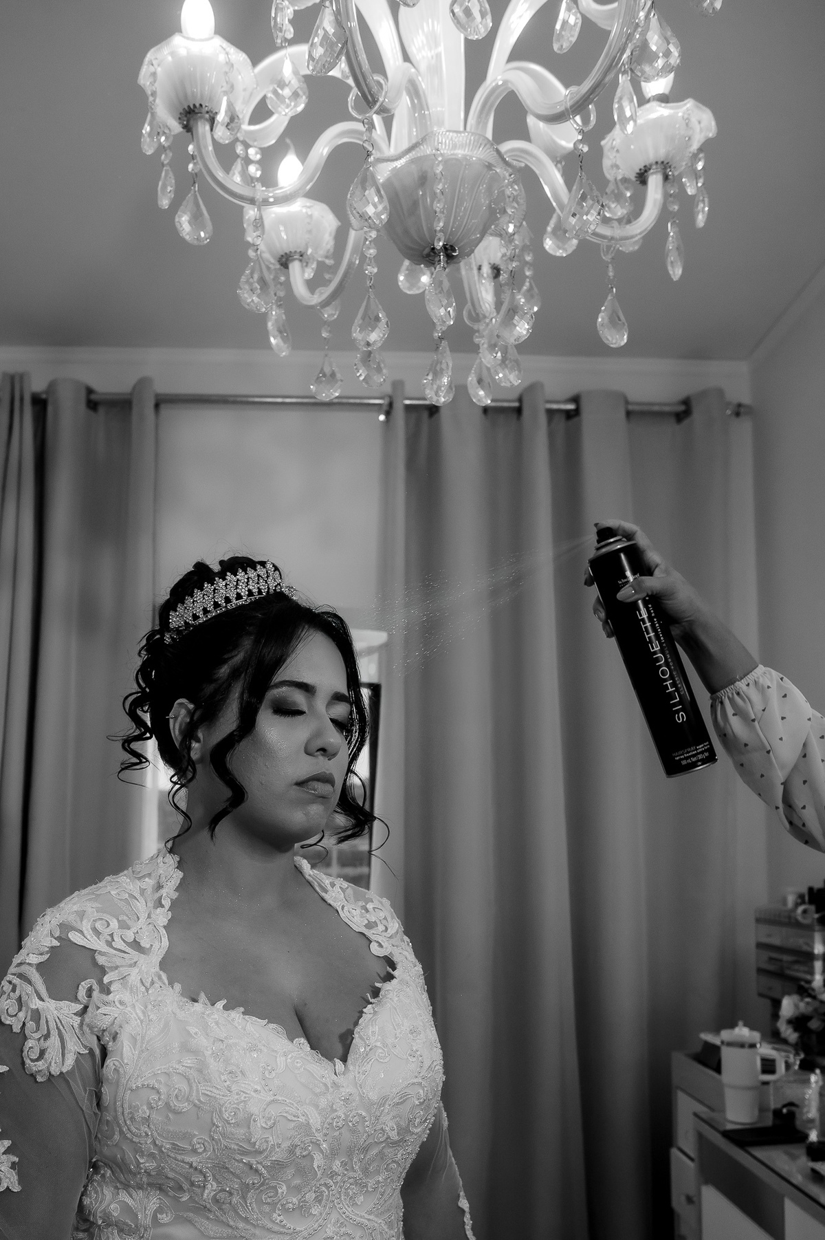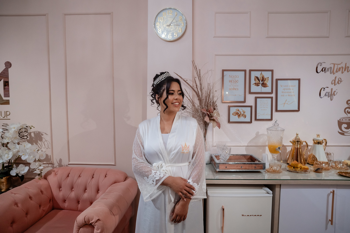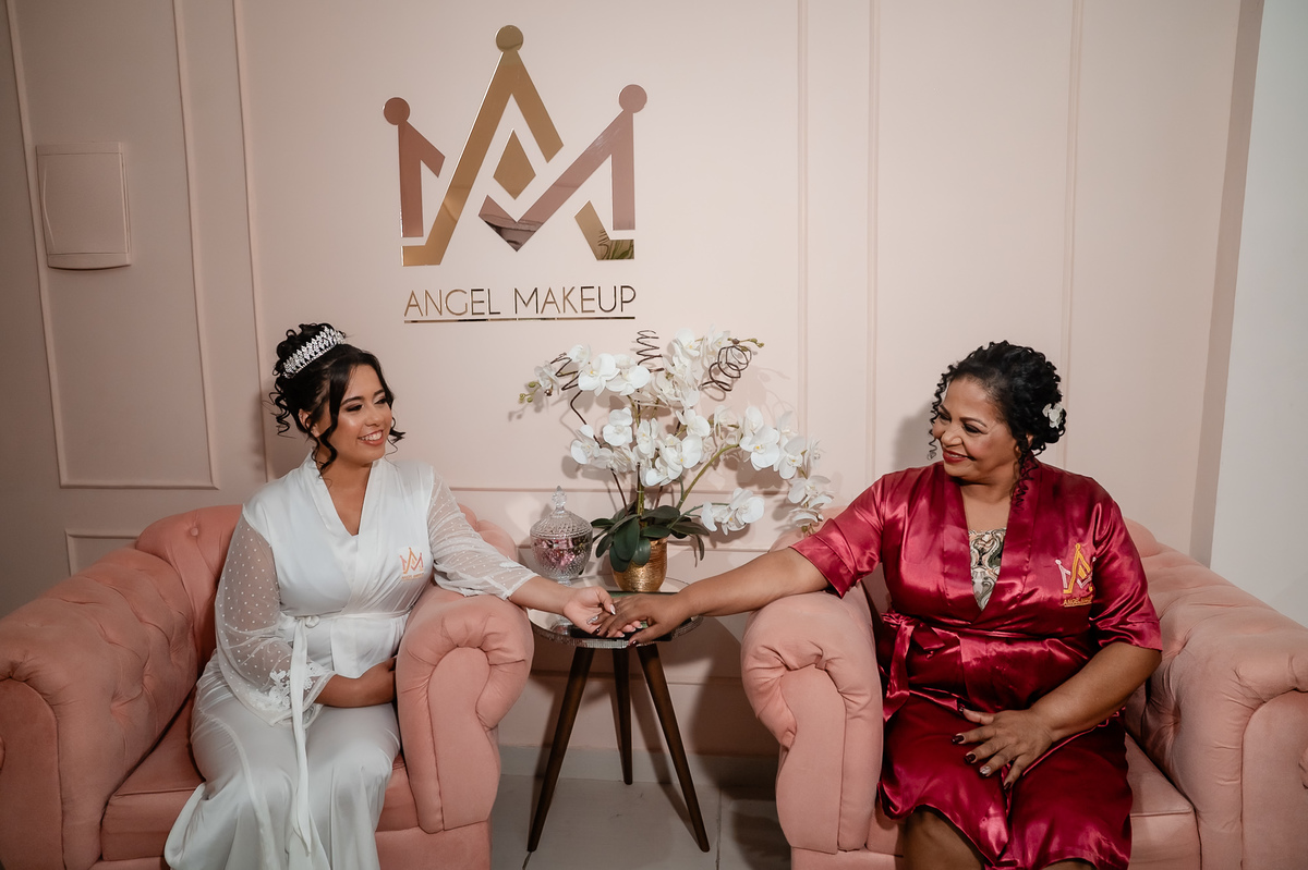 Acompanhamos a Vitória em seu dia de noiva realizado no espaço Angel Makeupp, em Mongaguá -SP, acompanhada de sua mãe, sua sogra e sua amiga e madrinha.