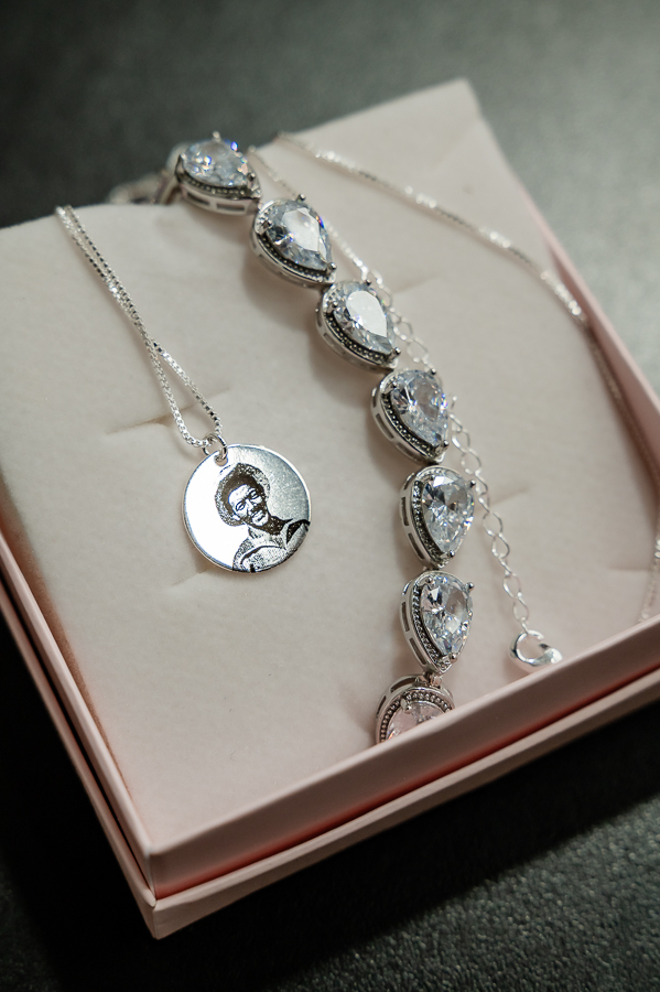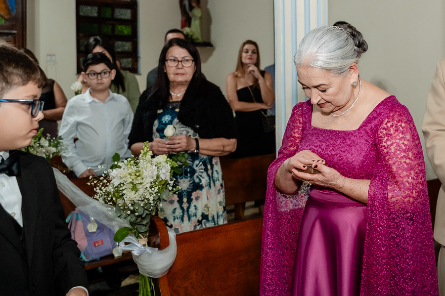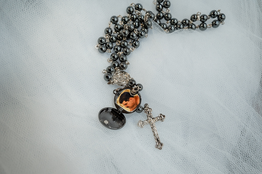 Enquanto fazíamos os registros uma das madrinhas chegou com uma linda surpresa para a Rosiane. O buquê e uma correntinha com um pingente com a foto do pai dela ( já falecido), um momento muito especial e emocionante para ela. Como surpresa para o Caio, a Rosiane mandou fazer um lindo terço com a foto do pai dele (também falecido), que seria entregue no início da cerimônia.