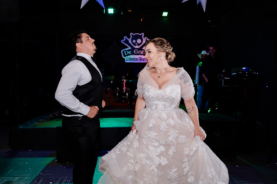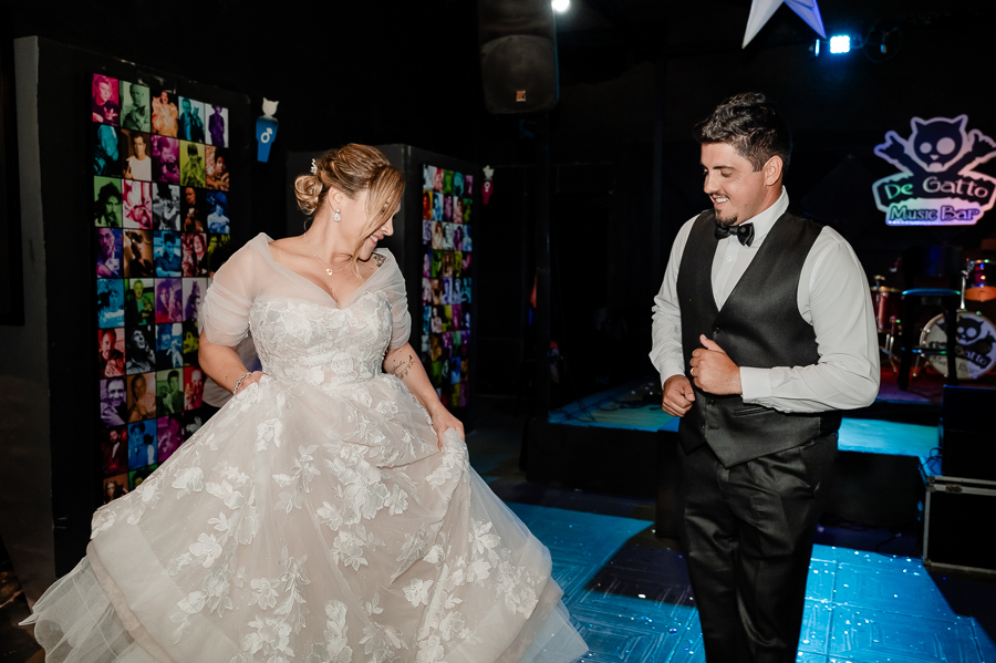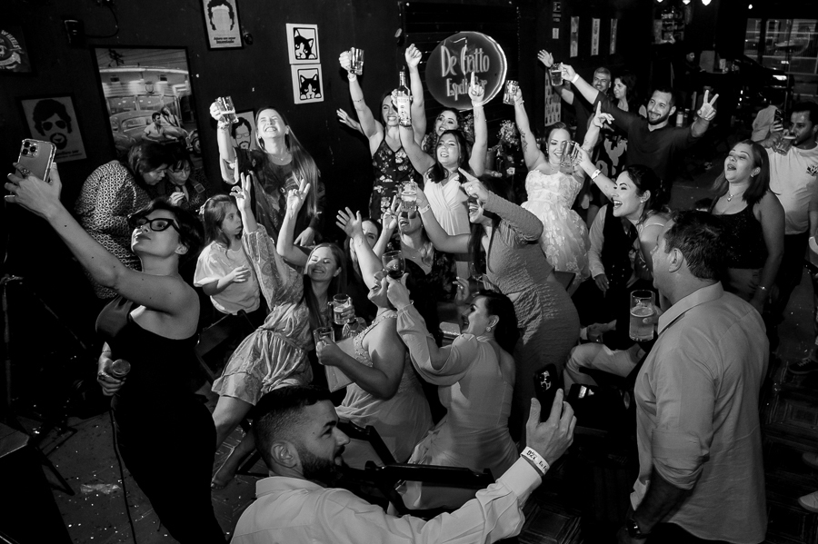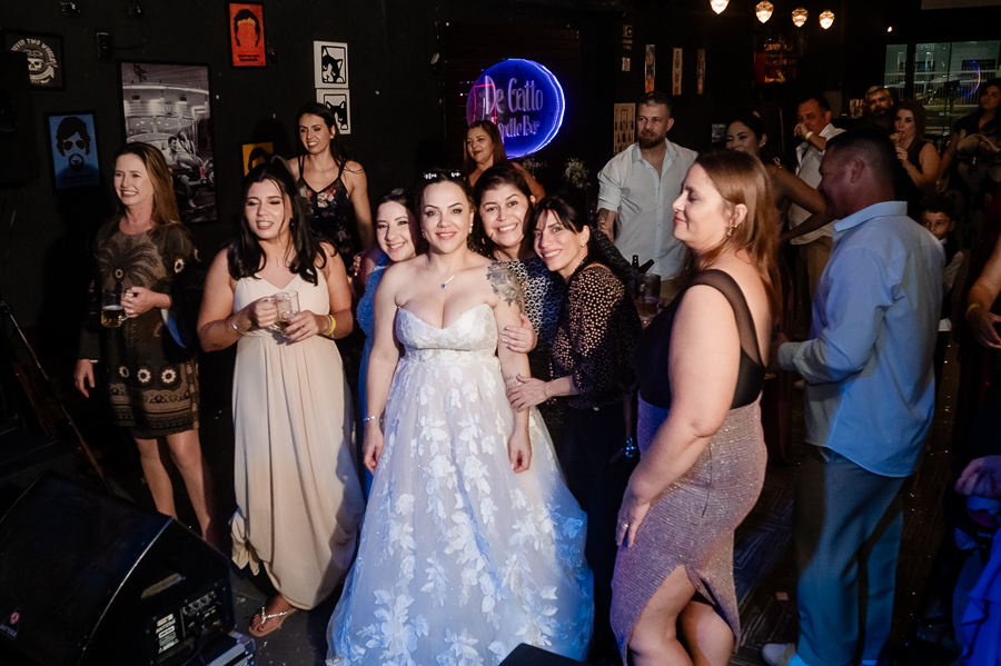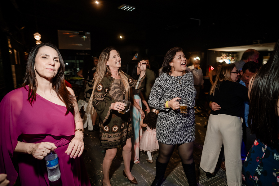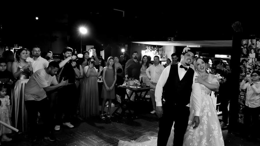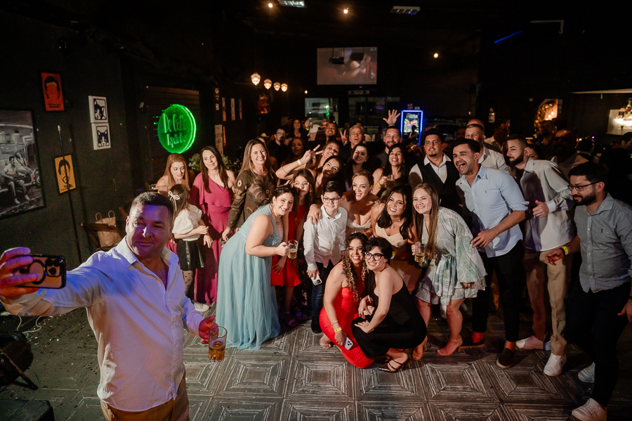E a hora da comemoração tão esperada chegou! A festa foi realizada no De Gatto Music Bar, em Mongaguá -SP, com a energia perfeita para o casal. Todos os aguardavam muito animados! Teve o cantor Davi com seu acordeon incrível e teve a Rebeca Nonatto, maravilhosa! Foi um grande show de música que trouxe aos noivos e convidados momentos incríveis de muita dança e cantoria!