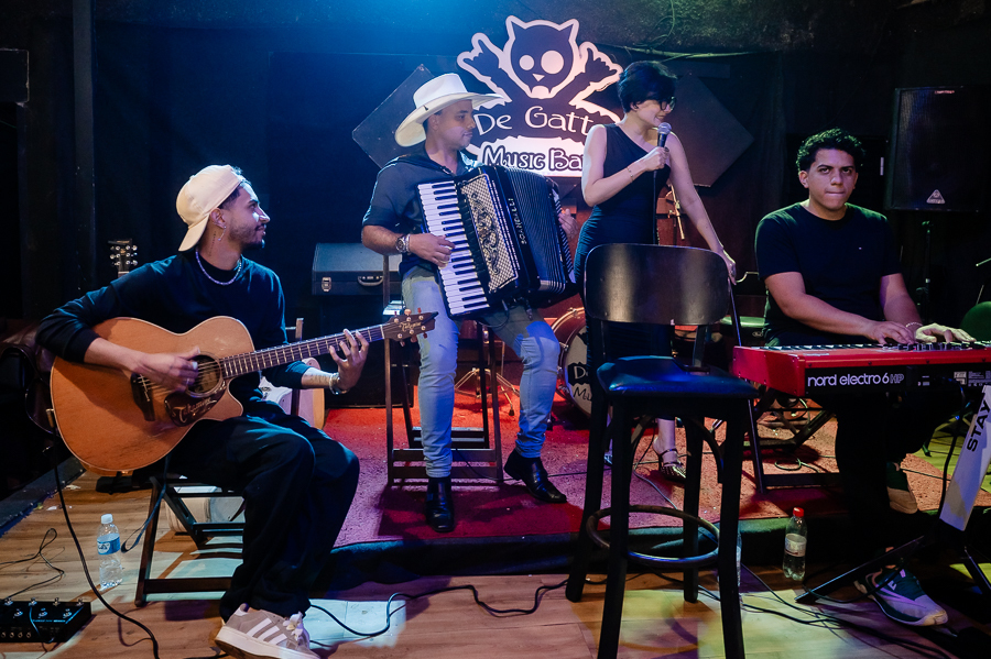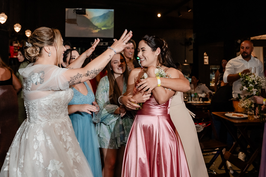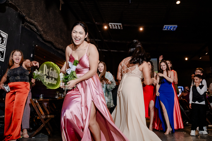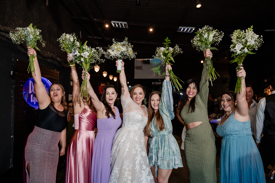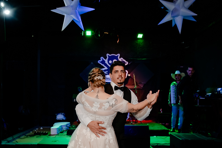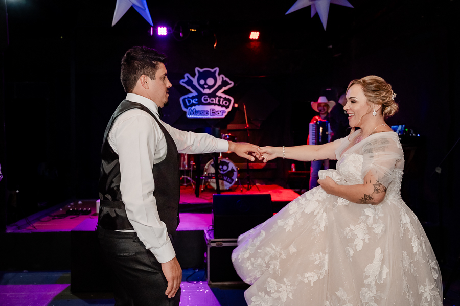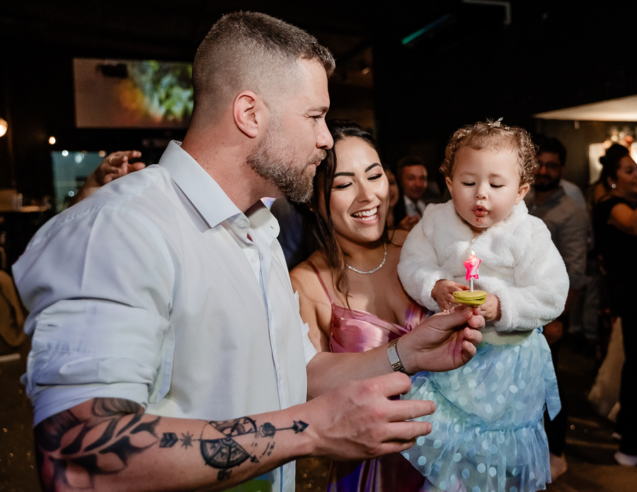 E a hora da comemoração tão esperada chegou! A festa foi realizada no De Gatto Music Bar, em Mongaguá -SP, com a energia perfeita para o casal. Todos os aguardavam muito animados! Teve o cantor Davi com seu acordeon incrível e teve a Rebeca Nonatto, maravilhosa! Foi um grande show de música que trouxe aos noivos e convidados momentos incríveis de muita dança e cantoria!