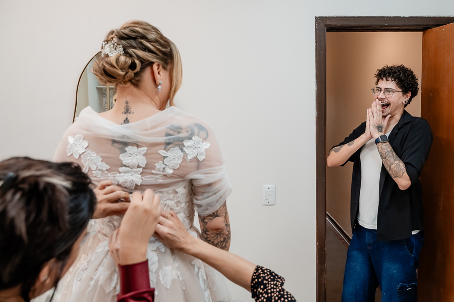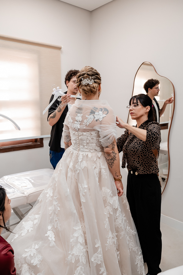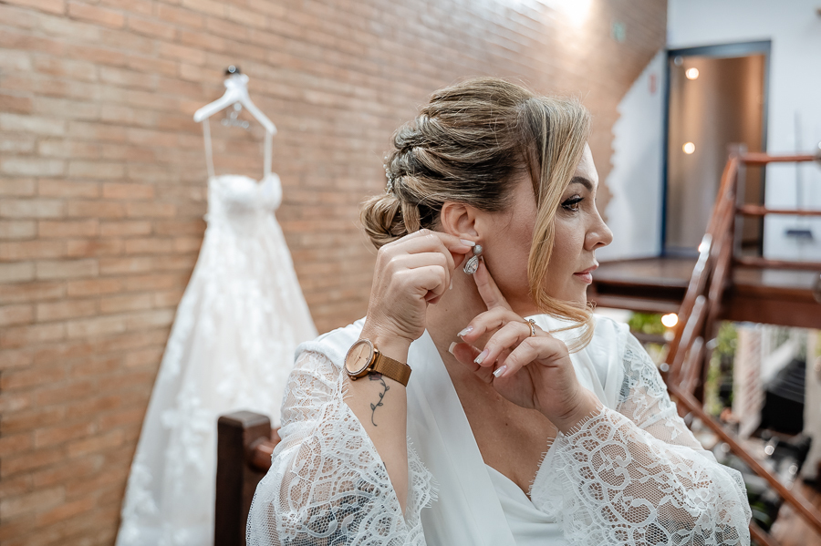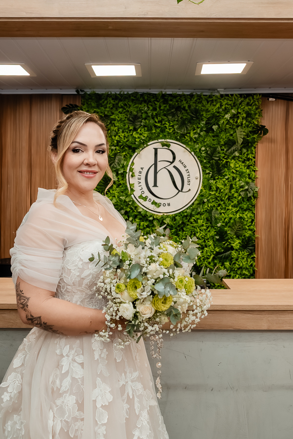 Iniciamos o dia com o making of da Rosiane, realizado no Salão Ro Coiffeur, em Mongaguá - SP, aos cuidados do cabeleireiro Victor Carrasco e da maquiadora Gleyce Sampaio que simplesmente arrasaram em todo a preparação da noiva. A Rosiane estava radiante e nos recebeu com todo carinho. Tudo aconteceu de forma muito tranquila e com muita emoção.