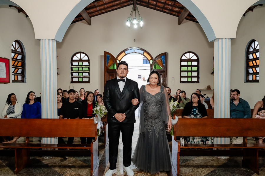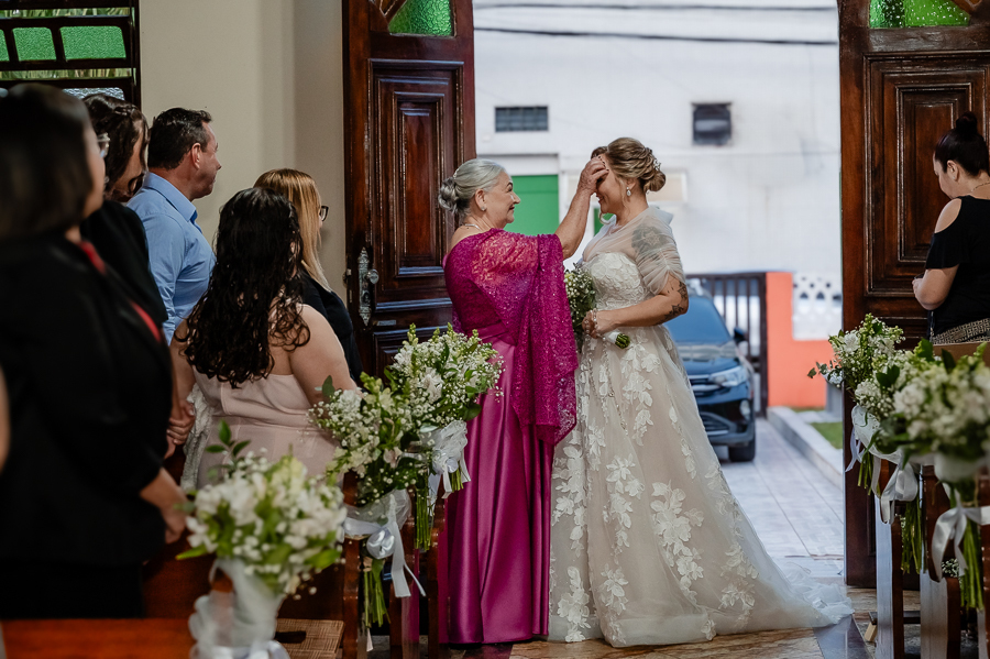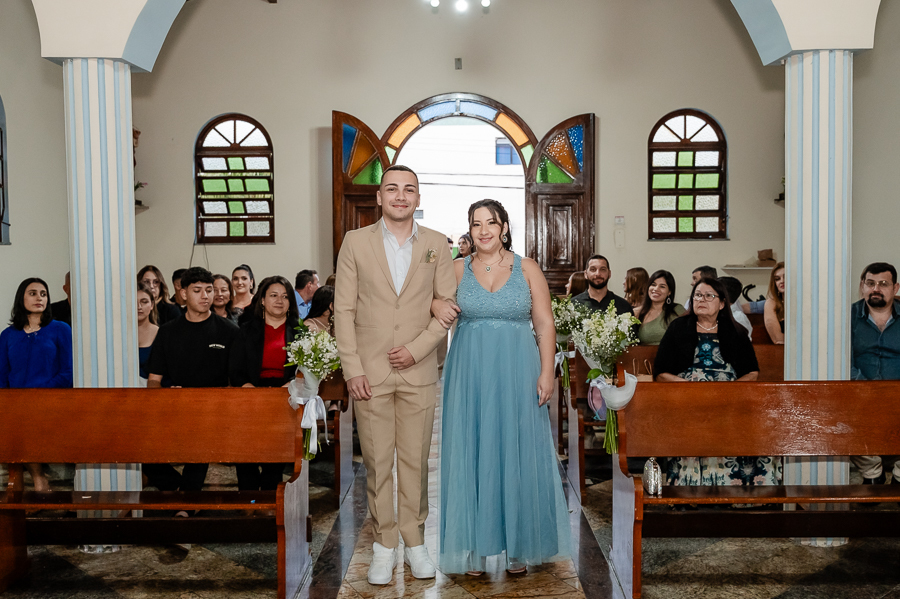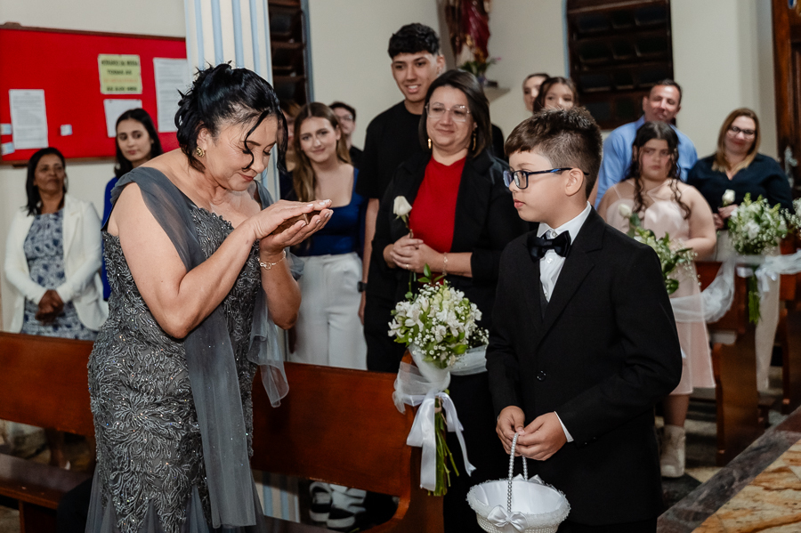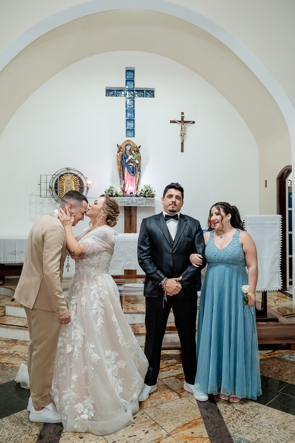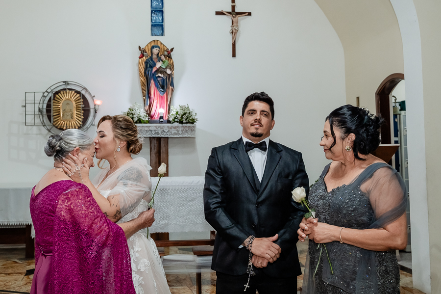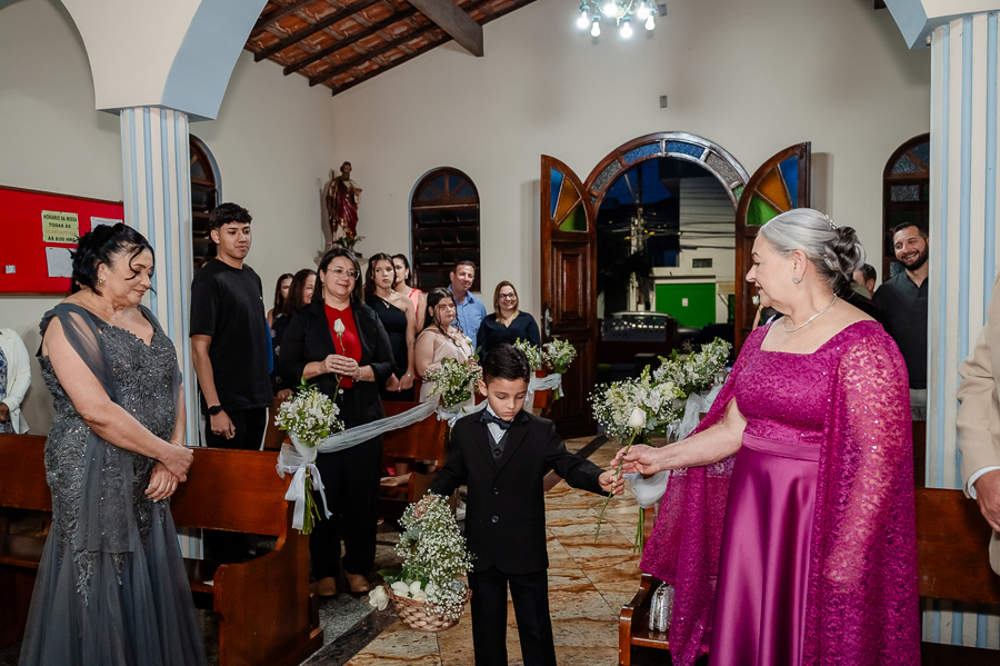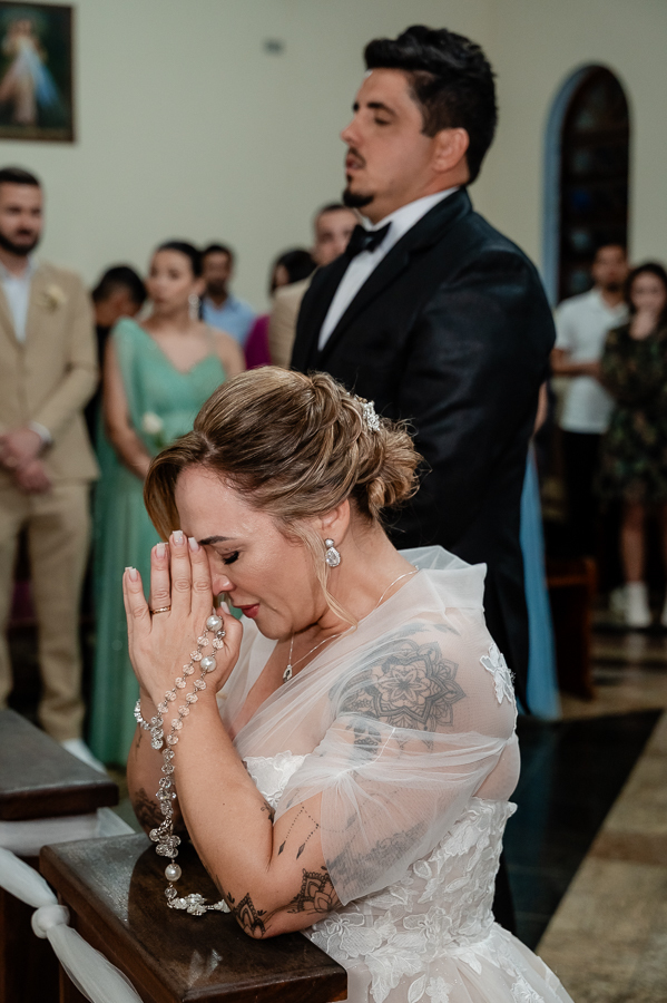 Foi uma linda cerimônia onde a Rosiane e o Caio receberam a benção do padre Rogério de toda a família e amigos presentes. Realizaram seu desejo de estarem em comunhão com Deus e vivenciaram tudo com muita emoção.