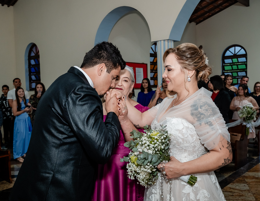 Depois de quase vinte anos de muito amor e companheirismo, Rosiane e Caio decidiram que era o momento de se unirem através do sacramento do matrimônio. Além de selarem sua união e receberem as bençãos da igreja, eles tinham o desejo de estarem em comunhão com Deus.