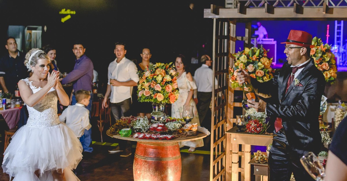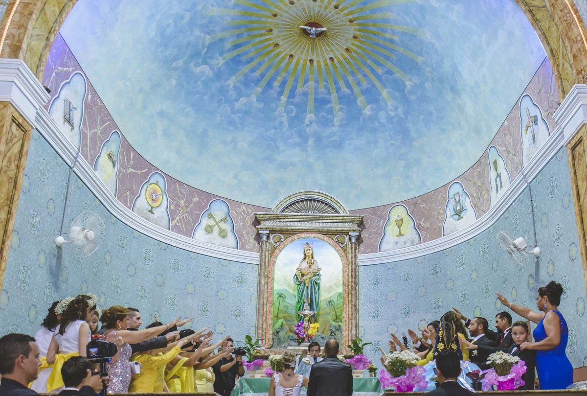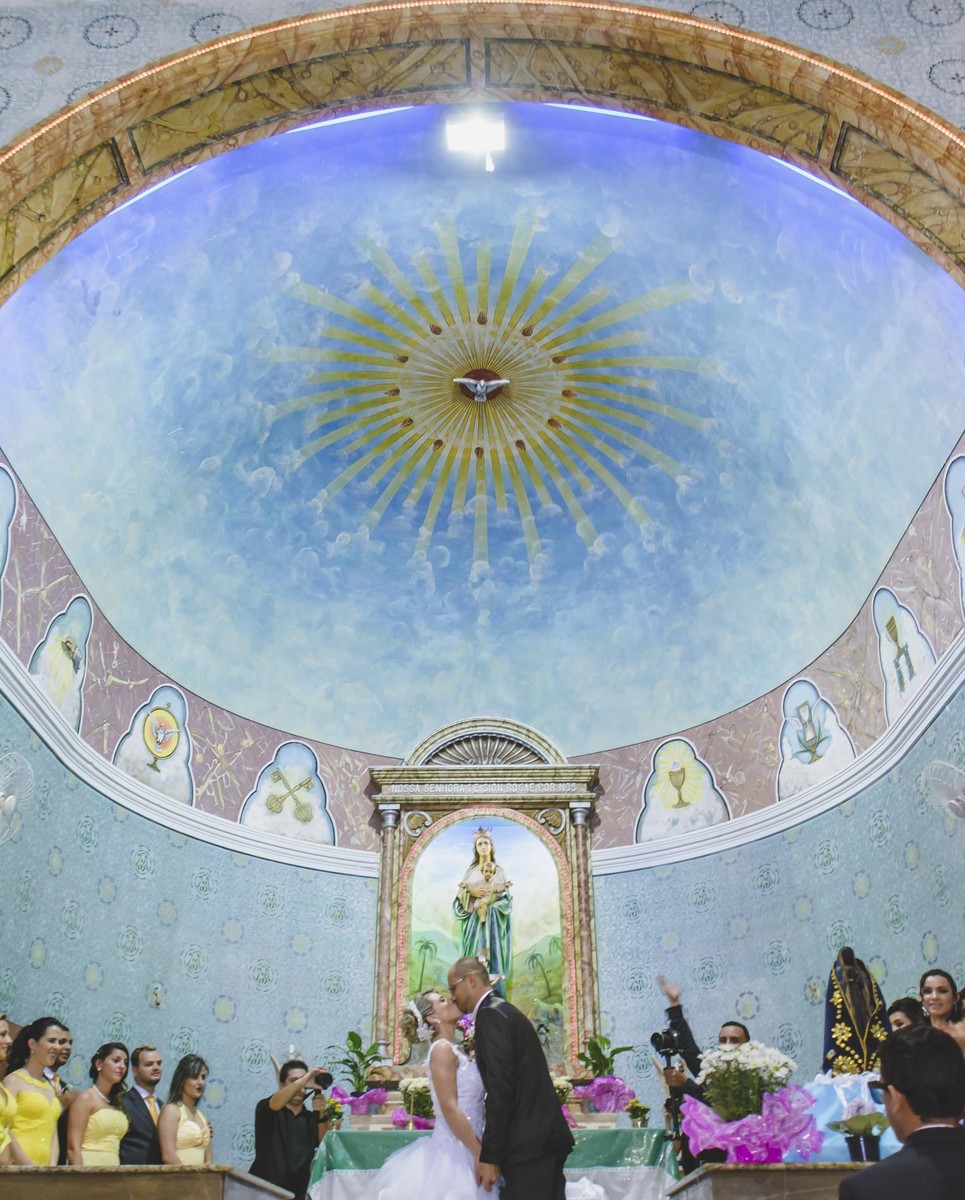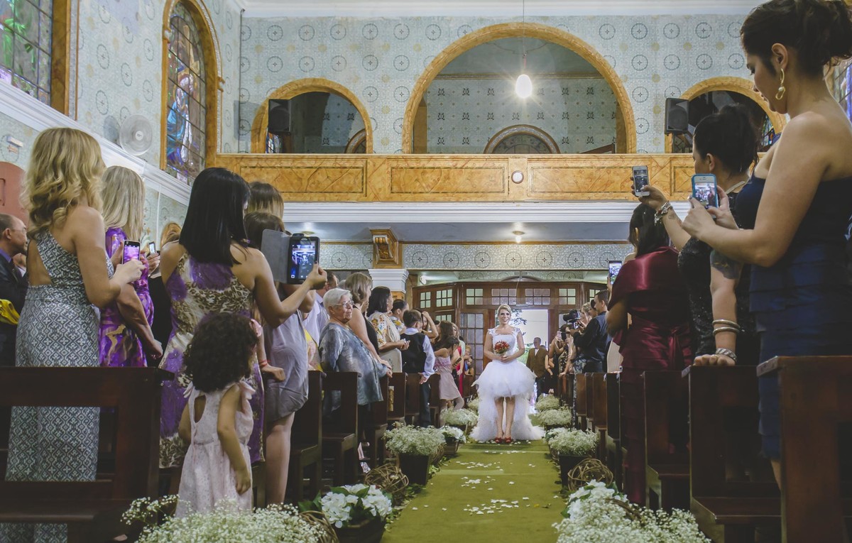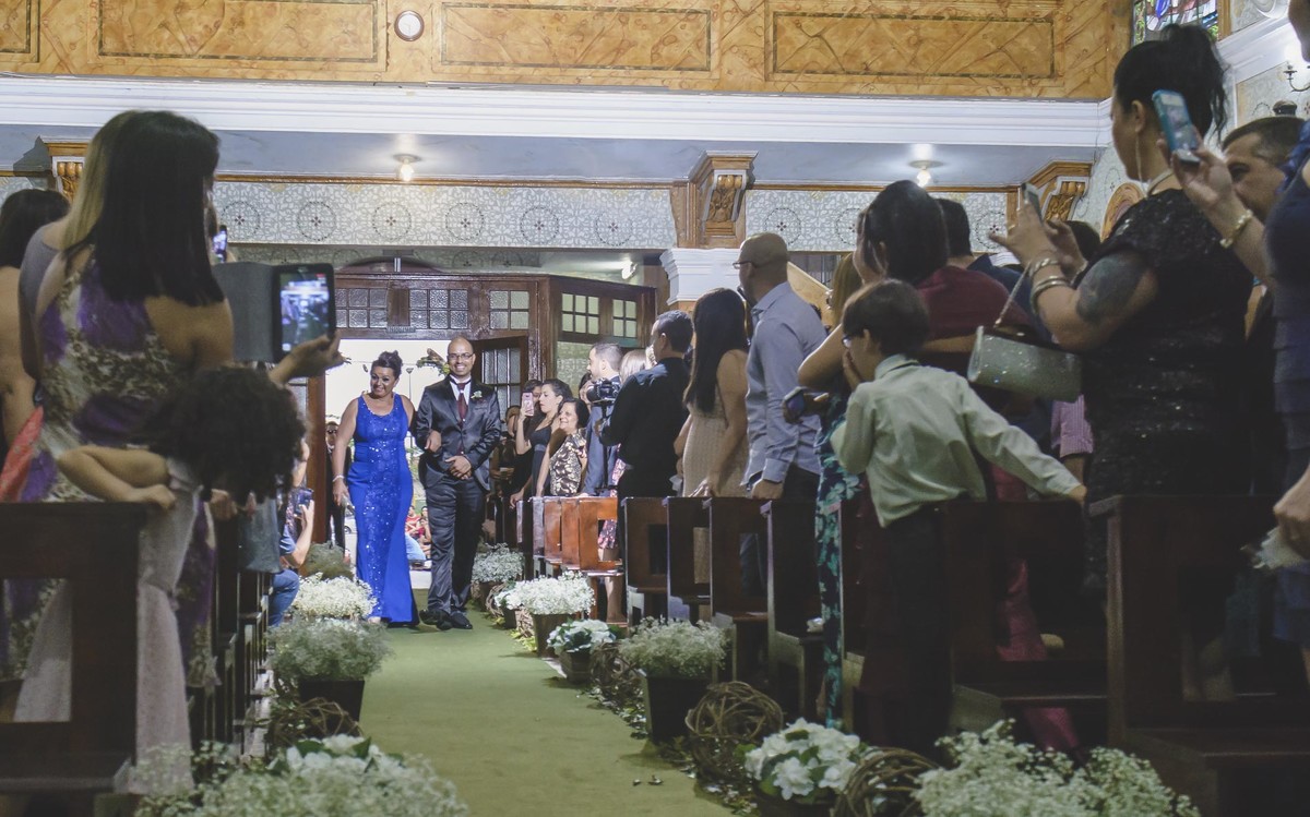 A cerimônia foi sem protocolos, teve lágrimas de alegria, risadas, palmas e um padre figura que entregou ao final o chapéu para o noivo sair da igreja todo estiloso!