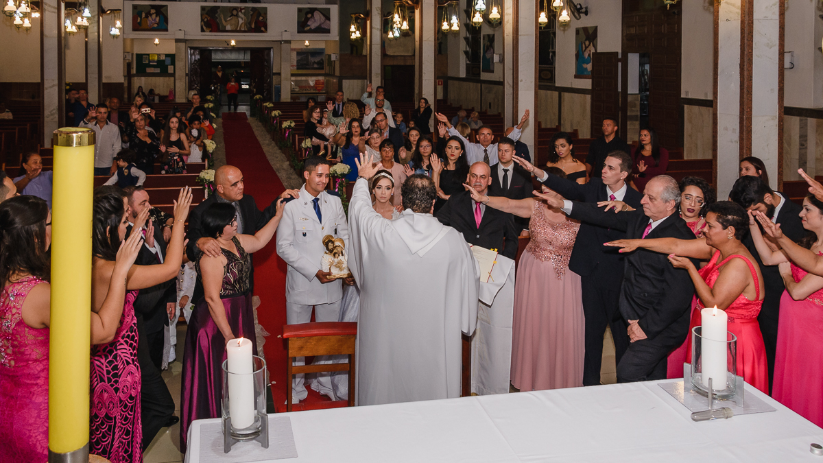 Milena e Bruno tiveram uma linda cerimônia, realizada na Paróquia de Nossa Senhora Aparecida, na cidade de Mongaguá, no estado de São Paulo, abraçados pelo amor de suas famílias e amigos. Tudo muito lindo, muito emocionante e especial assim como o amor deles. O momento mais esperado era a entrada das alianças trazidas por sua filhinha, Anna Lívia, que deu um show de fofura e encantou à todos!