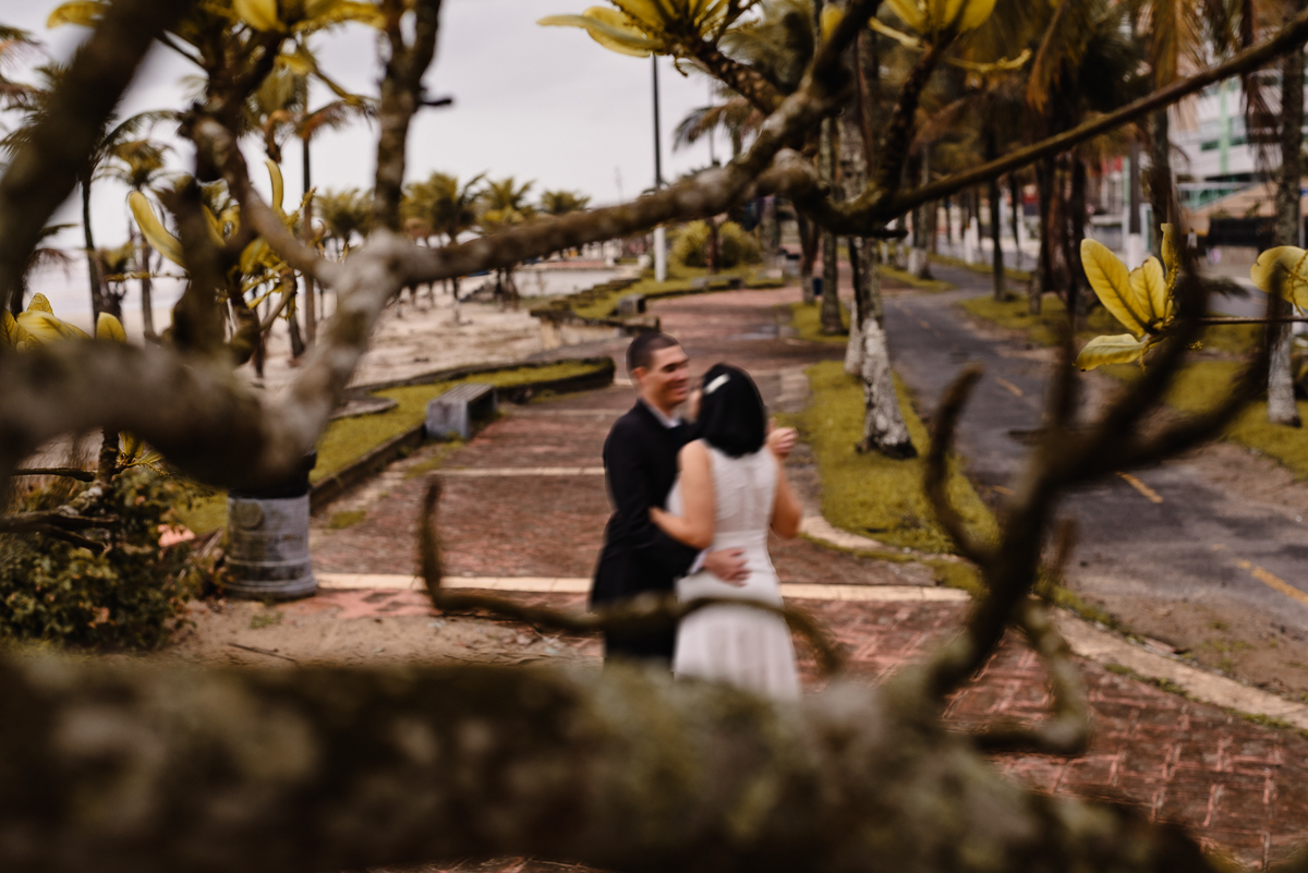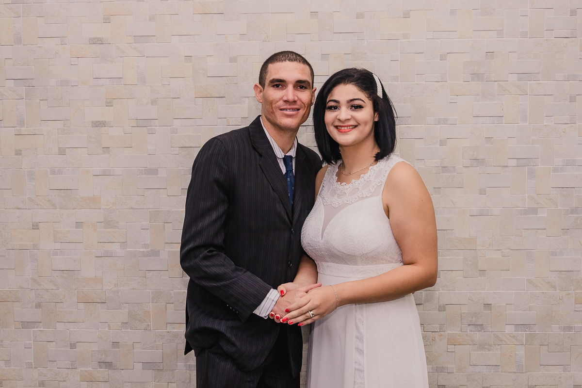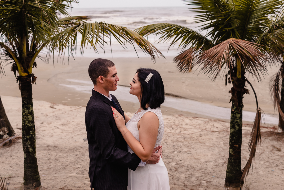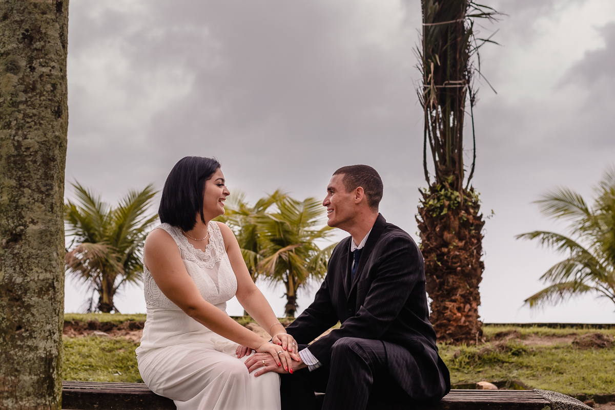Primeiro foi a realização no cartório na cidade de Mongaguá-SP, após a cerimônia foram se organizar para a confraternização entre noivos, familiares e seus amigos mais íntimos em uma casa no qual ficava próximo daquele velhinho banquinho na orla da praia no bairro do Real na cidade de Praia Grande-SP, no qual haviam se conhecido e realizavam agora vestidos de noiva e noivo os seus votos, com direito a dança, beijo e abraços.