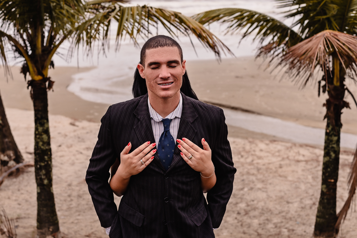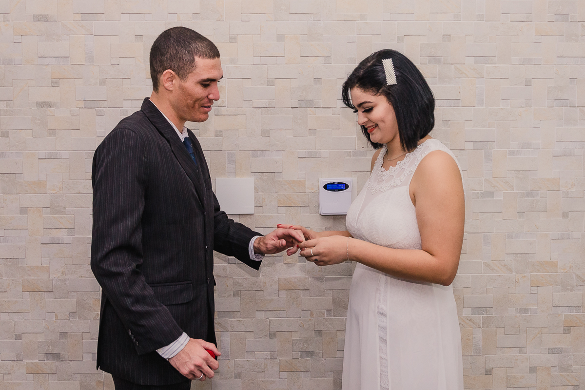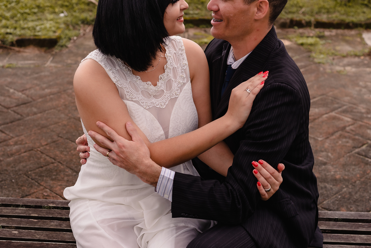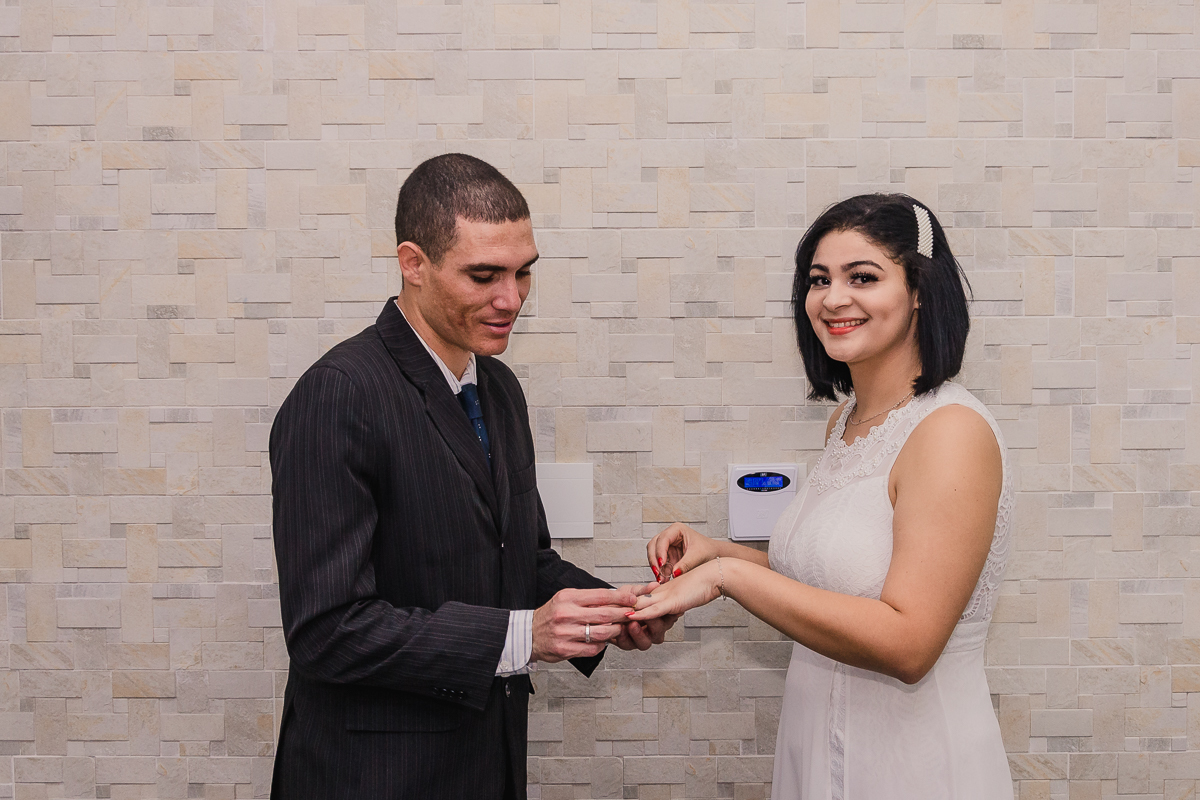 Primeiro foi a realização no cartório na cidade de Mongaguá-SP, após a cerimônia foram se organizar para a confraternização entre noivos, familiares e seus amigos mais íntimos em uma casa no qual ficava próximo daquele velhinho banquinho na orla da praia no bairro do Real na cidade de Praia Grande-SP, no qual haviam se conhecido e realizavam agora vestidos de noiva e noivo os seus votos, com direito a dança, beijo e abraços.