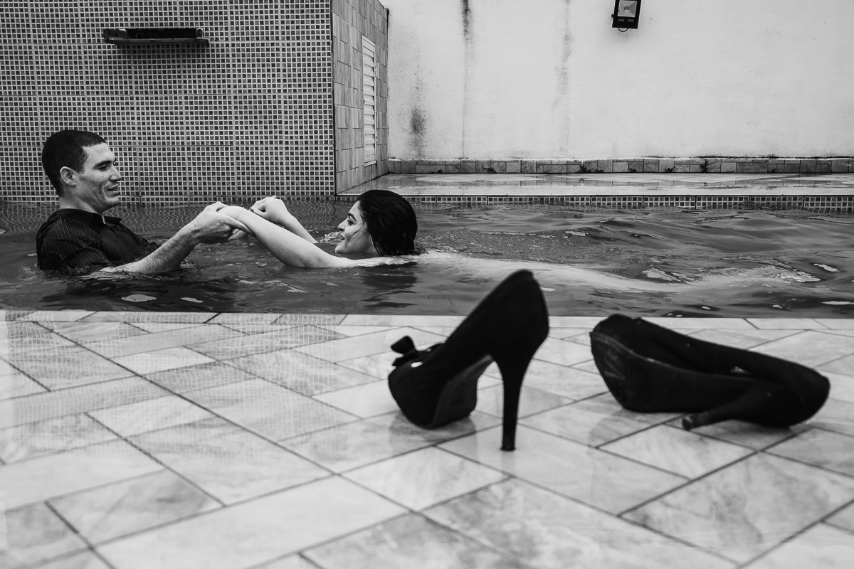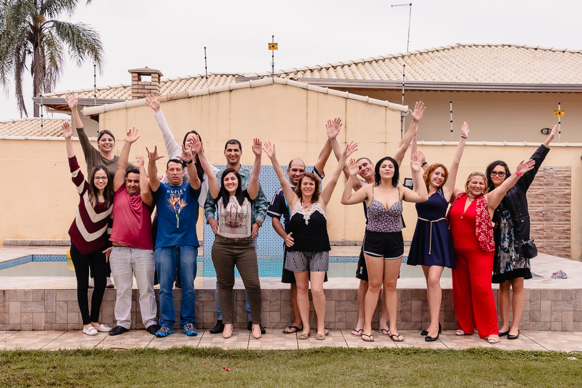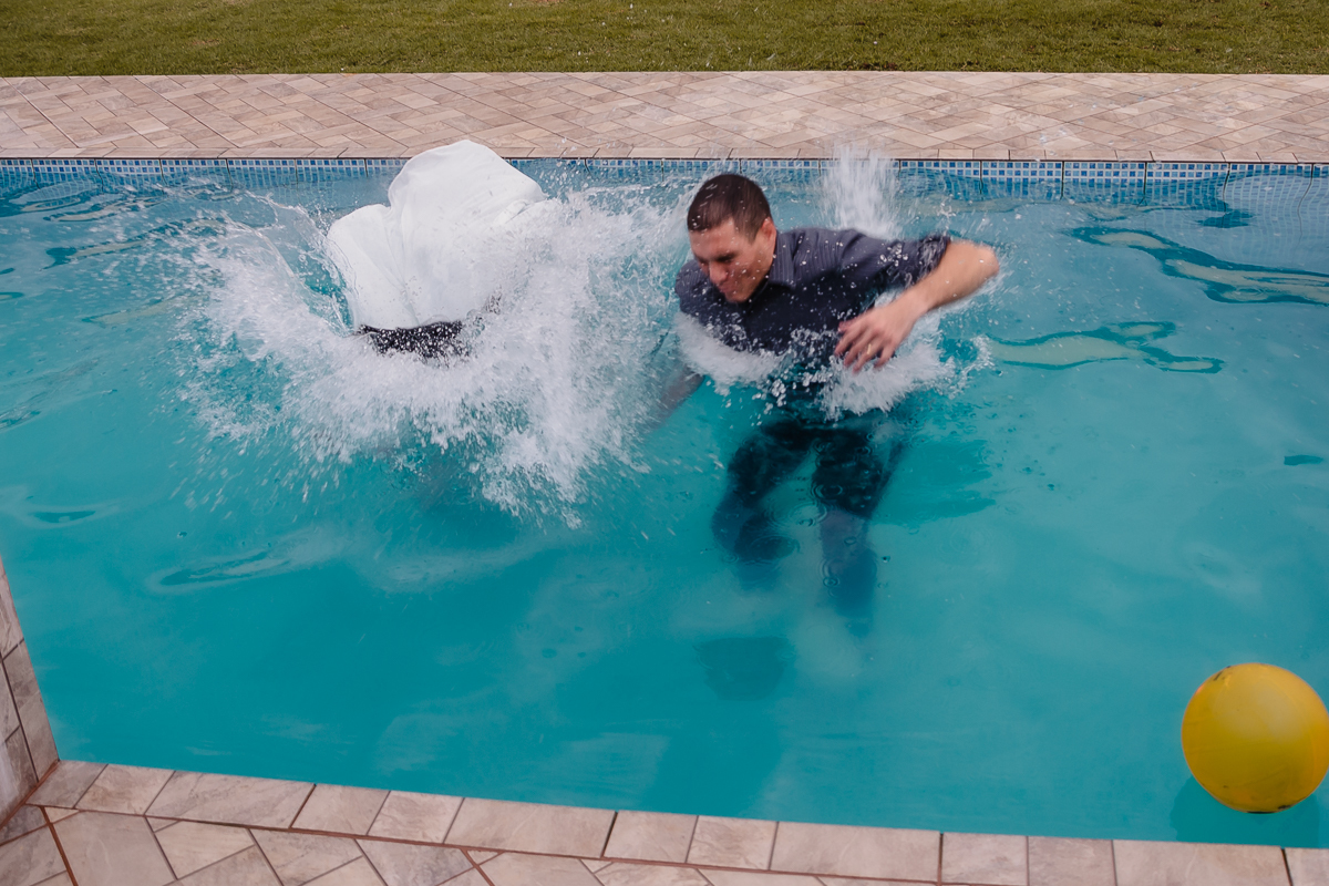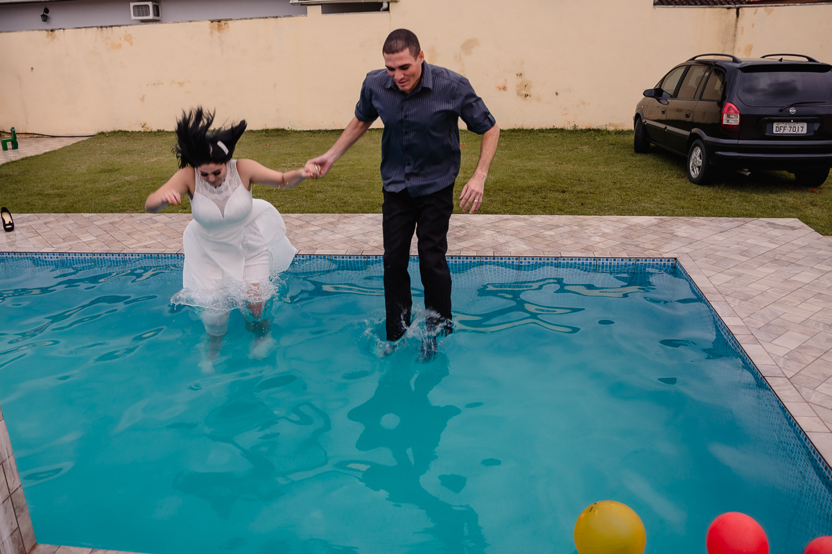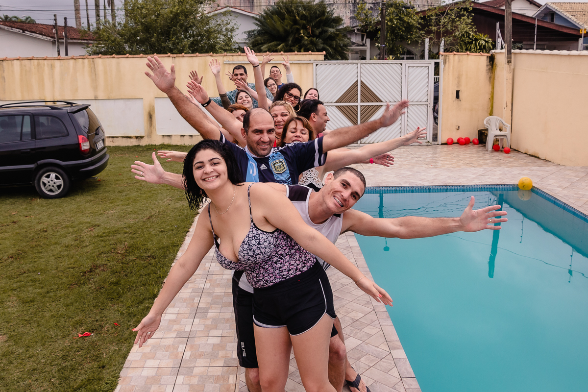 Na casa podemos dizer que os pais do Ederson agitaram as coisas, mesmo com o clima ameno, pularam na piscina e com isso os noivos também tomaram a iniciativa, em meio há um bom churrasco, música e resenha entre os convidados.