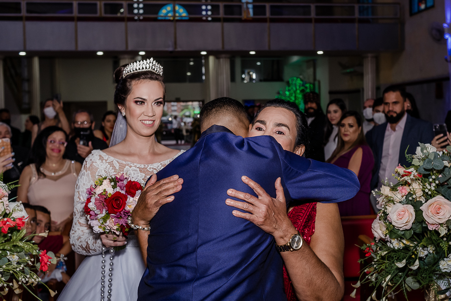 Seguimos para a cerimônia, que foi emocionante e linda, onde o casal recebeu todo o carinho da família e de seus amigos.