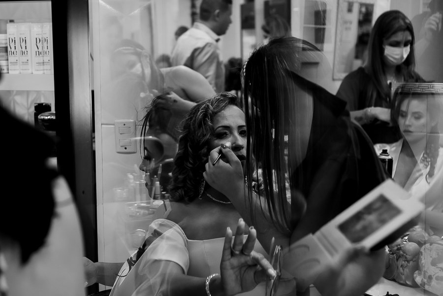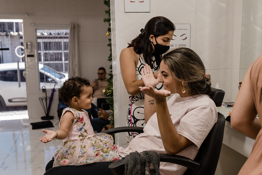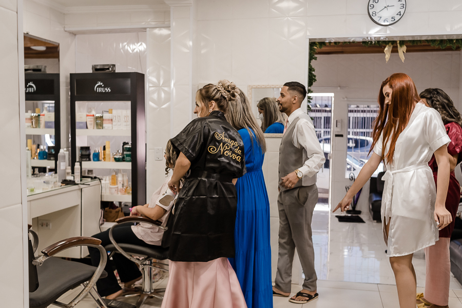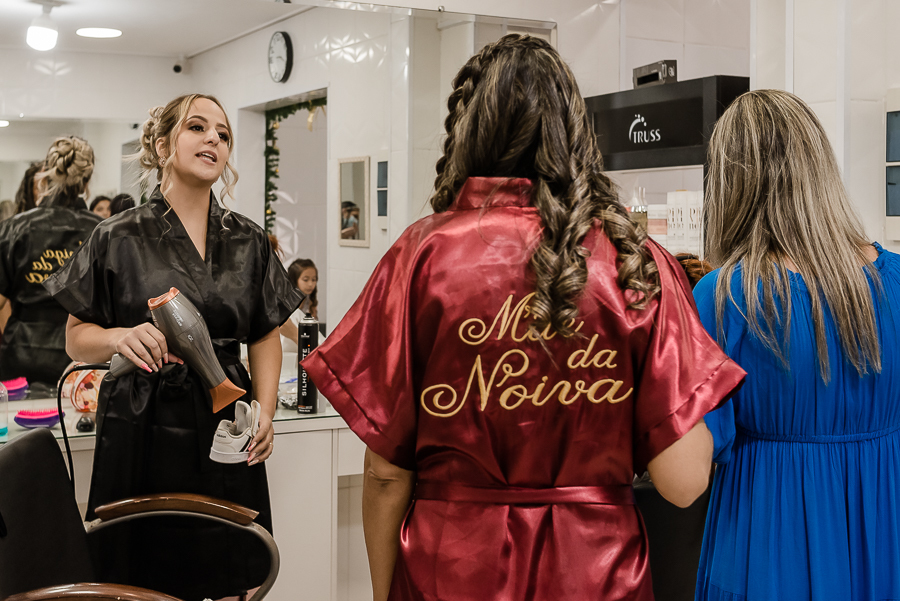 Acompanhamos a Lorena, sua mãe e suas madrinhas no Salão Claudinha Gregório, em momentos muito especiais! Todas lindas e muito felizes, recordando histórias que viveram juntas, ansiosas e emocionadas para a hora do casamento! Não podiam se olhar sem falarem:
