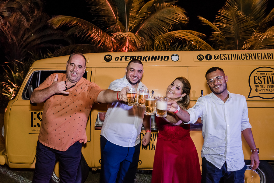 A festa iniciou com banda ao vivo, muita alegria, muita dança, drinks e uma kombi com Chopp especial!