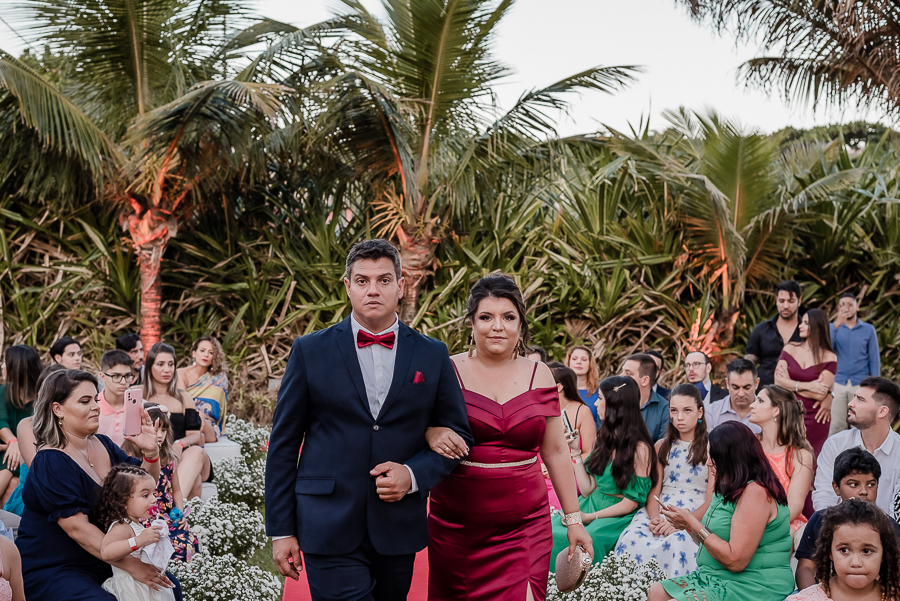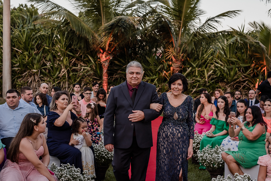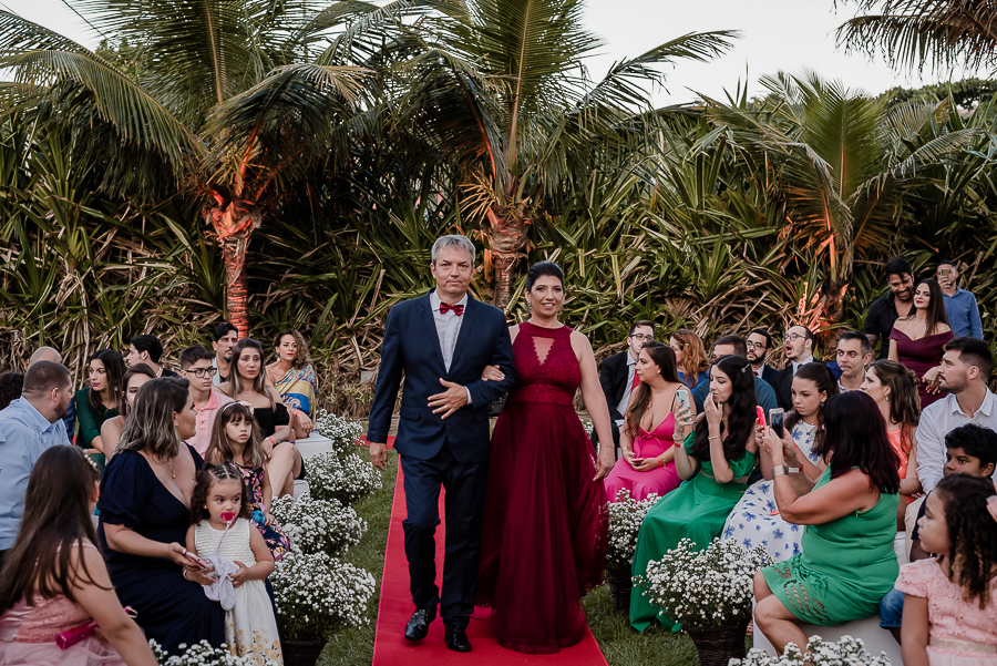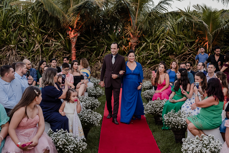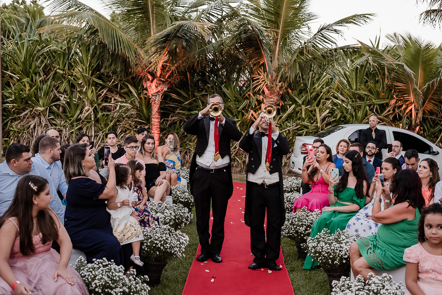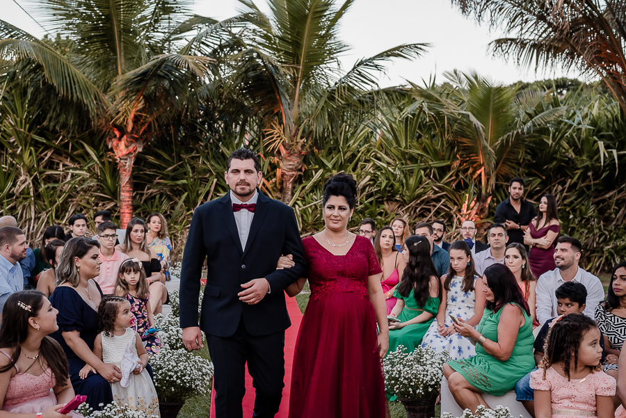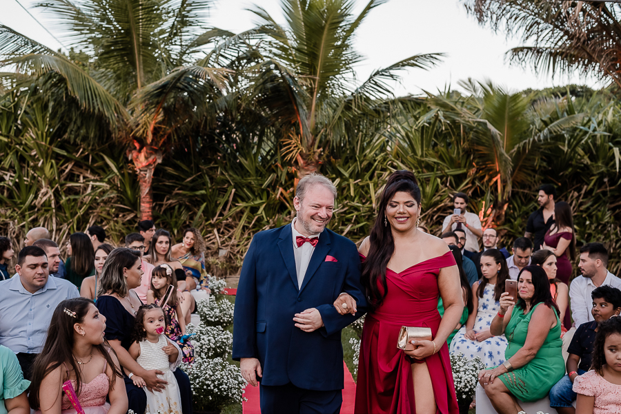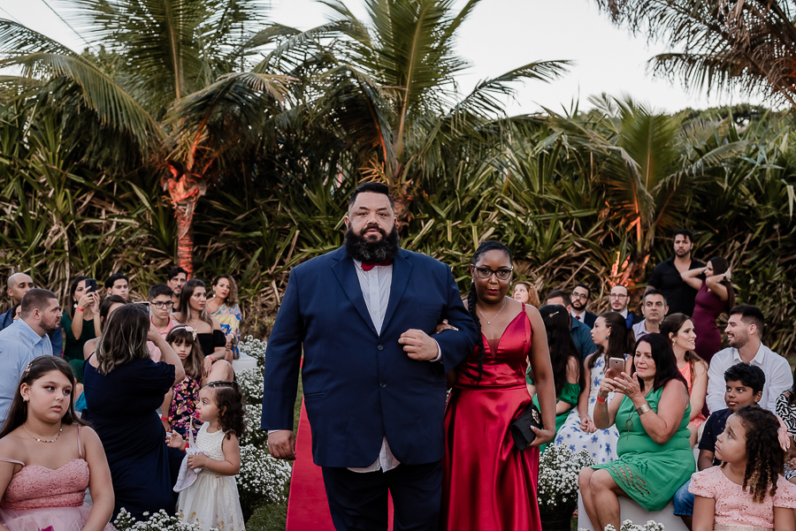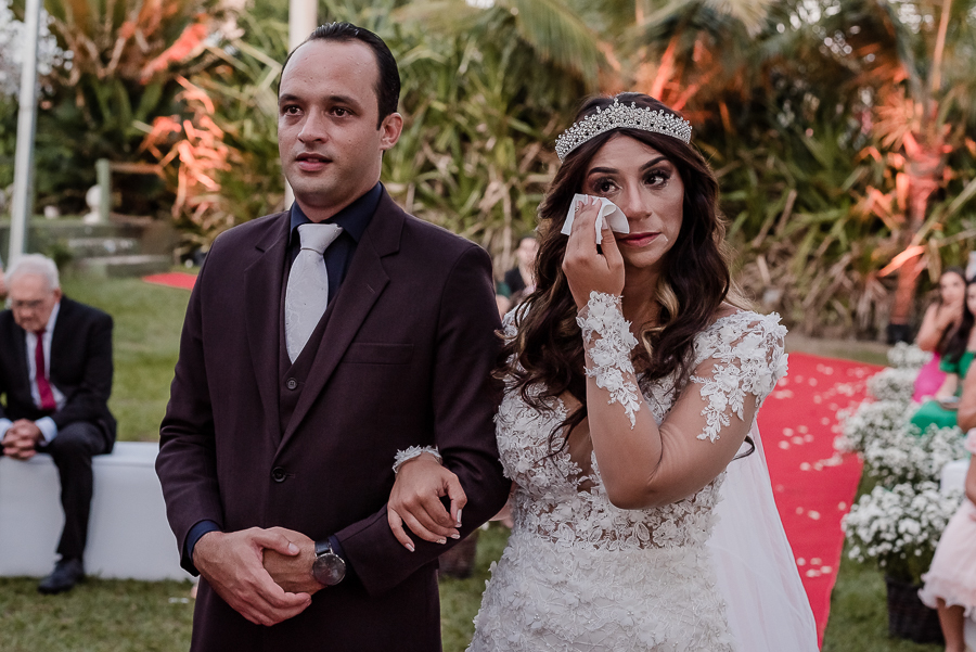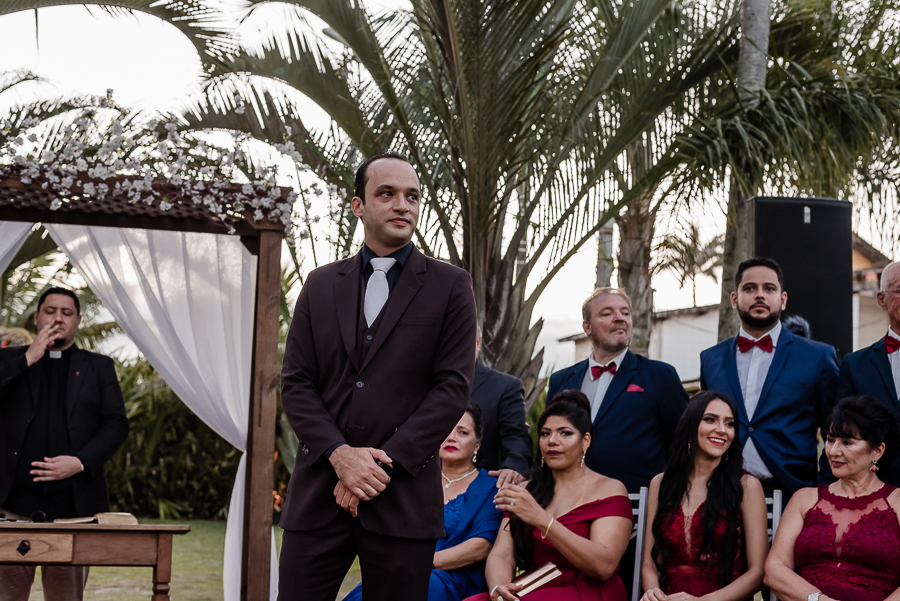 Tudo pronto! A Kátia estava pronta e de dentro de uma sala de frente para o espaço da cerimônia pôde acompanhar a entrada dos padrinhos e do noivo, um momento realmente emocionante!