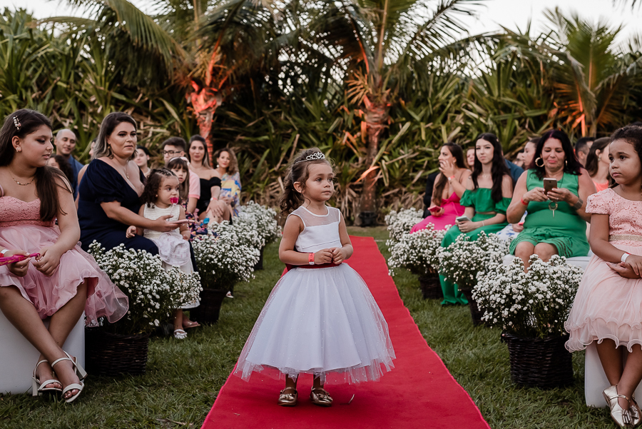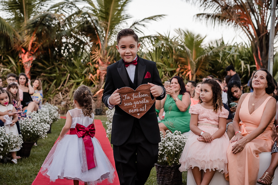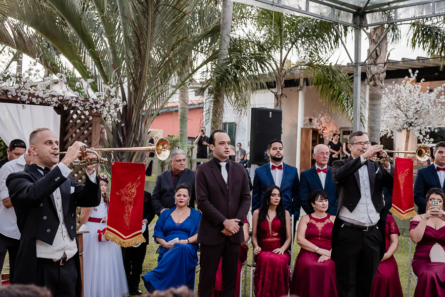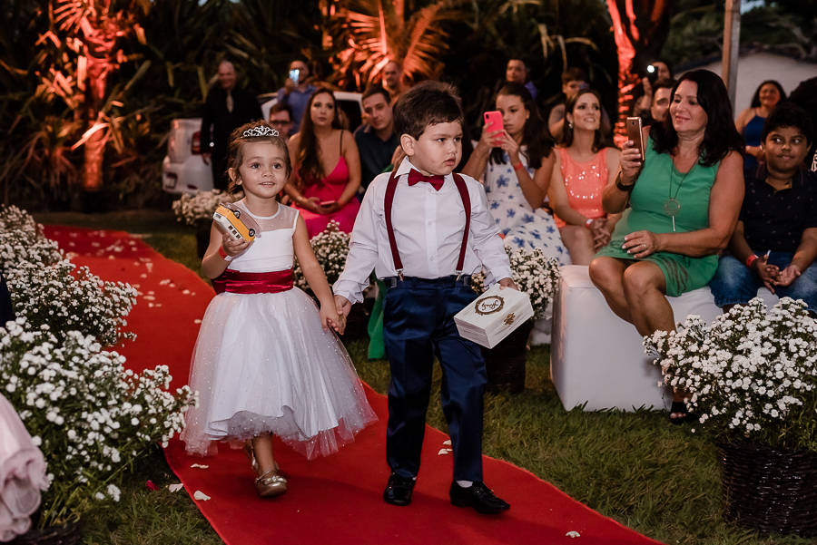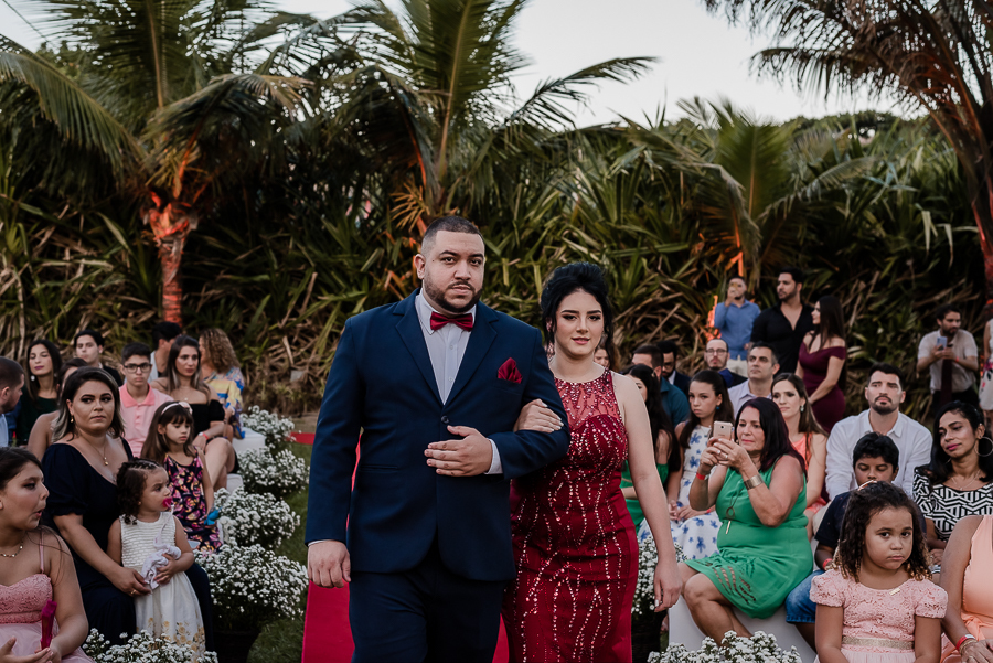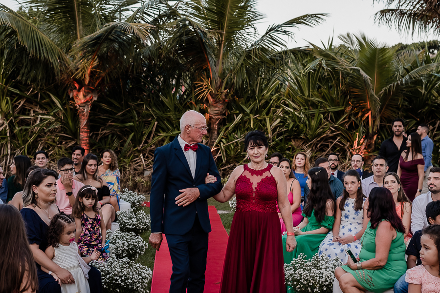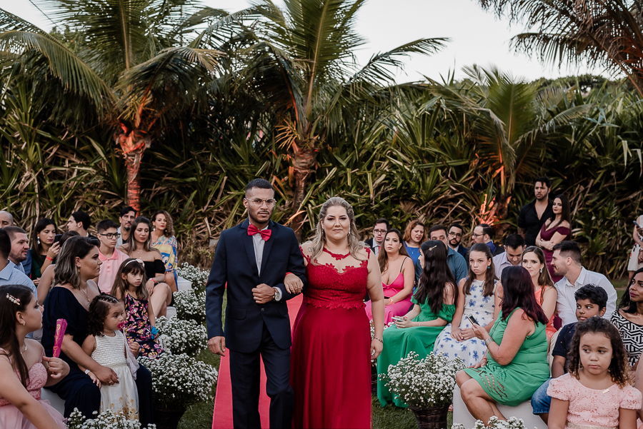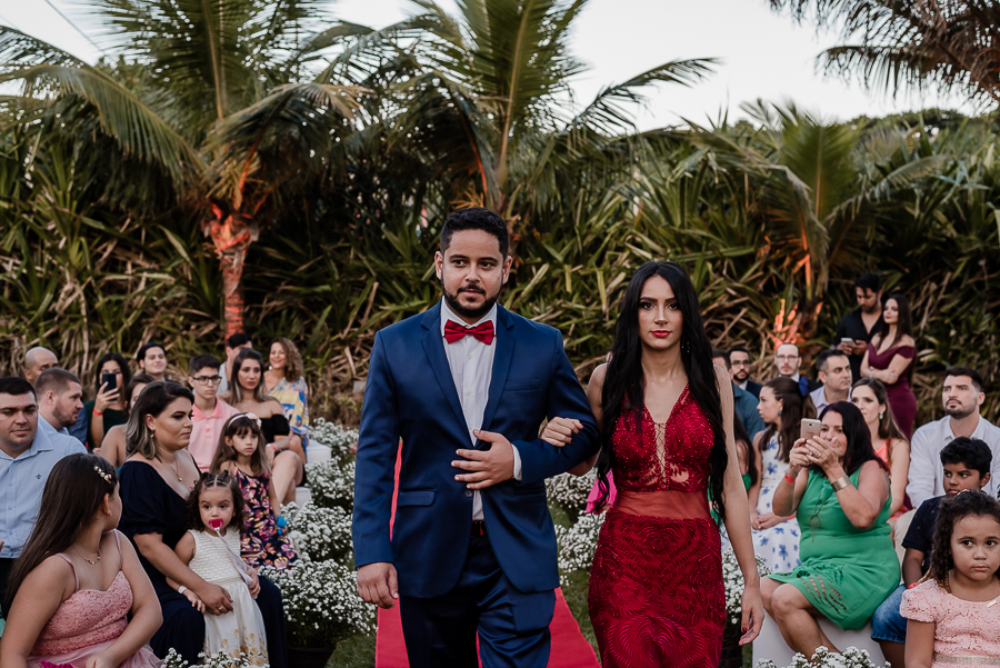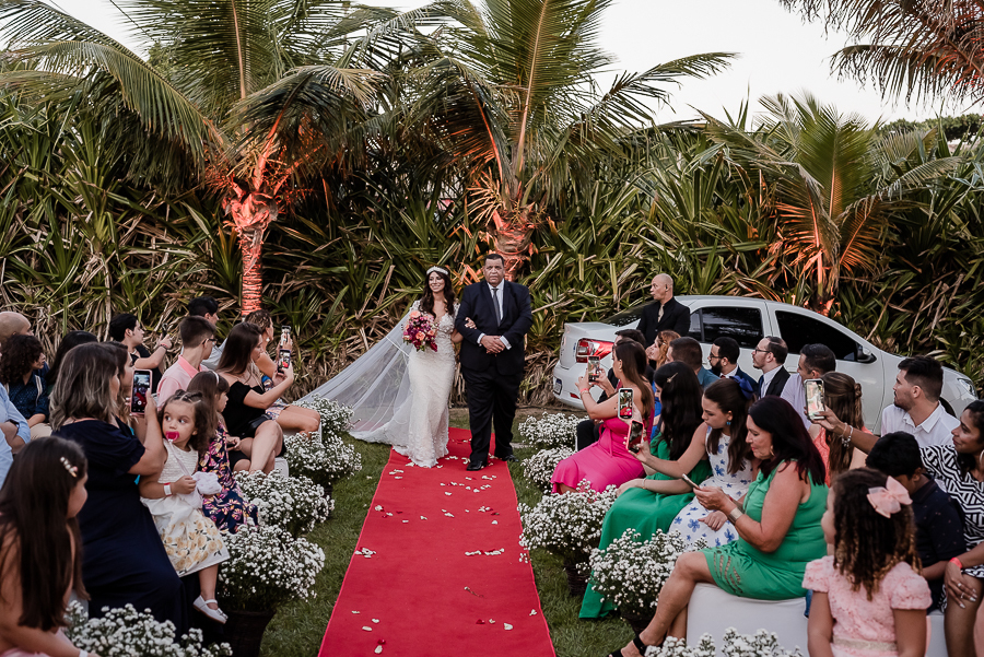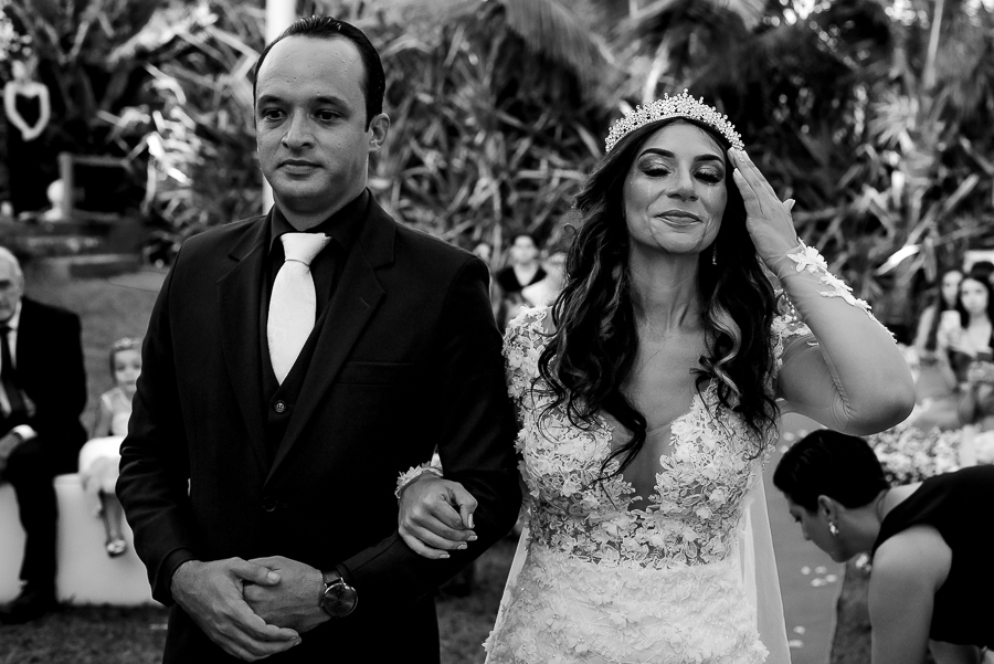 Tudo pronto! A Kátia estava pronta e de dentro de uma sala de frente para o espaço da cerimônia pôde acompanhar a entrada dos padrinhos e do noivo, um momento realmente emocionante!