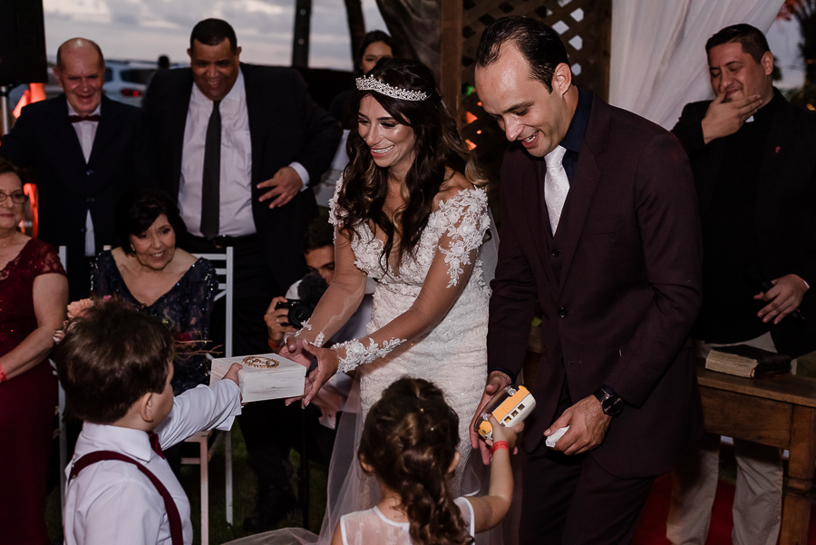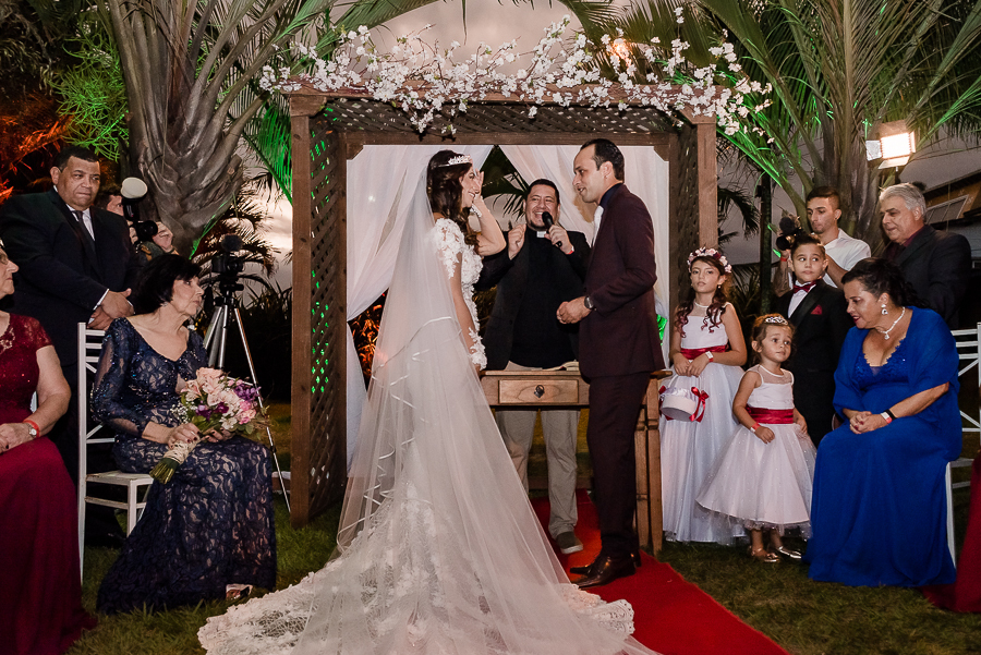 O noivos receberam o carinho dos convidados e da família e fizeram um lindo agradecimento a todos que fizeram parte de sua história até esse grande dia!