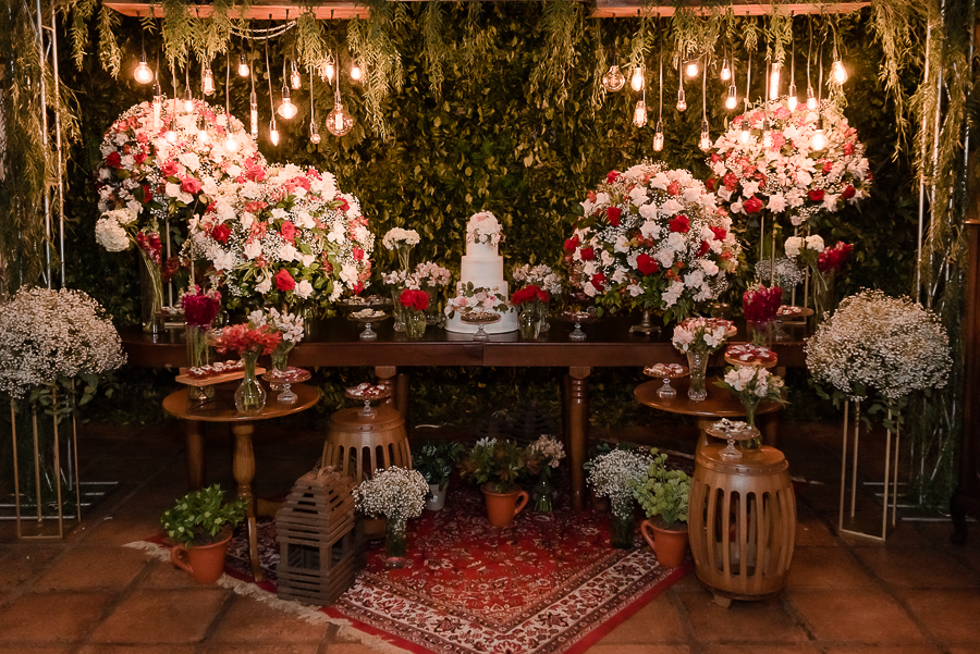 Tivemos a chance também de acompanhar a preparação dos ambientes realizados pela assessora, a decoradora, a equipe do buffet, de som e de luz.