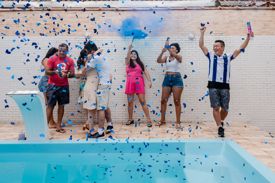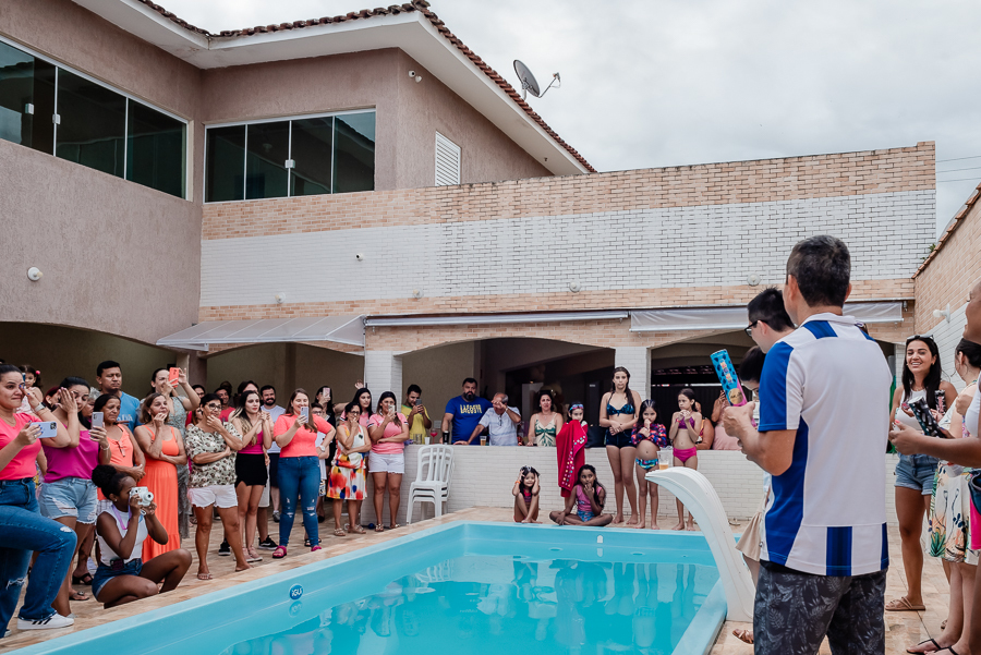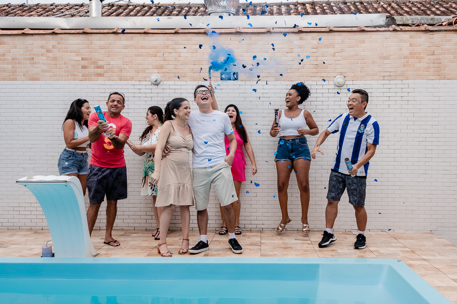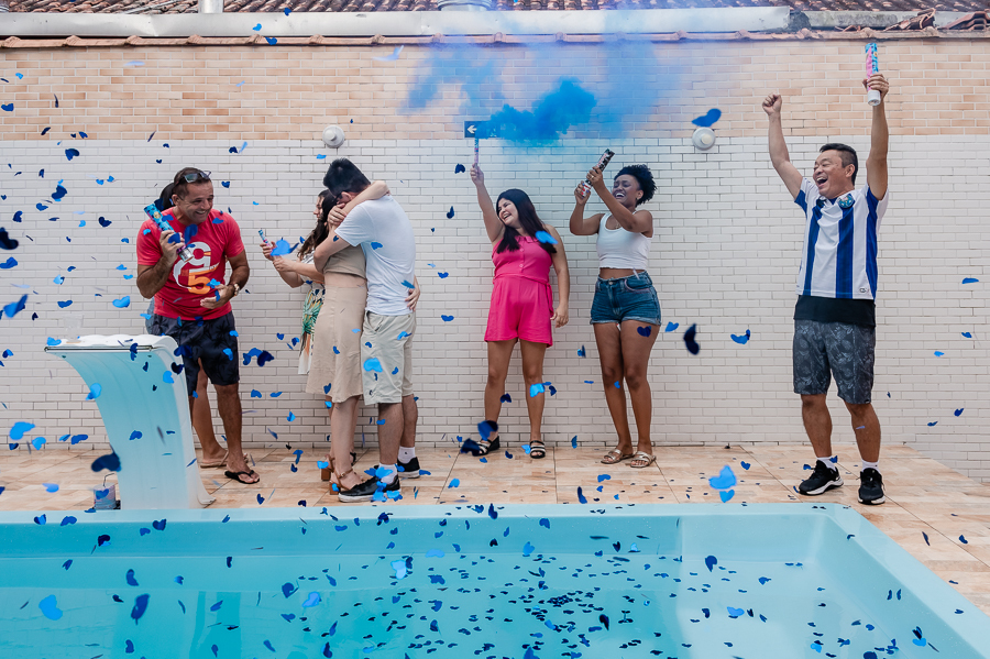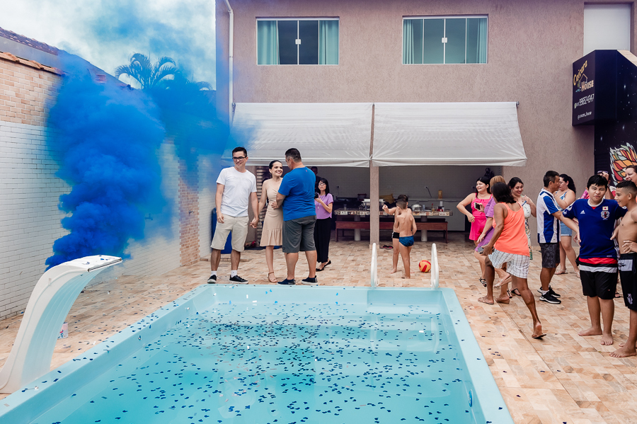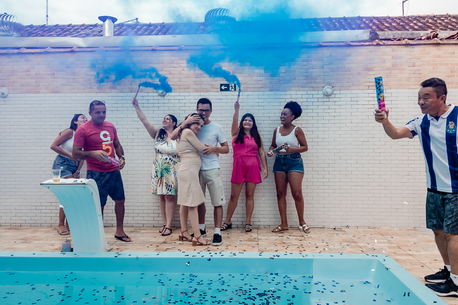 Thaís e Renan reuniram a família e os amigos para o chá revelação de seu bebê. Uma tarde linda onde o casal recebeu muito amor e onde todos estavam na espectativa de saberem se seria uma menina ou um menino.