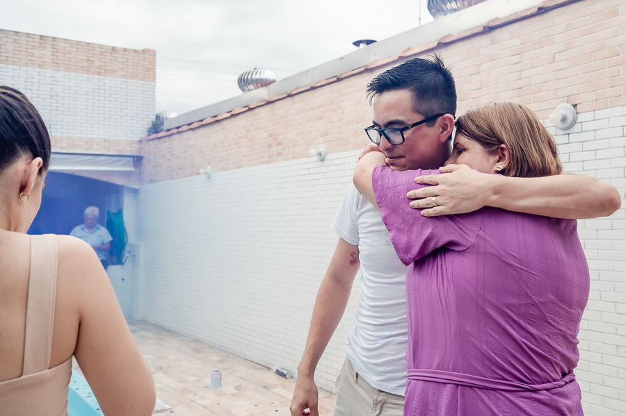 Tudo pronto! Mas antes uma linda música, feita especialmente para o momento, que emocionou a todos, foi tocada... além da fumaça que teve a cor azul a música finalizava com o nome...Miguel! E foi realmente uma explosão de alegria, amor e um sonho realizado.