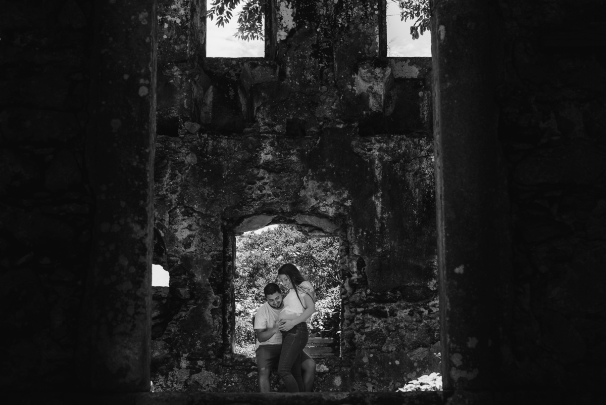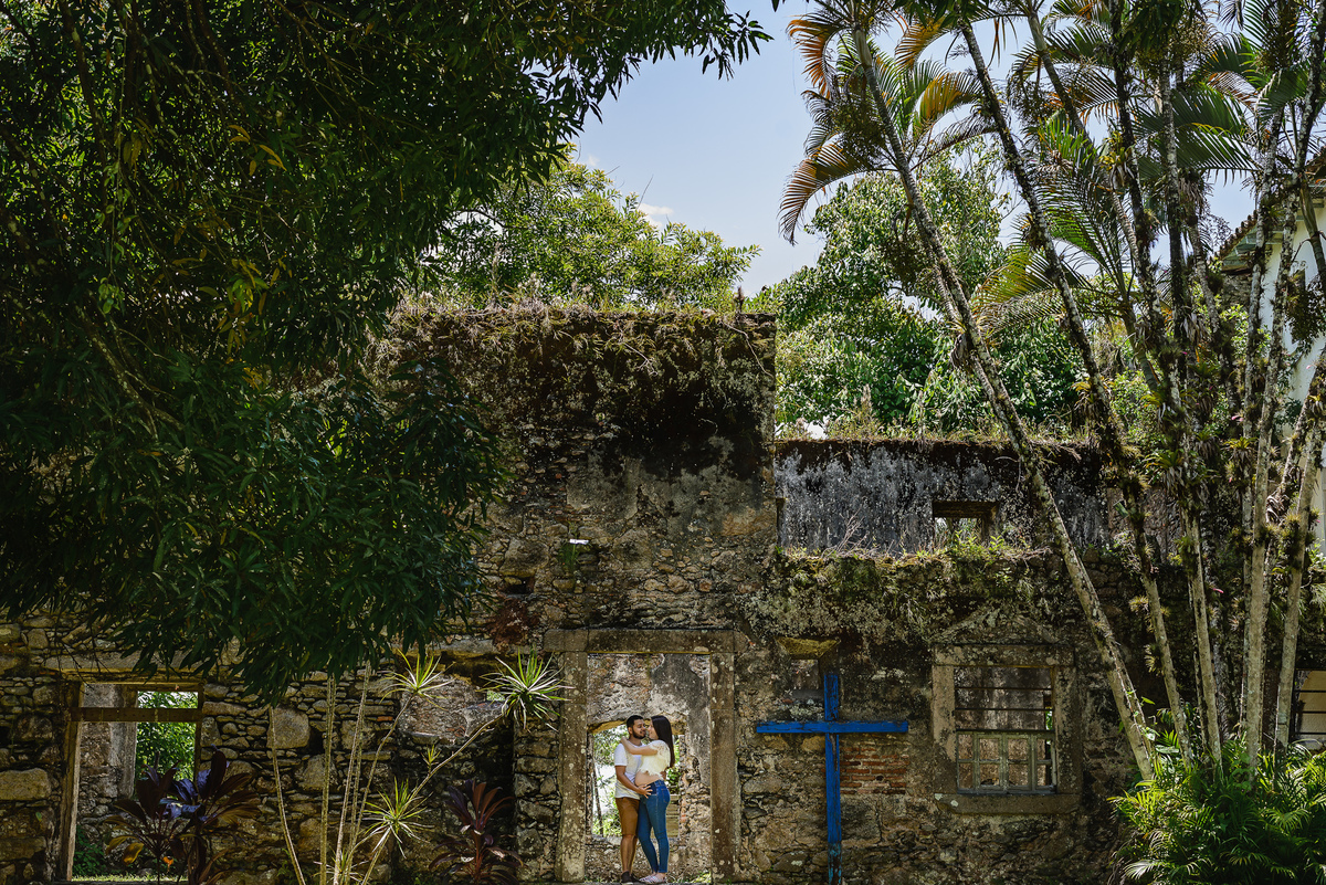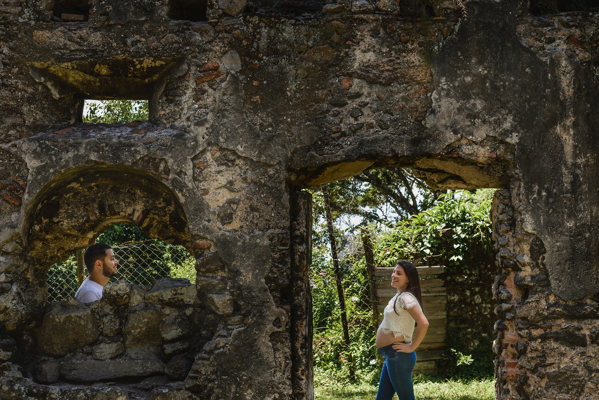 Marcamos o ensaio e eles vieram para cá em um fim de semana de muito calor e sol! Chegamos ao local do ensaio e, como era a primeira vez para nós quatro ali, ficamos juntos explorando um pouco e vendo todas as possibilidades dos cenários para cada foto. Lembrando que esse é um casal aventureiro, mas dessa vez pegaram mais leve com a gente, né casal? Mesmo assim teve muita natureza e algumas “escaladas”, rsrs.