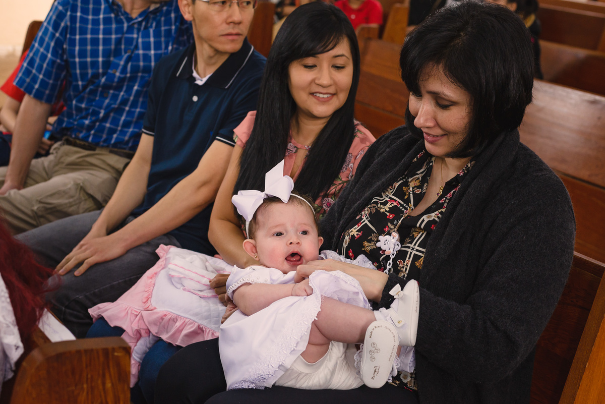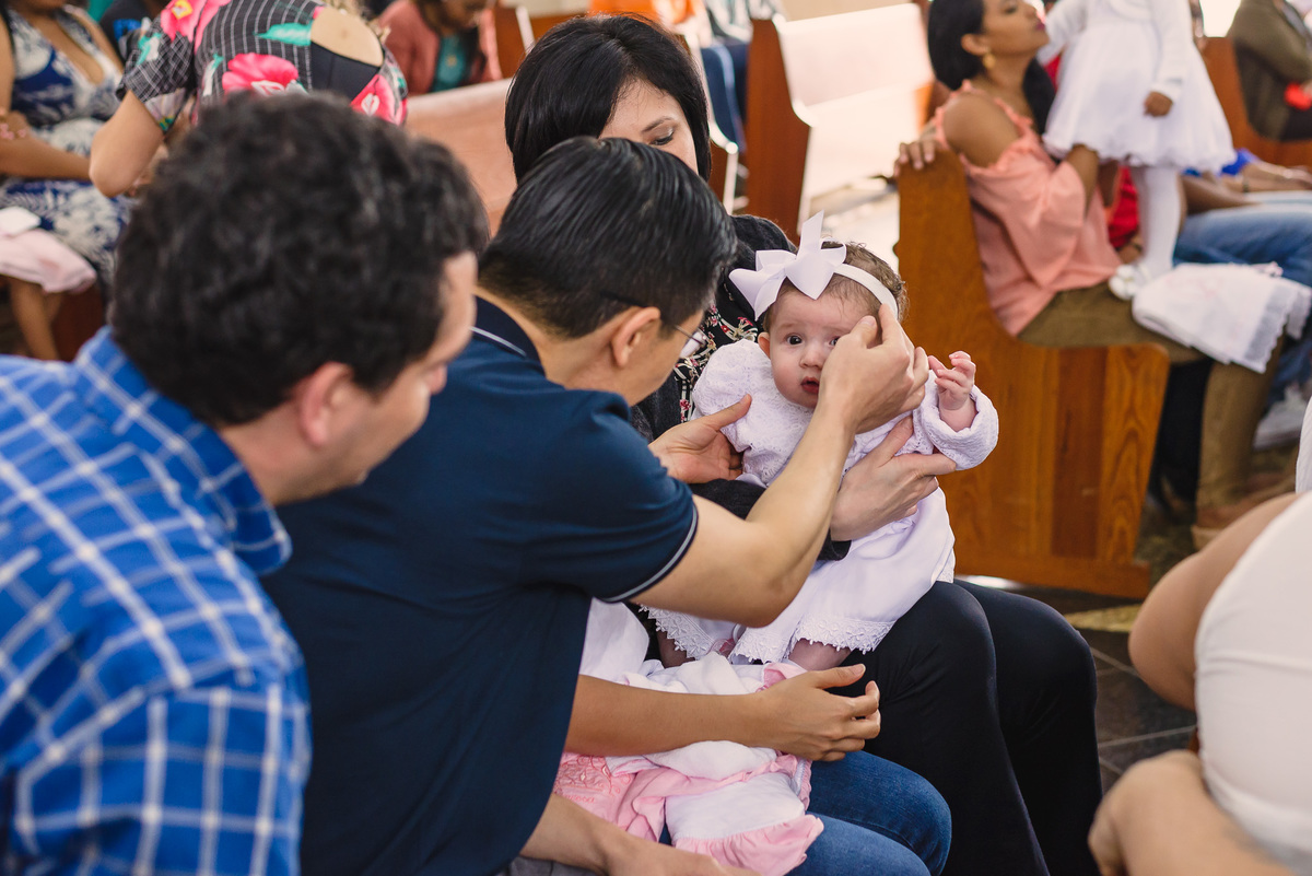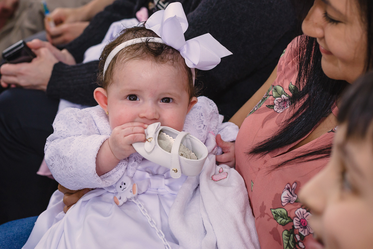 O batismo foi realizado na Capela São Gaspar Bertoni na cidade de Praia Grande/SP, durante o período da manhã, a Bia estava sonolenta no começo e aos poucos foi despertando e começou a se soltar sempre interagindo e sorrindo para seus pais Chistian e Cecília, seu irmão Caio, com os padrinhos e avós durante toda a celebração.