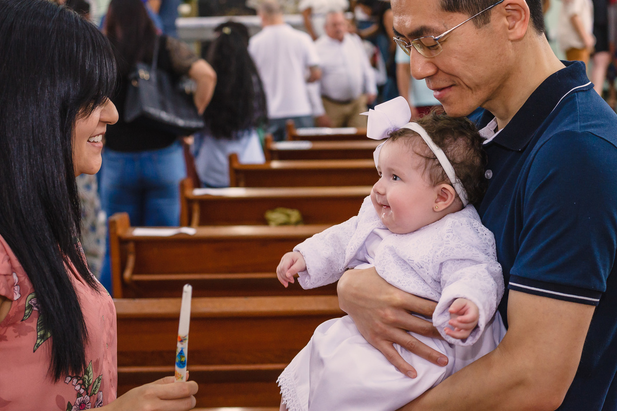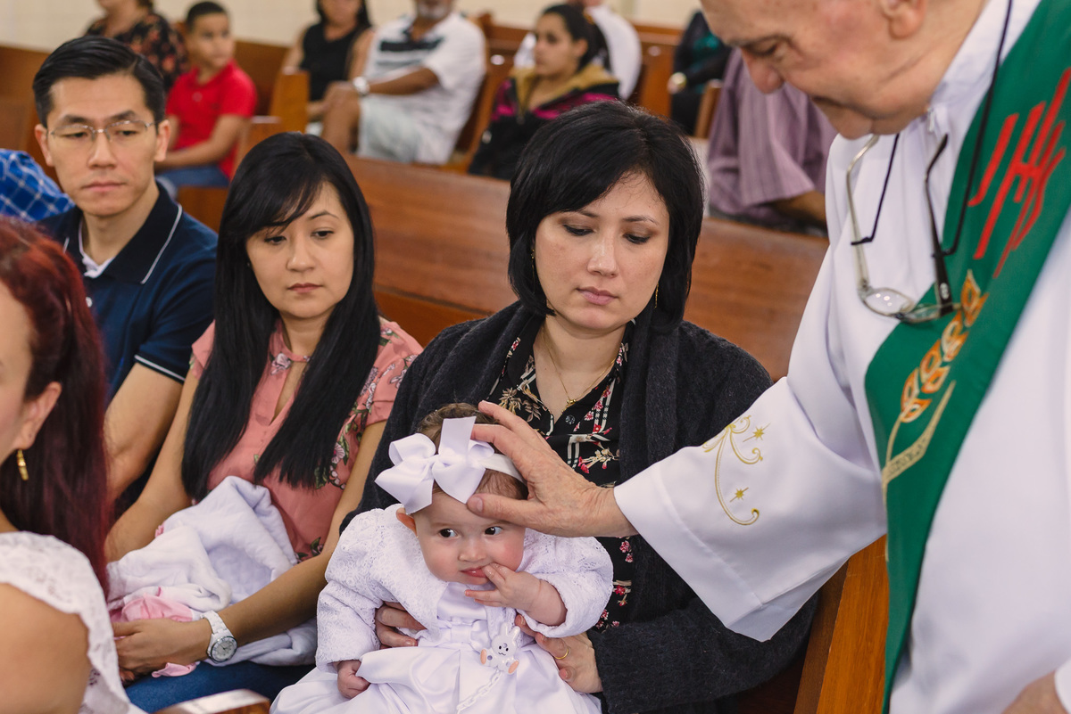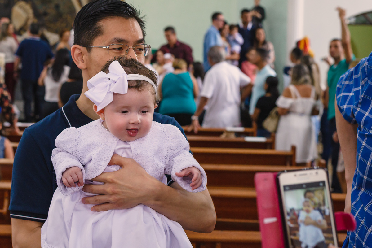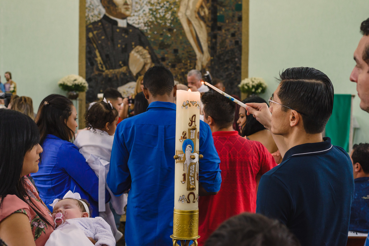 O batismo foi realizado na Capela São Gaspar Bertoni na cidade de Praia Grande/SP, durante o período da manhã, a Bia estava sonolenta no começo e aos poucos foi despertando e começou a se soltar sempre interagindo e sorrindo para seus pais Chistian e Cecília, seu irmão Caio, com os padrinhos e avós durante toda a celebração.