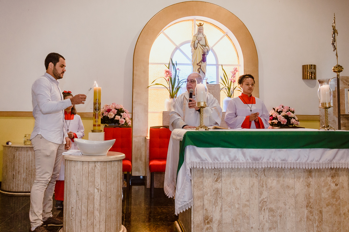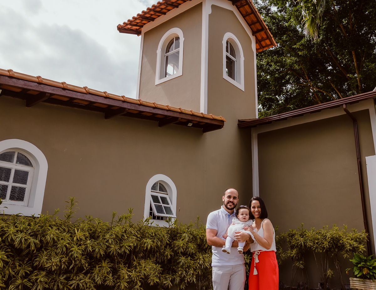 Pude conhecer a Maitê e o Leonardo pais da fofurinha Lívia no dia do seu batizado no qual acompanhamos desde a missa toda a família reunida para depois a realização do seu batizado que foi na Capela Santa Mathilde, no canto do forte na cidade de Praia Grande - SP.