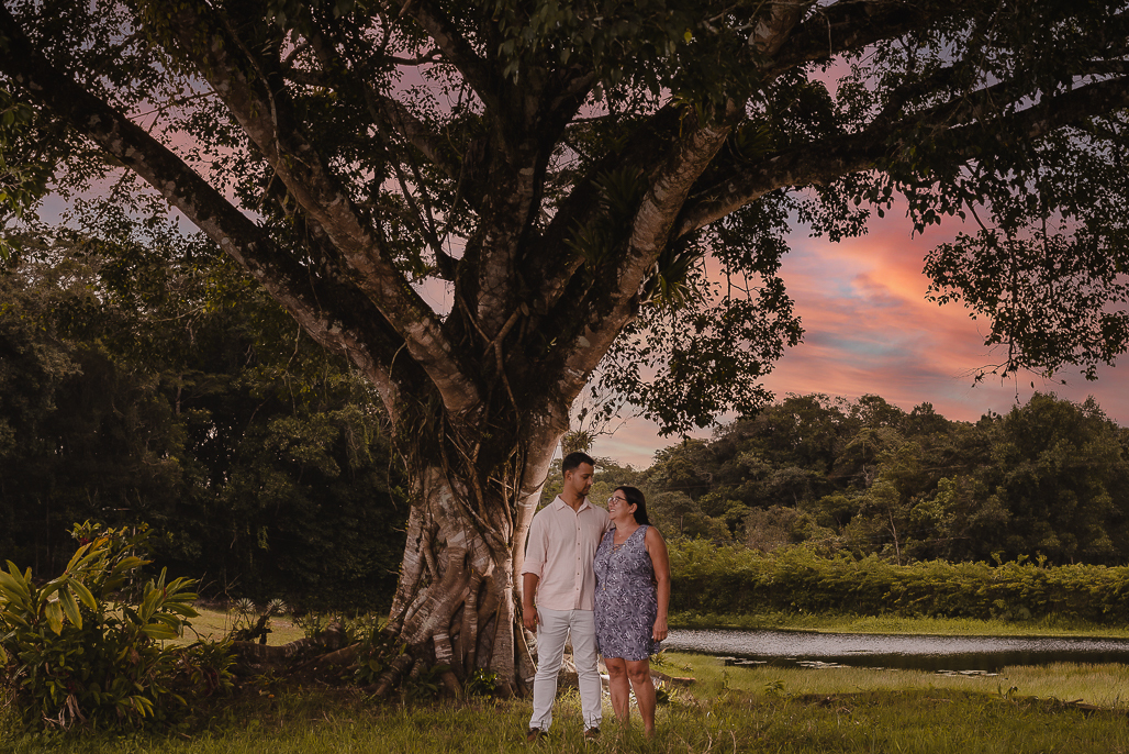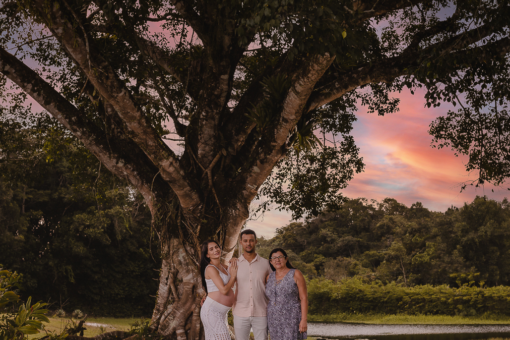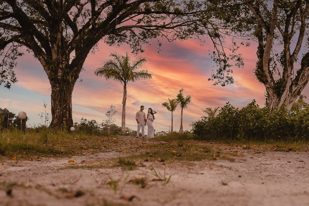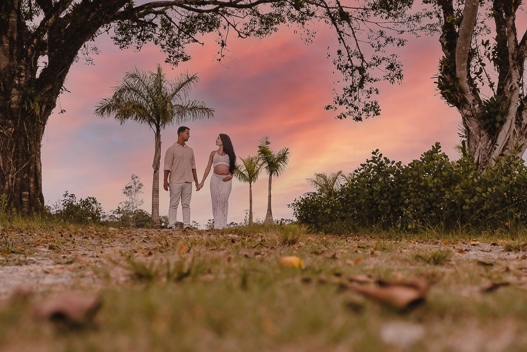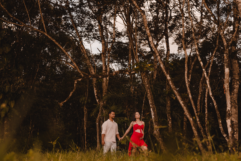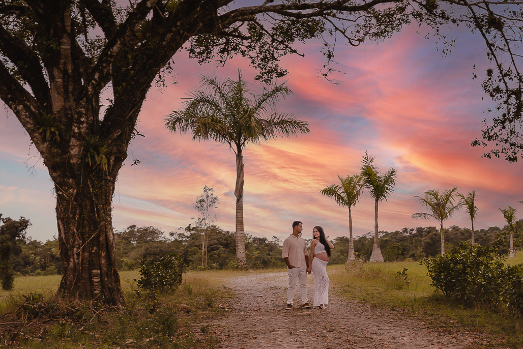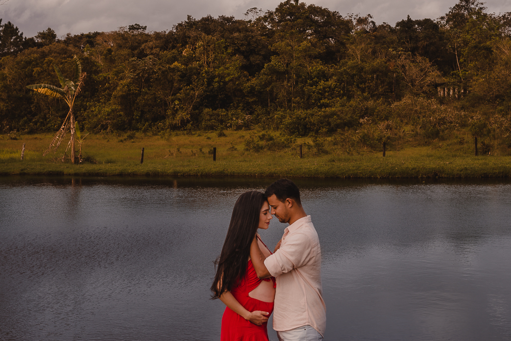 Uma tarde linda de sol e uma paisagem inspiradora complementaram sentimentos que somente um casal pode explicar em um momento tão importante quanto a espera de um bebê.