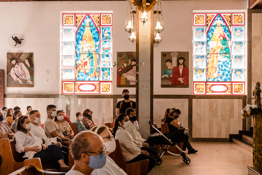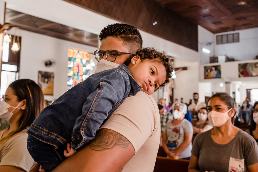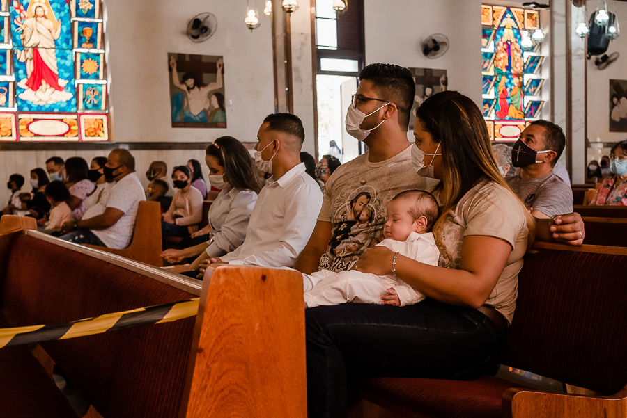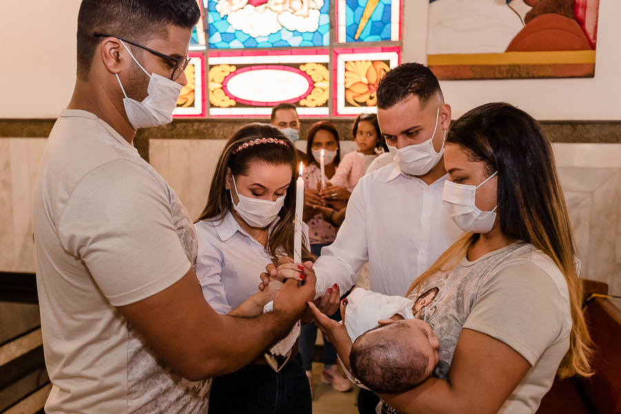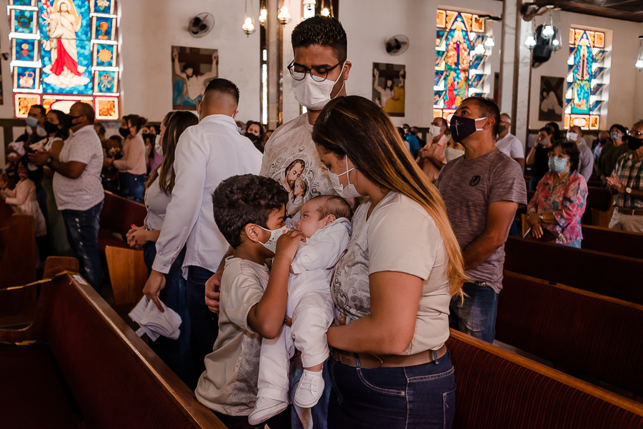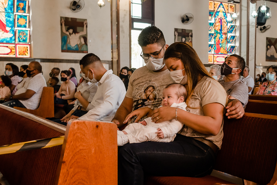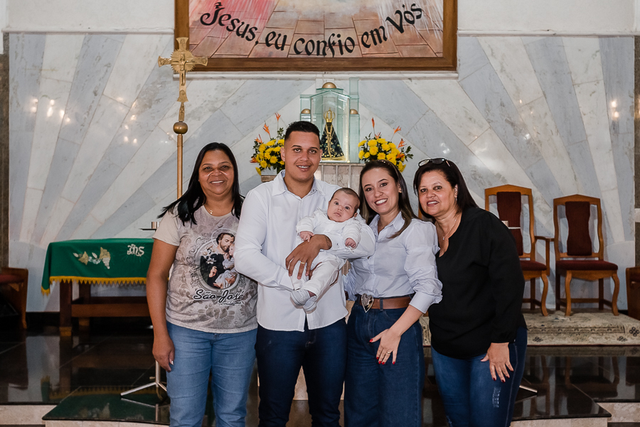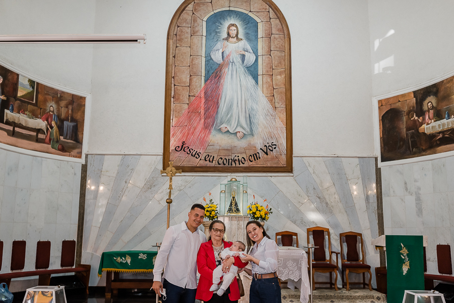 A mamãe Blenda e o papai José Carlos escolheram como padrinhos a Natália e o João Gabriel. O pequeno José Carlos recebeu todo o carinho e cuidado. Teve dengo com os padrinhos, uma pausa para mamar, enquanto a família acompanhava a missa que foi realmente emocionante, já que era o início da Semana da Família.
