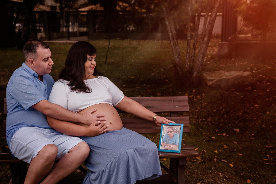 À espera pelo pequeno Wilsinho! Ele já virá ao mundo homenageando outra pessoa muito especial na vida de seus pais e de sua família, terá o nome de seu avô materno, que infelizmente partiu, mas que permanece presente no coração de todos que o amavam. Pedimos para a Fe levar para o ensaio um retrato de seu pai, que foi uma maneira de, além da homenagem, ele estar presente e registramos um momento muito intimo e especial para eles, de muita emoção...