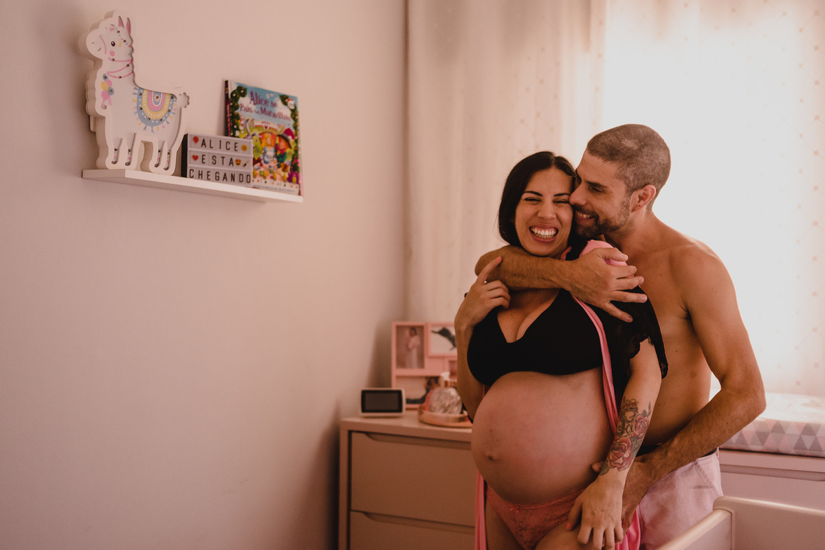 Retratamos os detalhes do quartinho, a mamãe e o papai em momentos de chamego e ansiedade, imaginando como seria o primeiro momento com a Alice...Momentos de brincadeiras entre os irmãos e a irmã, que estavam bem cuidadosos com a mamãe e sua barriga, esperando a hora de conhecer a Alice. Depois uma farra na cama do casal com a família toda reunida.