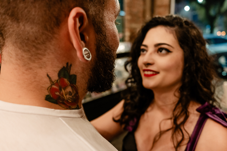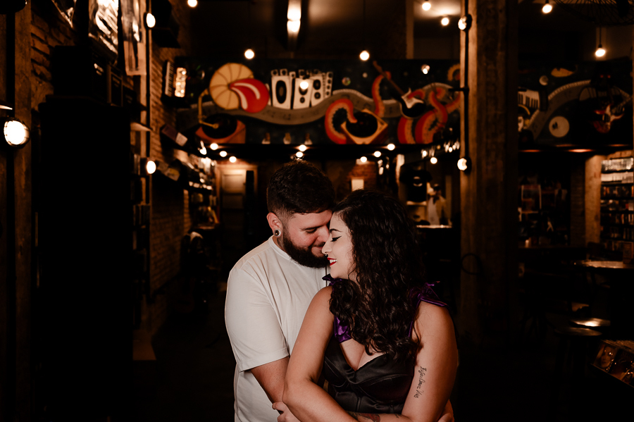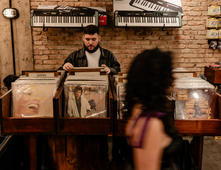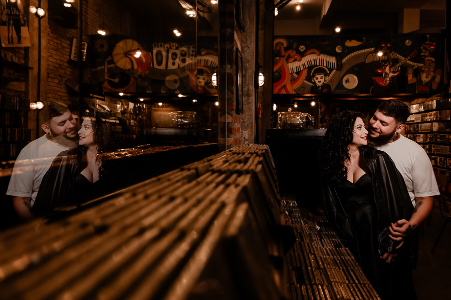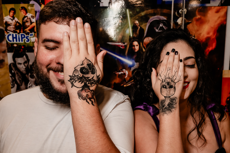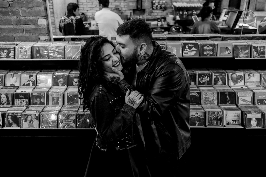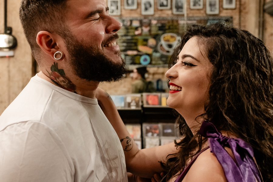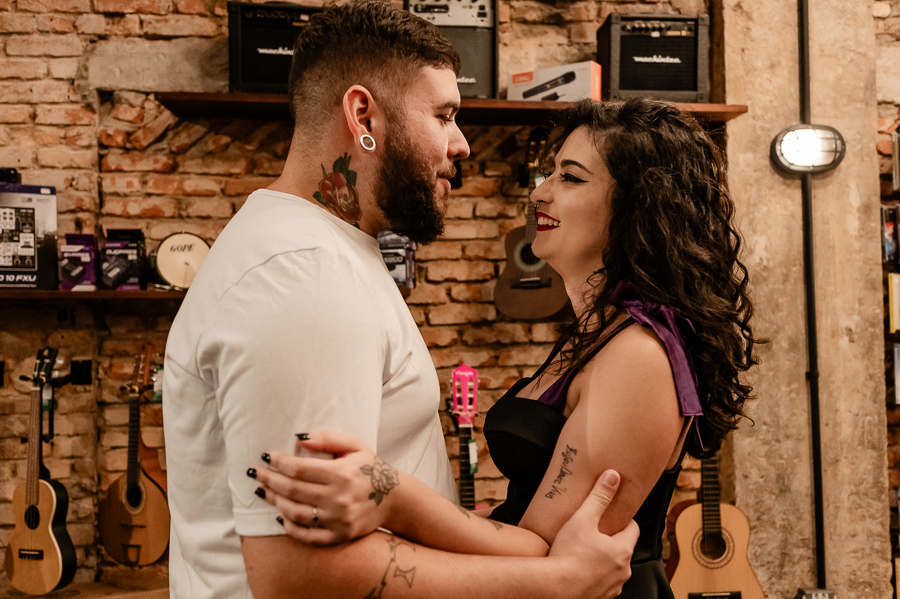 Um casal apaixonado por música, café e cultura nerd. O local escolhido pela Yasmim e pelo Ariel foi A Musical, localizado em Santos-SP, onde eles sentem-se muito a vontade, já que o ambiente é retrô, com música, discos antigos, instrumentos e, claro, café!