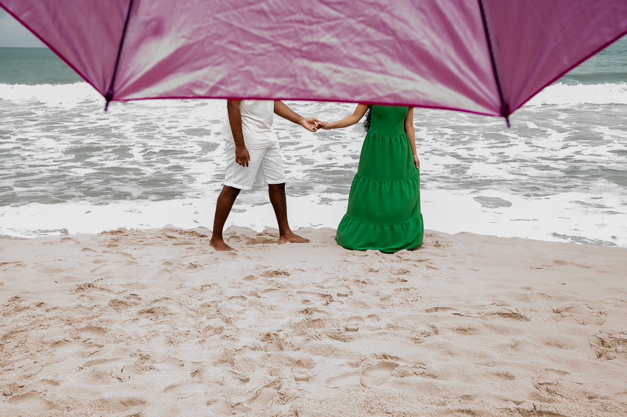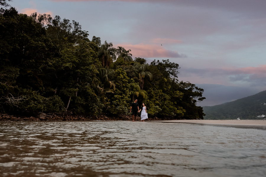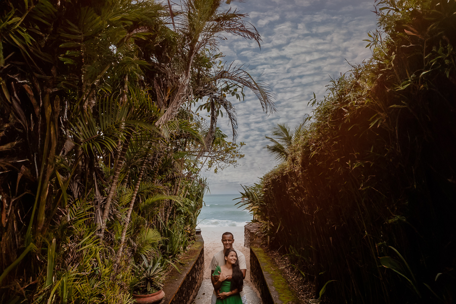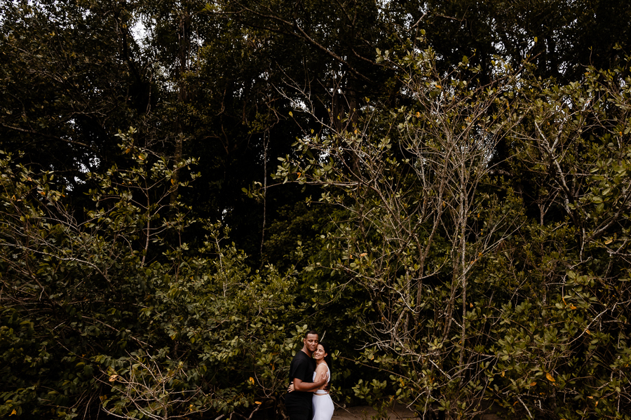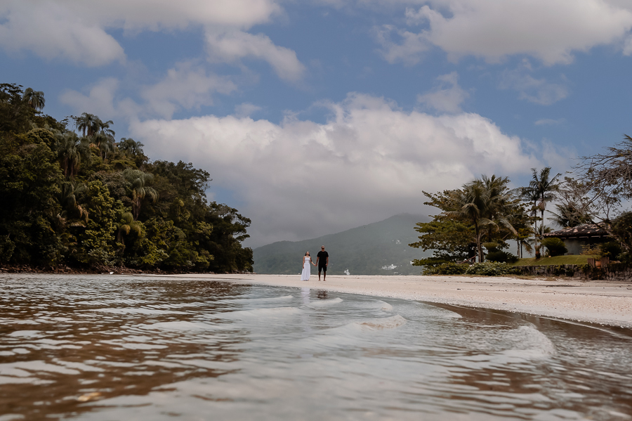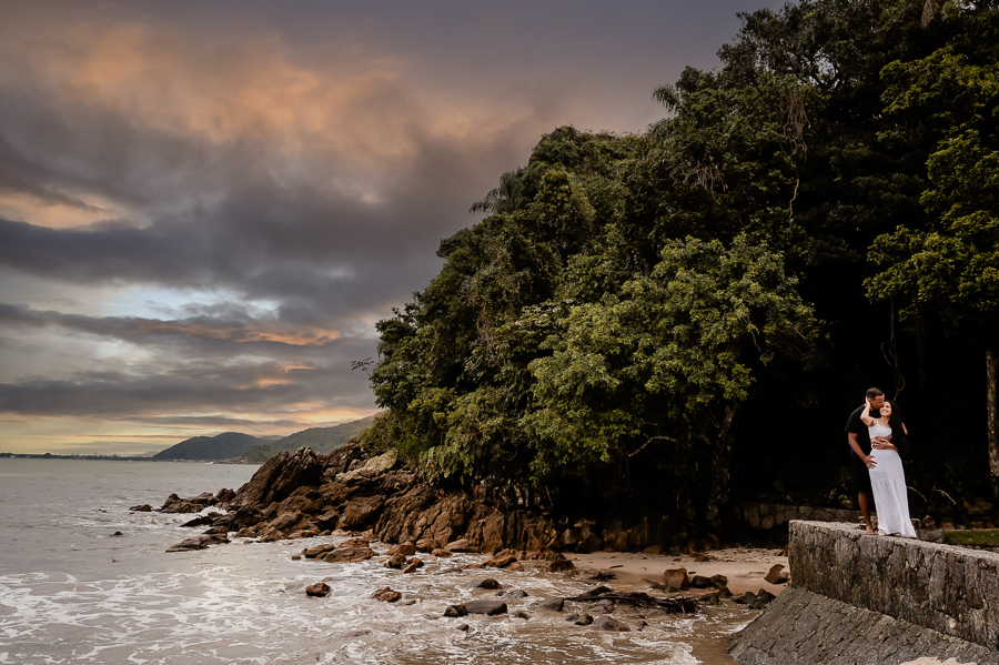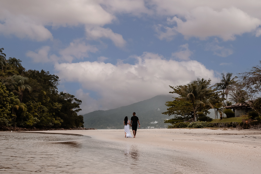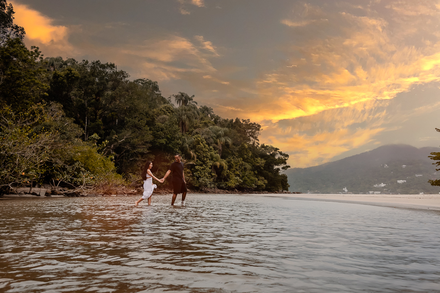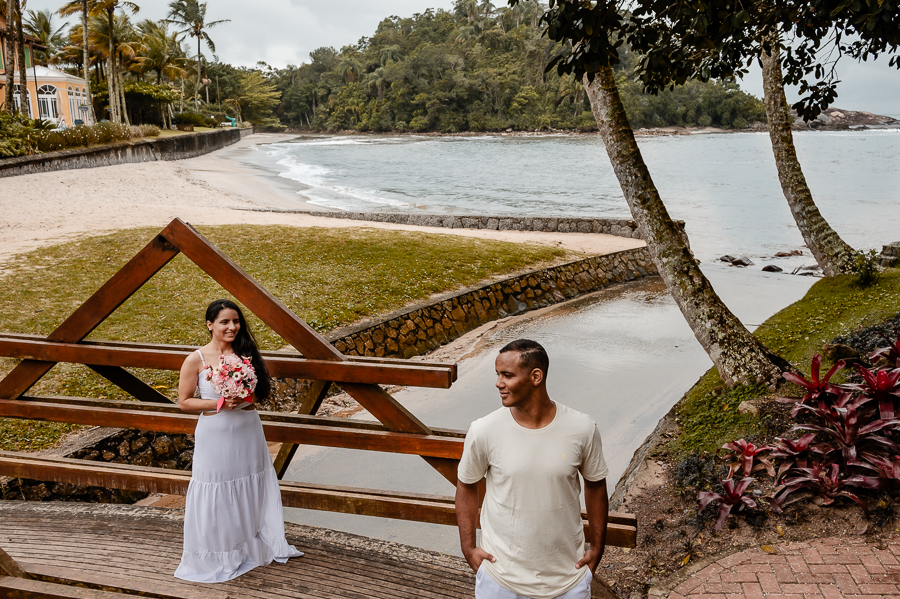 O ensaio da Victoria e do Thiago aconteceu na Praia do Iporanga, em Guarujá - SP. Os dois costumam conversar olhando o mãe, então, a escolha deles revela a conexão com a natureza.